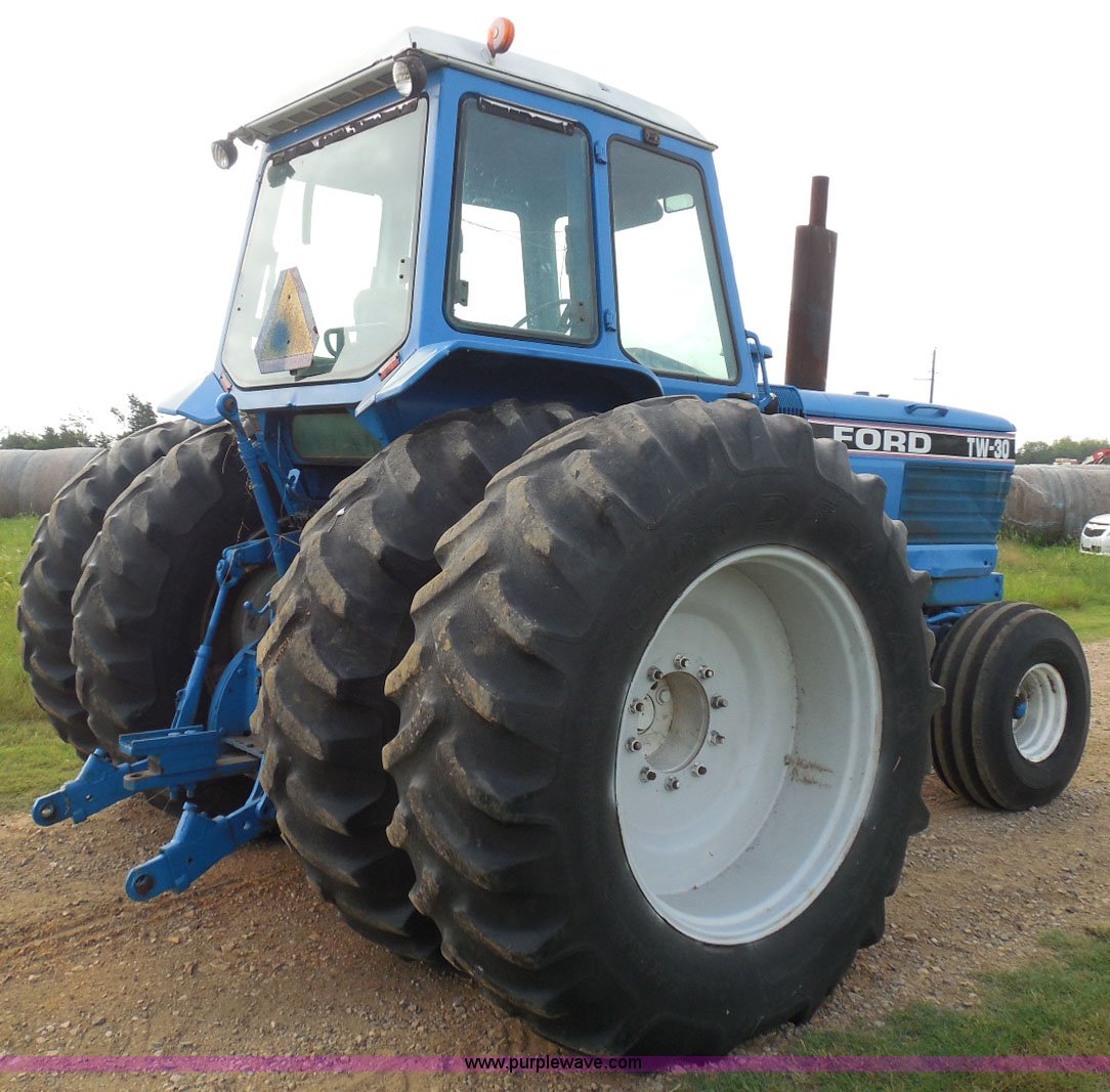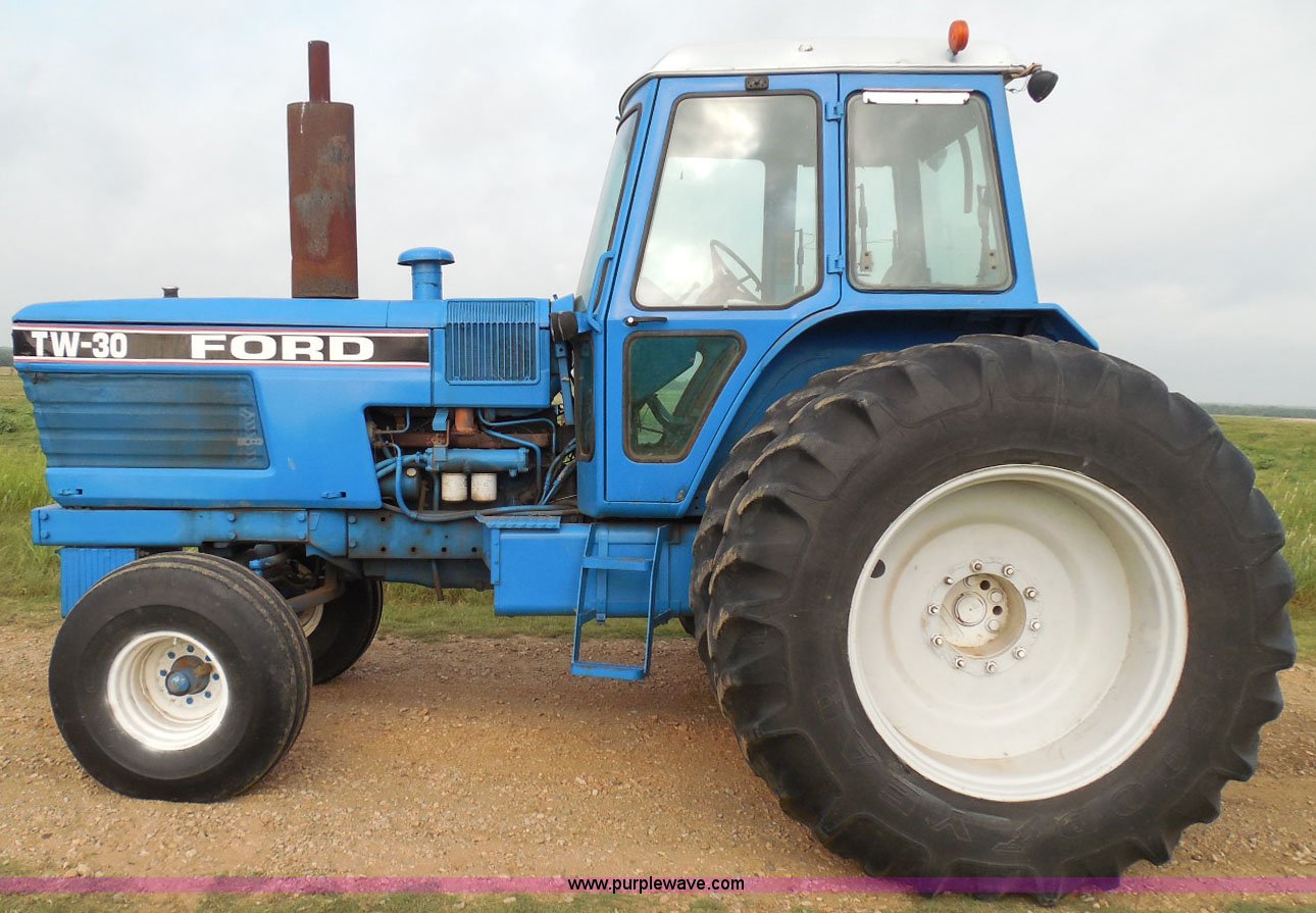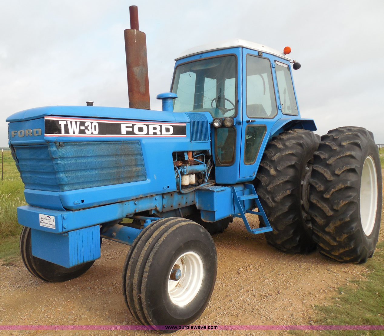 Purple Wave is selling a used Tractor in Texas. This item is a Ford TW30 tractor with the following: 4,258 hours on meter, Ford six cylinder diesel engine, Serial SH951669, Manual transmission, 8F-2R gears, Hi-Lo ranges, AC and heat, Tilt steering wheel, Three point, Draw bar, 1000 PTO, (3) rear hydraulic remote sets, (12) suitcase weights, Wheel weights, 14L-16.1 front tires, 20.8-38 rear tires, Interior cosmetic damage, Windshield scratched by wiper blades, No headliner