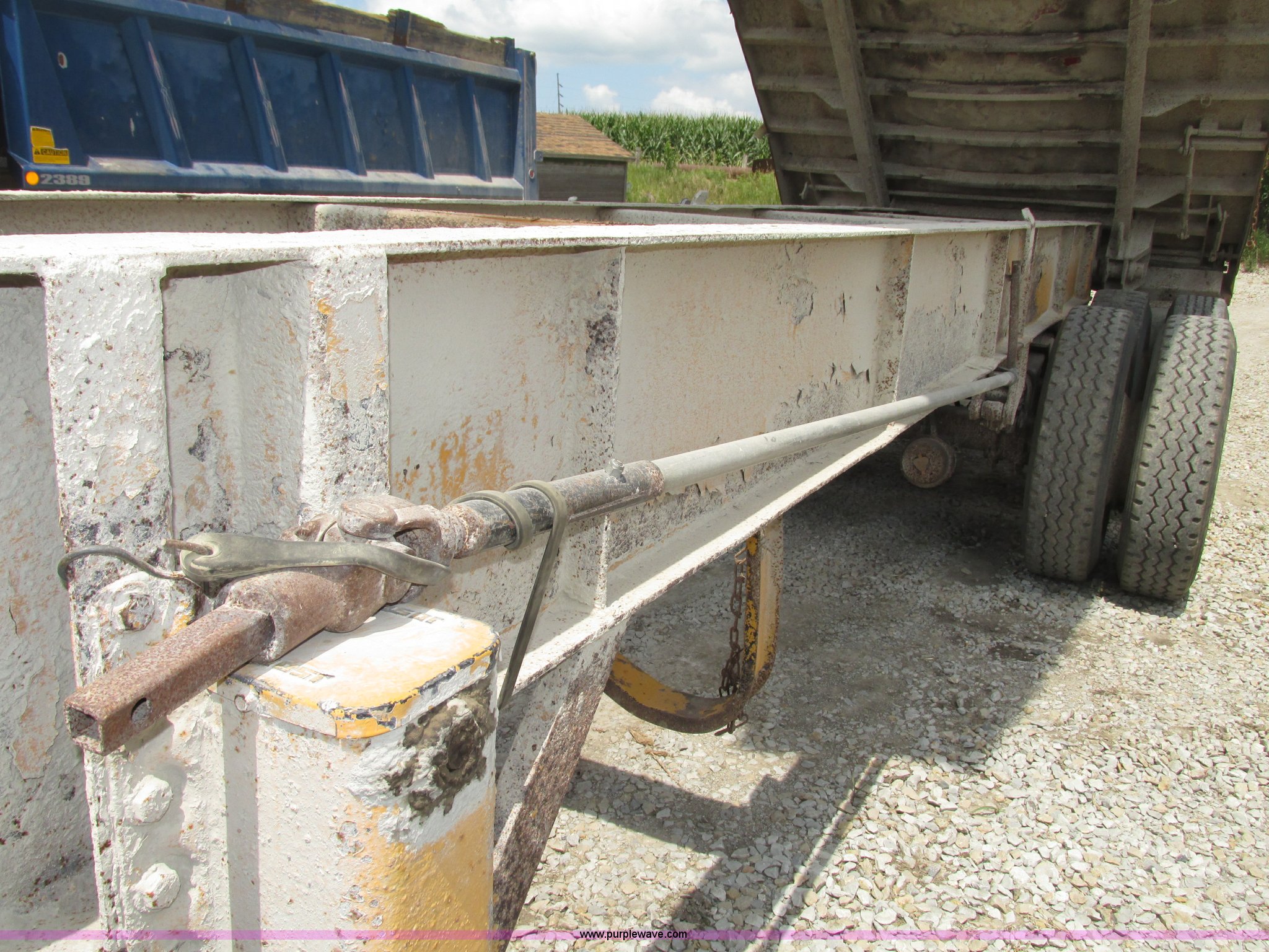 Purple Wave is selling a used End Dump Rock Trailer in Iowa. This item is a 1995 Borco end dump trailer with the following: 30'L, Four stage single ram hoist, Model 85-402-235, Serial 438755, Side rollover tarp, Jost two leg landing gear, Mud flaps, Spring suspension, Air brakes, Steel wheels, 275/80R24.5 tires, 275/75R24.5 tires, 285/75R24.5 tires, Spare tire rack
