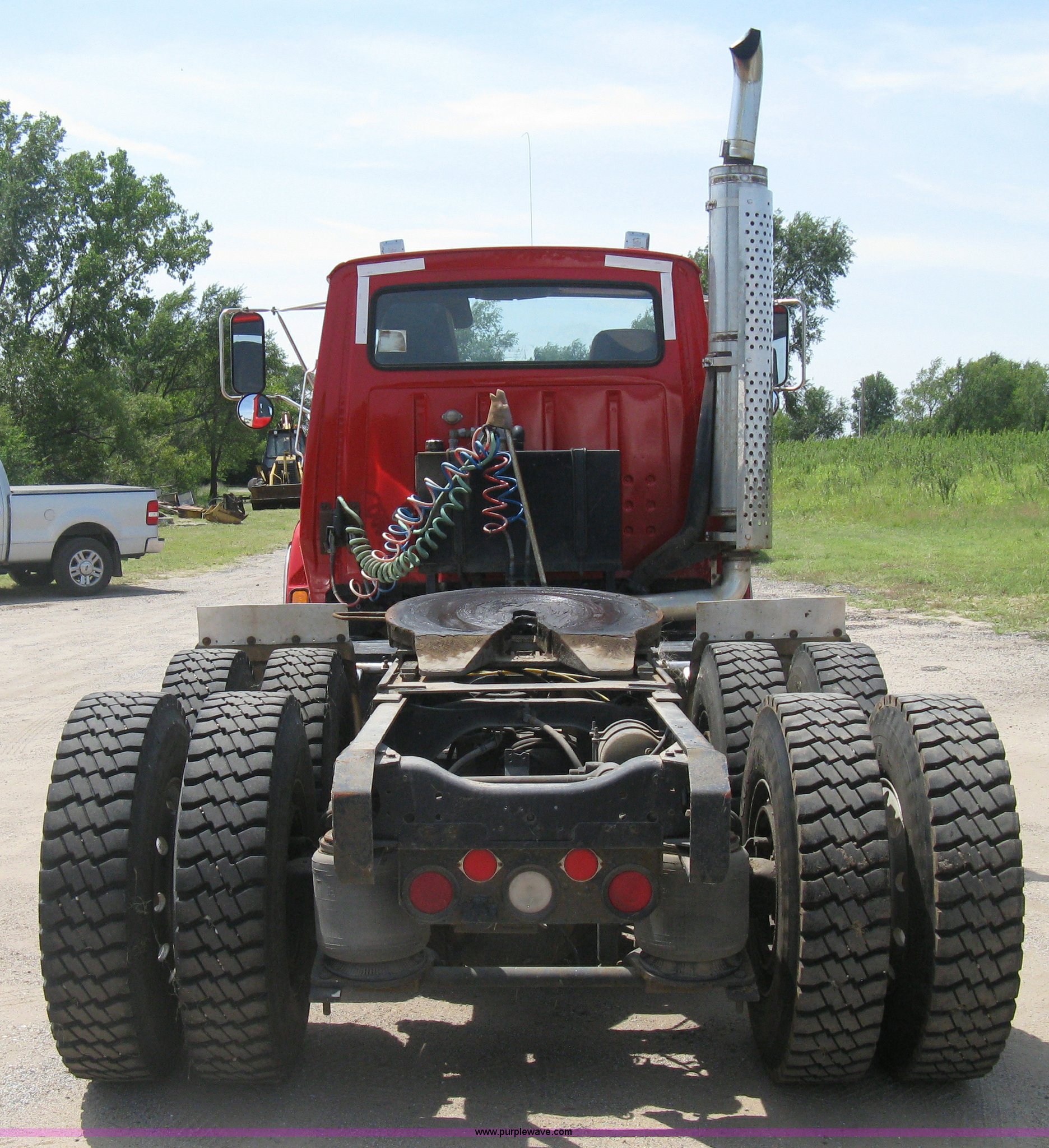 Purple Wave is selling a used Truck Tractor in Kansas. This item is a 1995 Ford Aeromax L9000 semi truck with the following: 121,768 miles on odometer, Odometer is approximately 50,000 miles short, Cummins NTC 14.0L L6 diesel engine, Eaton Fuller Road Ranger 10 speed manual transmission, Full screw, Locking differential, Heat, Cruise, AM/FM, Heated mirrors, Air suspension seat, PTO, Wet kit, Chrome bumper, Block heater, Air slide fifth wheel plate, Dual 80 gallon fuel tanks, Stainless steel quarter fenders, Single exhaust stack, Steel deck plate, Air dryer, Air suspension, Air brakes, 155" wheelbase, Aluminum wheels, Wheel nut covers, 11R22.5 tires, GVWR 52,000 lbs, FAWR 12,000 lbs, IAWR 20,000 lbs, RAWR 20,000 lbs, Exhaust stack topper bent, Windshield chipped, Unit# M1