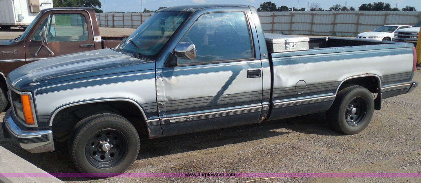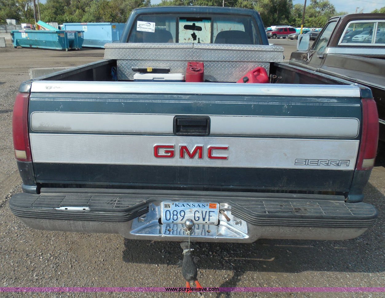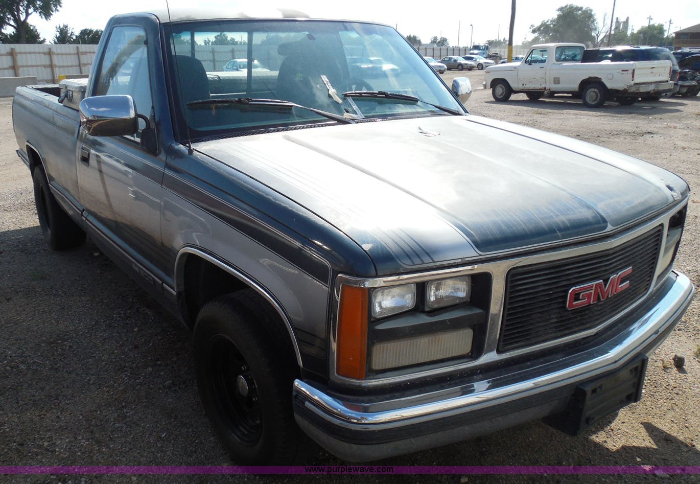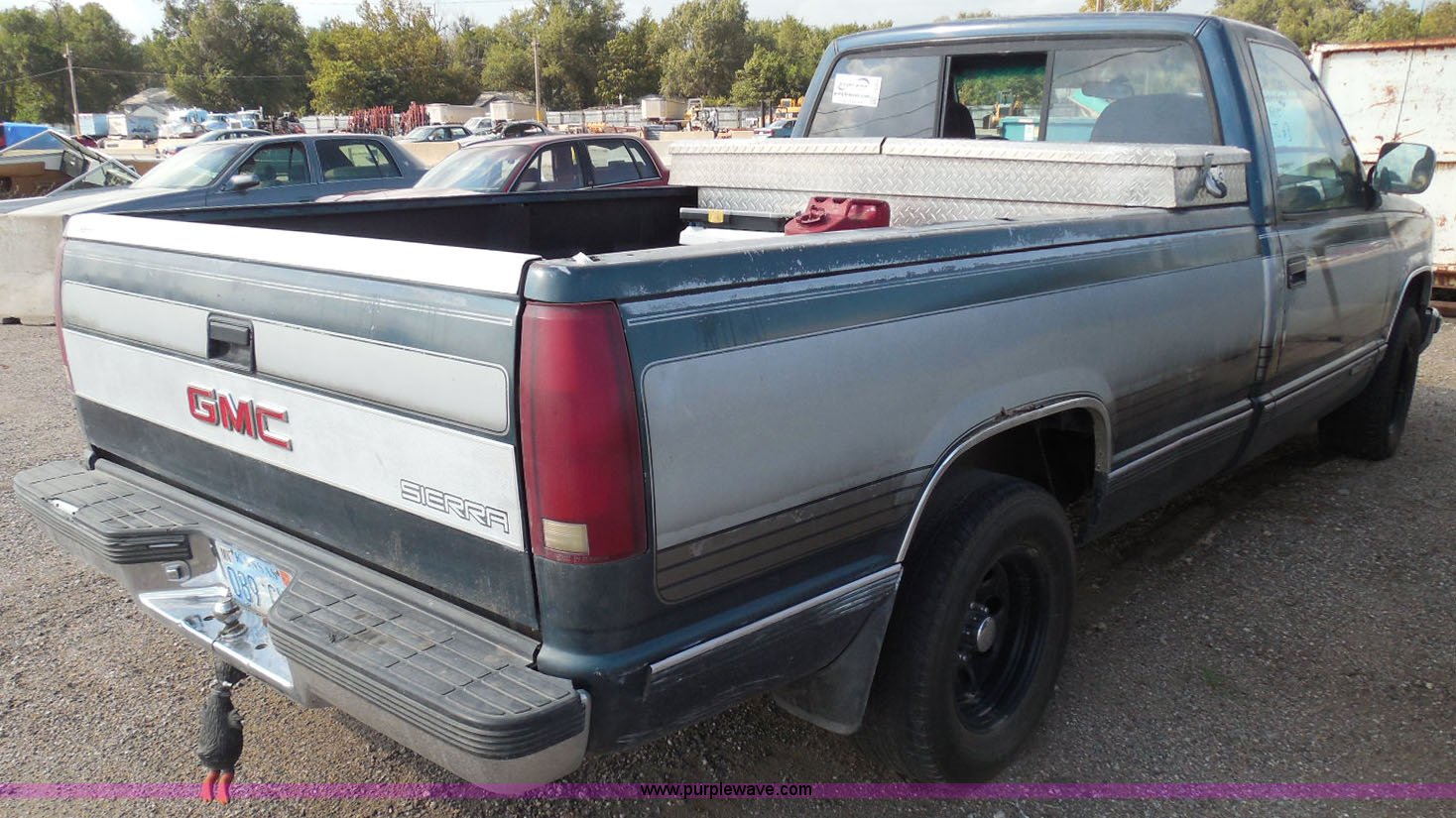Purple Wave is selling a used Wrecked and Abandoned in Kansas. This item is a 1988 GMC Sierra 1500 pickup truck with the following: Unknown miles on odometer, 5.7L V8 OHV 16V gas engine, Automatic transmission, Cruise, AM/FM/CD/cassette, Power windows and locks, Cloth interior, Trailer hitch, After-market wheels, Aluminum toolbox, Plastic bed liner, P255/60R16 front tires, 275/60R15 rear tires, Interior/exterior cosmetic damage, Doors are locked, Contents included, Rust, Holes in windshield, Holes in hood, Left side damage, Case# 14C043180
