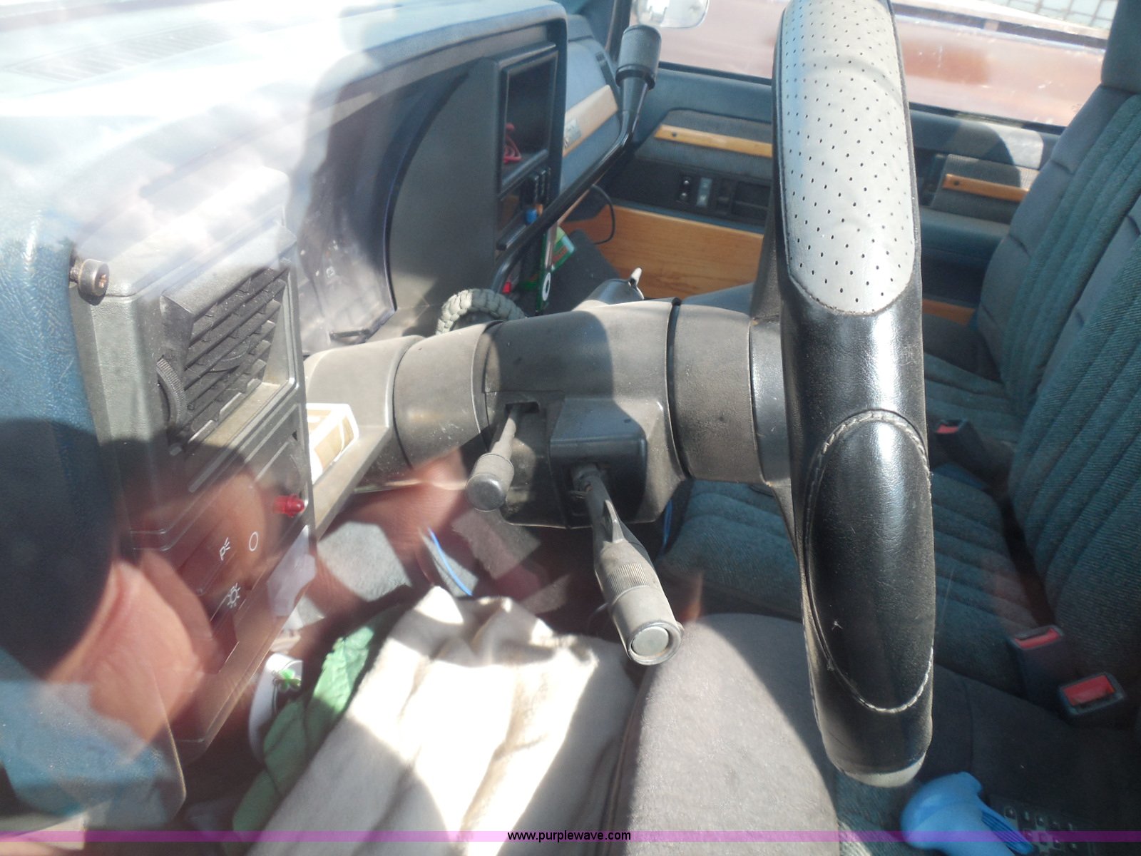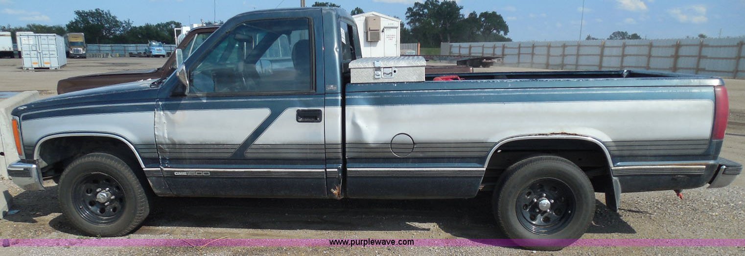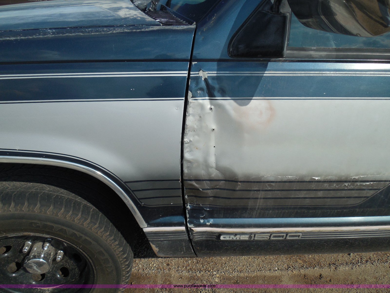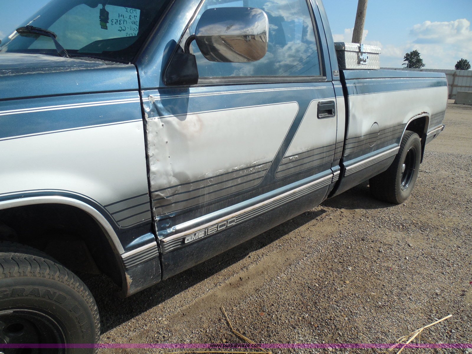 Purple Wave is selling a used Wrecked and Abandoned in Kansas. This item is a 1988 GMC Sierra 1500 pickup truck with the following: Unknown miles on odometer, 5.7L V8 OHV 16V gas engine, Automatic transmission, Cruise, AM/FM/CD/cassette, Power windows and locks, Cloth interior, Trailer hitch, After-market wheels, Aluminum toolbox, Plastic bed liner, P255/60R16 front tires, 275/60R15 rear tires, Interior/exterior cosmetic damage, Doors are locked, Contents included, Rust, Holes in windshield, Holes in hood, Left side damage, Case# 14C043180