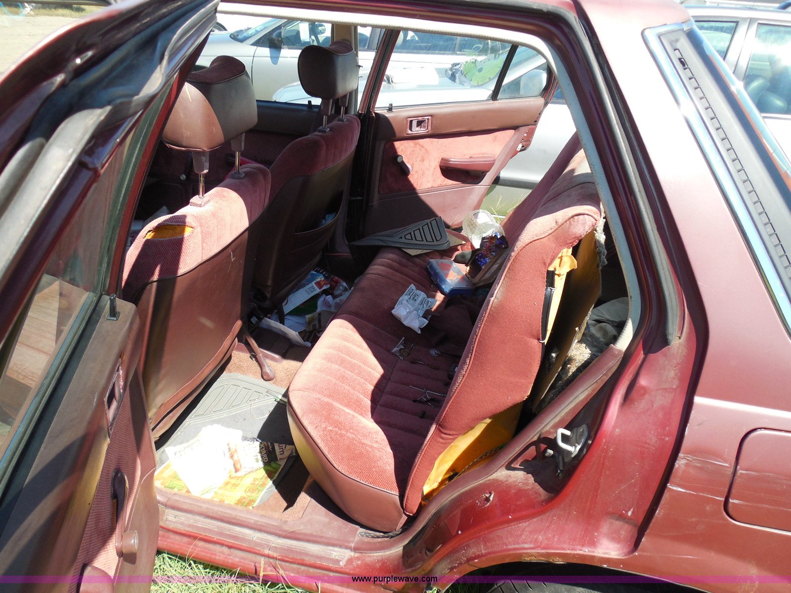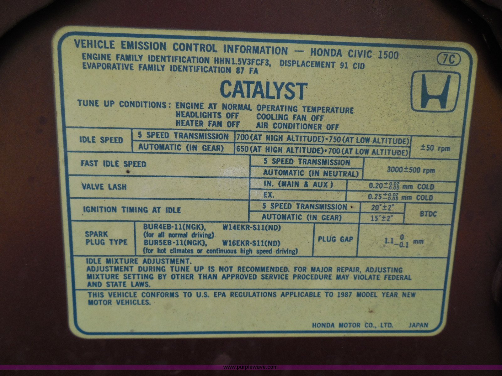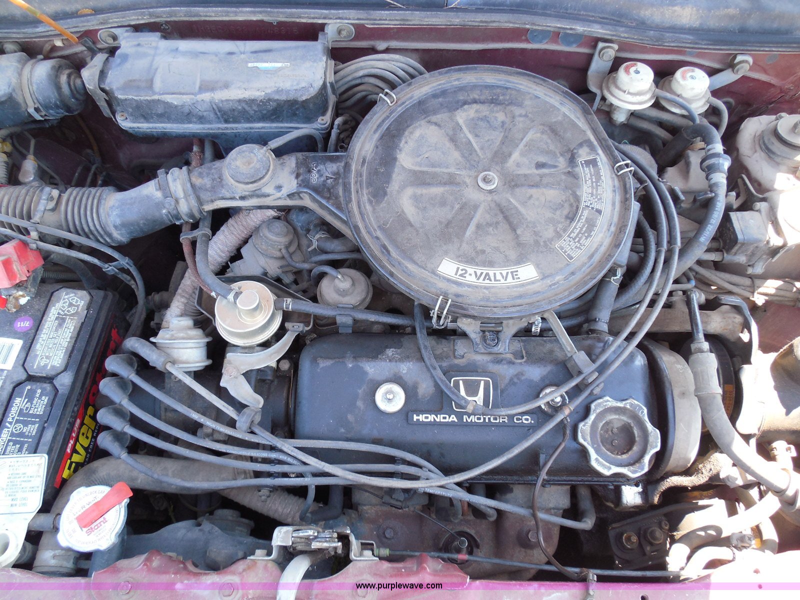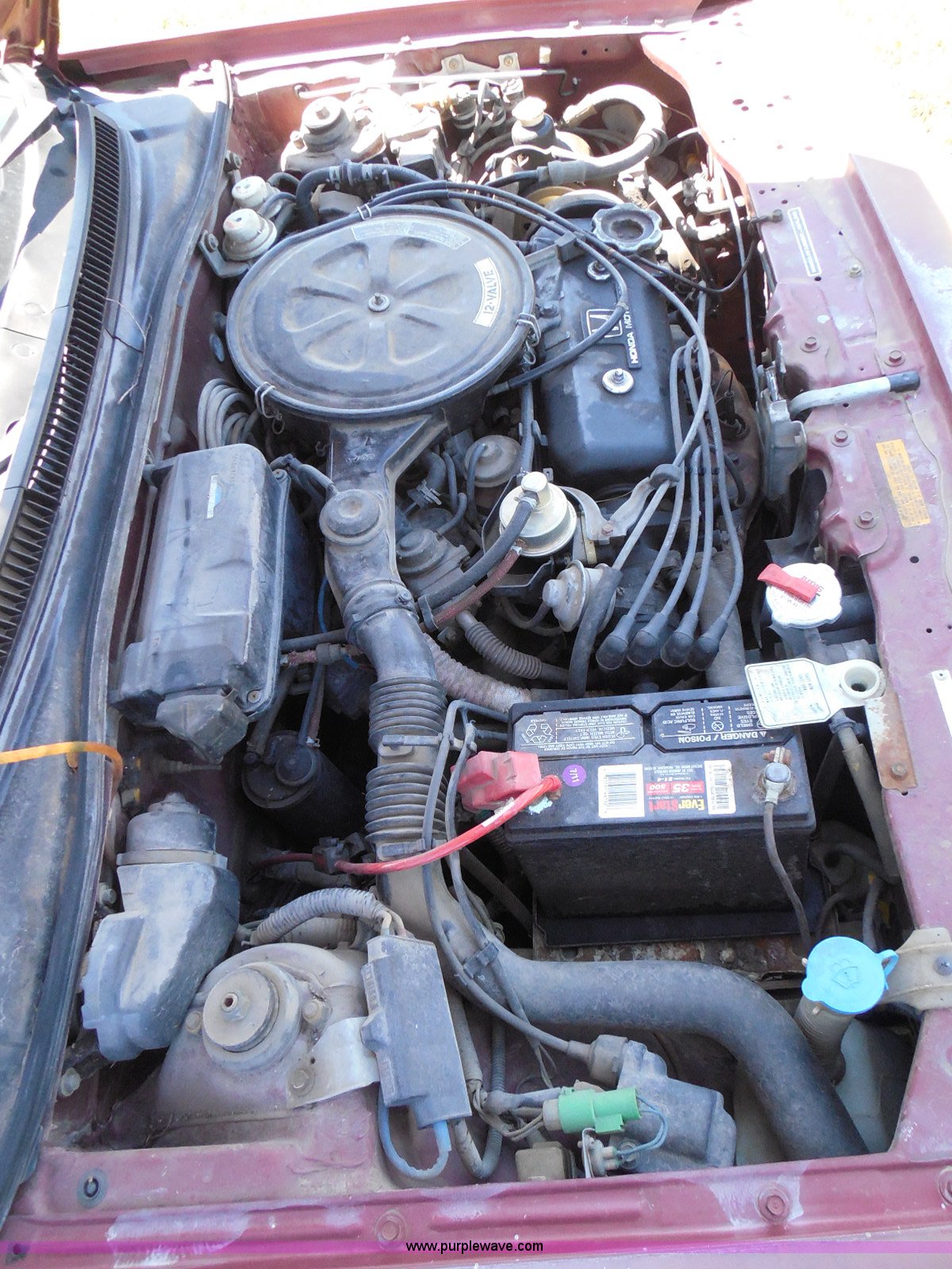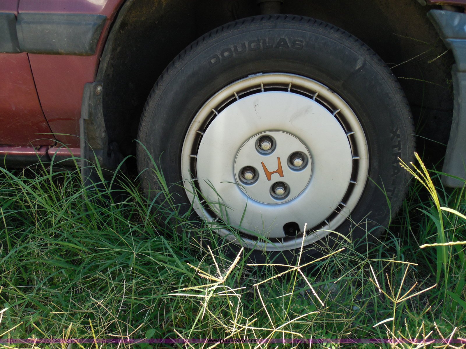 Purple Wave is selling a used Wrecked and Abandoned in Kansas. This item is a 1987 Honda Civic with the following: 68,076 miles on odometer, 1.5L L4 SOHC 16V gas engine, Automatic transmission, Manual windows and locks, Cloth interior, Keys, (3) P175/70R13 tires, Left rear tire has doughnut spare tire installed, Interior/exterior cosmetic damage, Cracked windshield, Paint damage, Missing headliner, Hail damage, Body panel damage, Rust, Left rear tire and wheel missing, Case# 14C43753