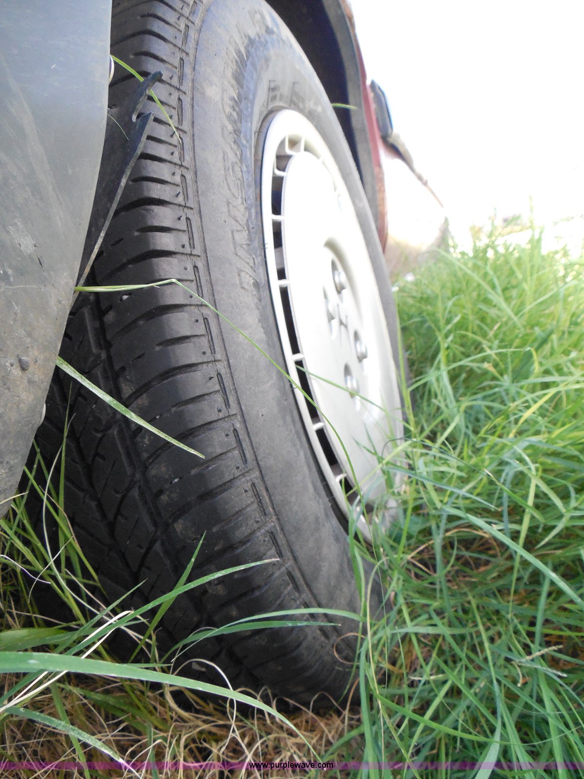 - Left rear tire and wheel missing