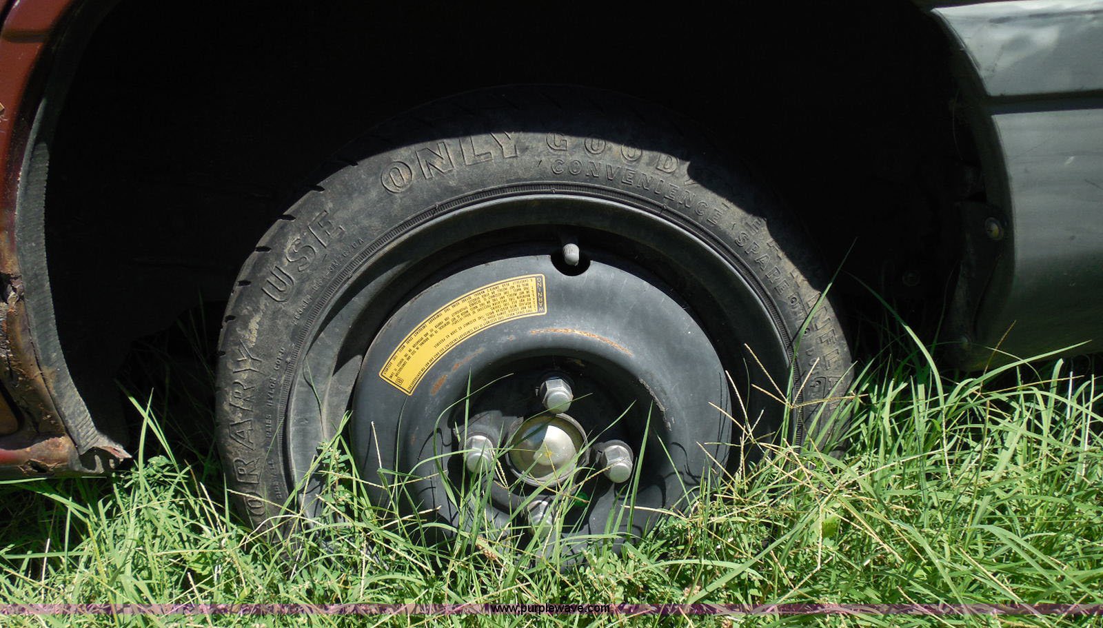 - Left rear tire has doughnut spare tire installed