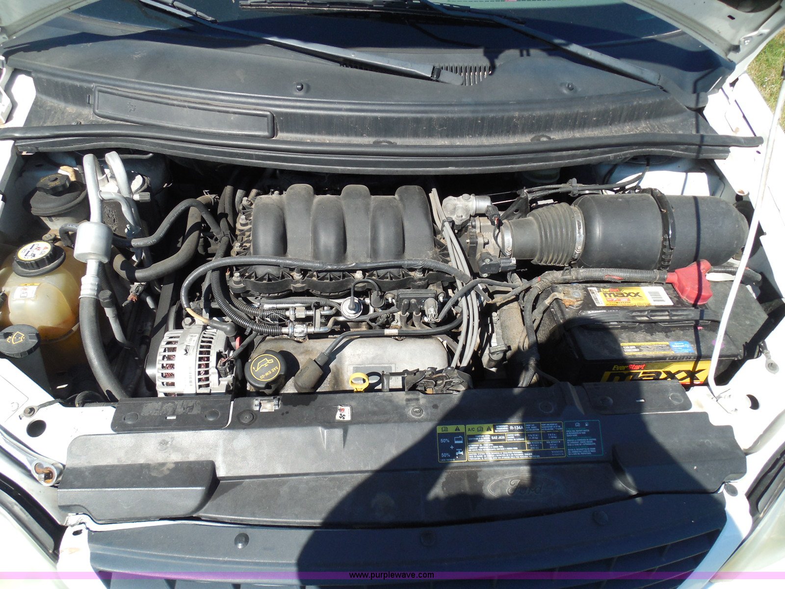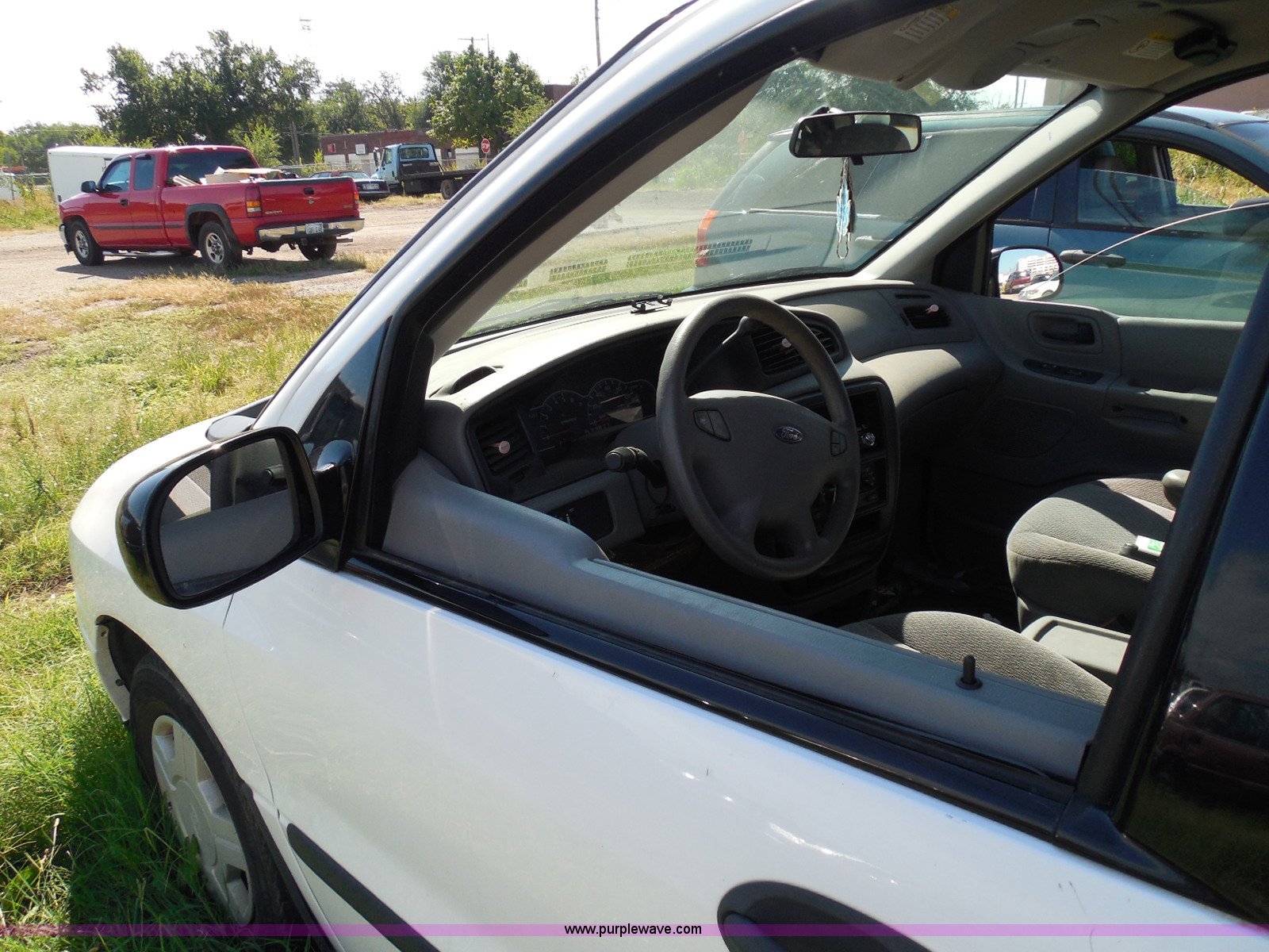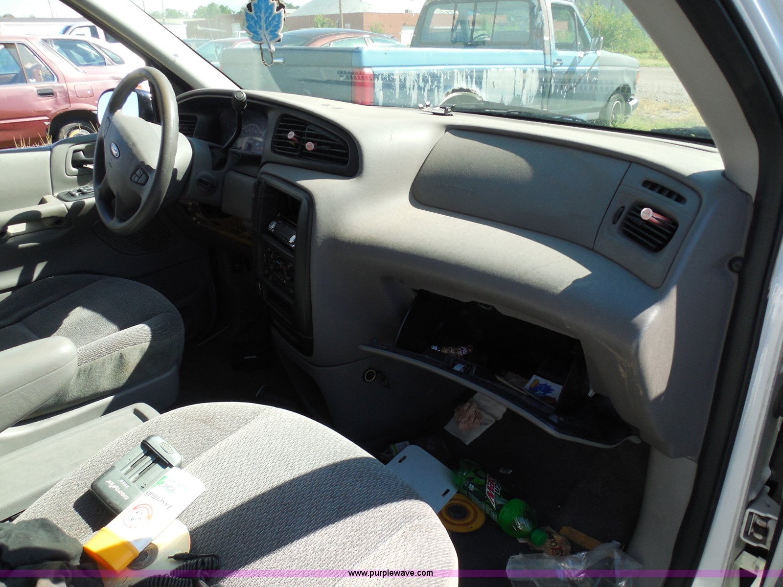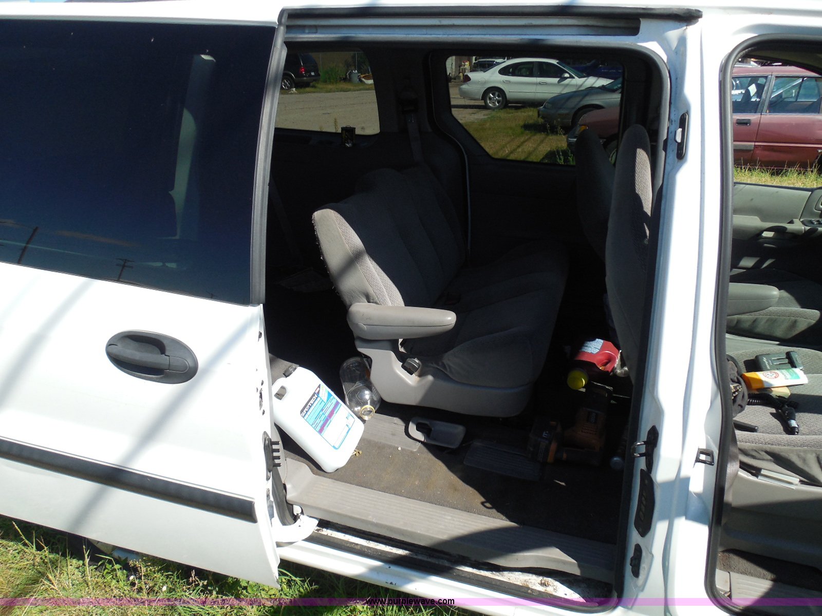 Purple Wave is selling a used Wrecked and Abandoned in Kansas. This item is a 2003 Ford Windstar LX van with the following: Unknown miles on odometer, 3.8L V6 OHV 12V gas engine, Automatic transmission, Phase Linear AM/FM/CD, Power windows, locks, and mirrors, Cloth interior, Keys, Rear climate control, Dual sliding side doors, Luggage rack, 215/70R15 tires, Interior/exterior cosmetic damage, Front windows rolled down, Interior exposed to weather, Rear seat missing, Interior panel under steering wheel missing, Hail damage, Clear coat peeling, Front bumper damage, Rust, Case# 14C45103