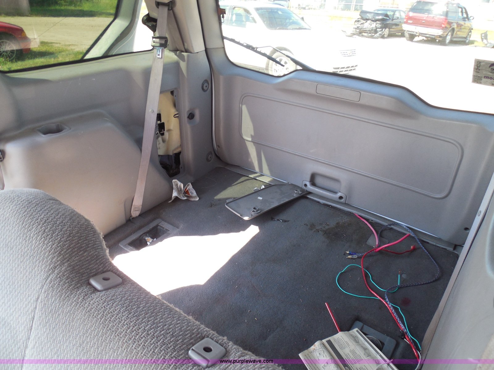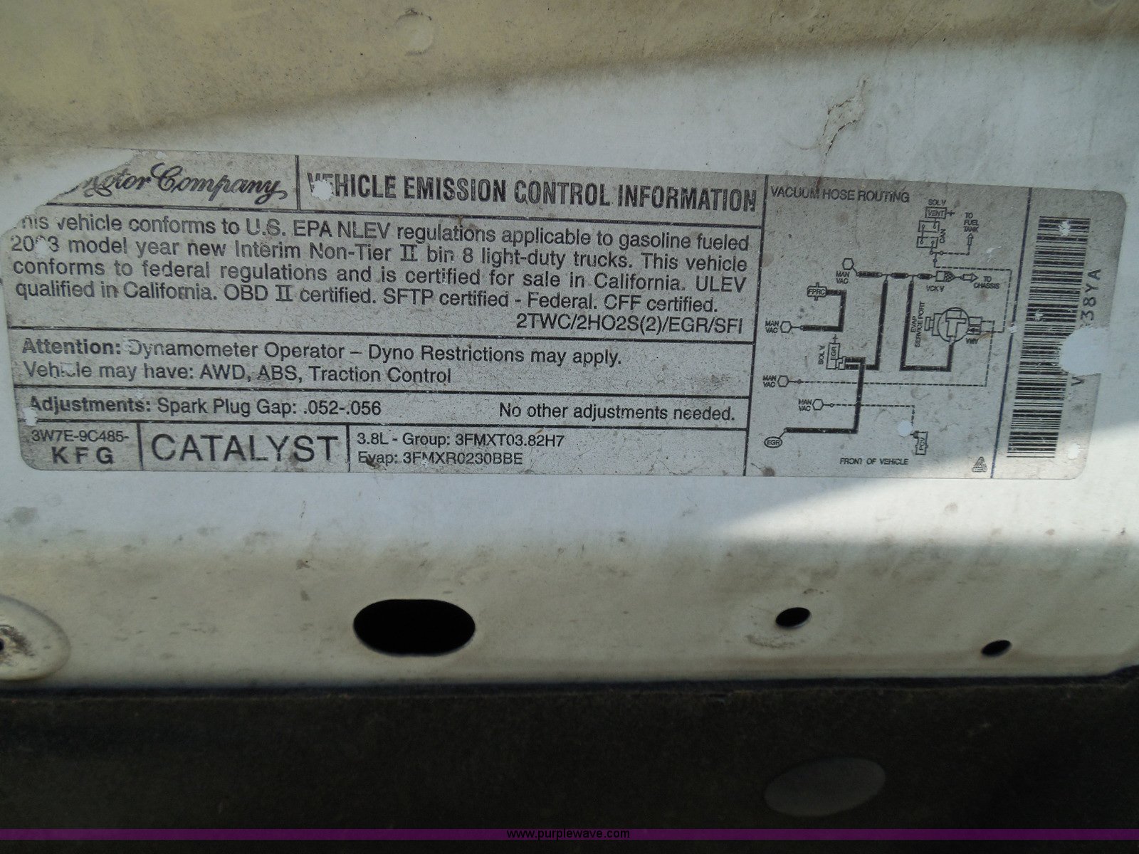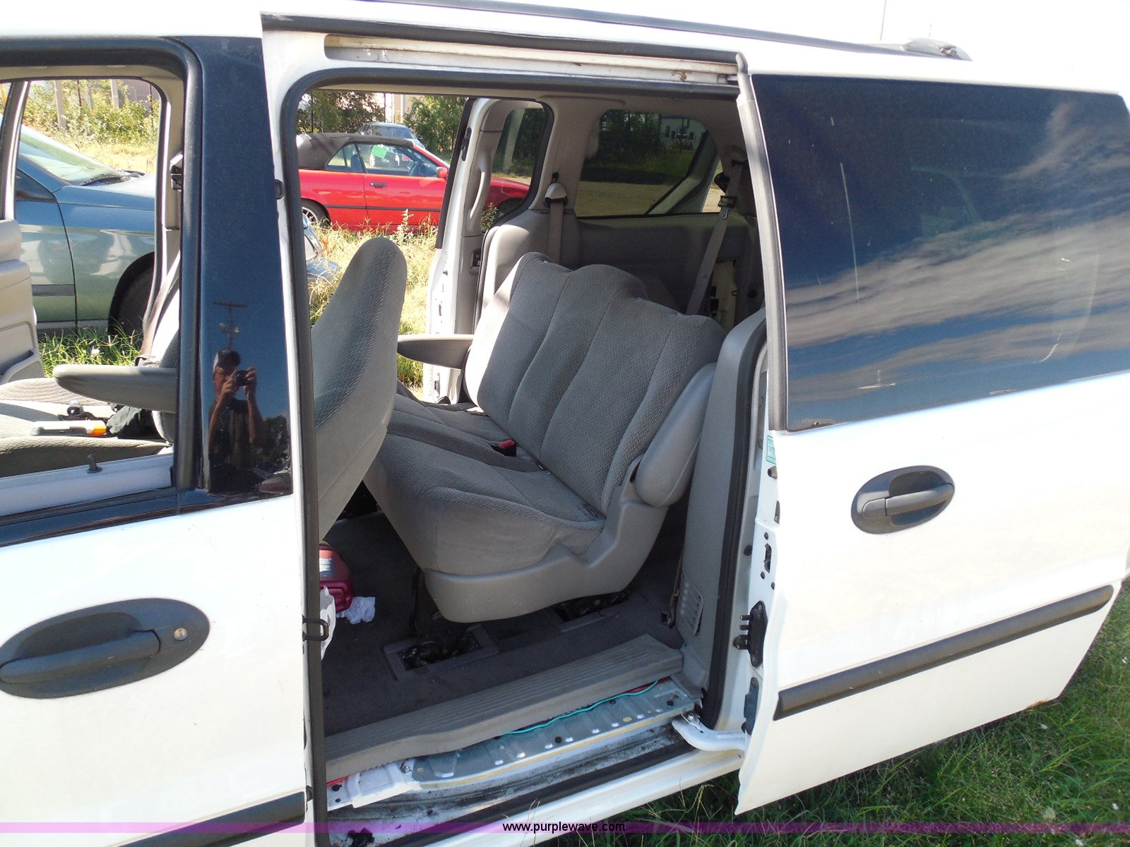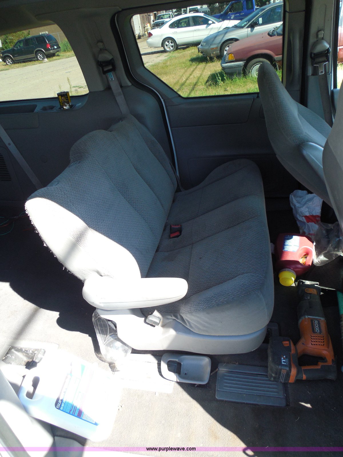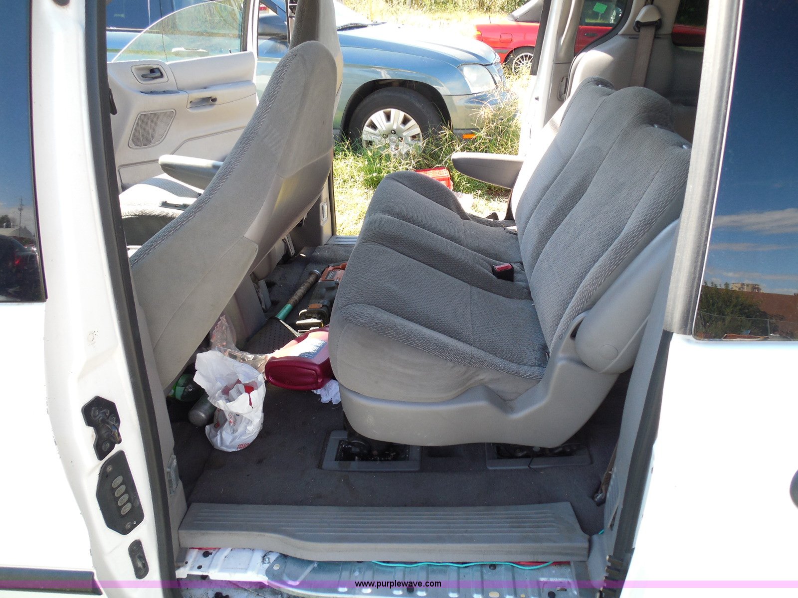 Purple Wave is selling a used Wrecked and Abandoned in Kansas. This item is a 2003 Ford Windstar LX van with the following: Unknown miles on odometer, 3.8L V6 OHV 12V gas engine, Automatic transmission, Phase Linear AM/FM/CD, Power windows, locks, and mirrors, Cloth interior, Keys, Rear climate control, Dual sliding side doors, Luggage rack, 215/70R15 tires, Interior/exterior cosmetic damage, Front windows rolled down, Interior exposed to weather, Rear seat missing, Interior panel under steering wheel missing, Hail damage, Clear coat peeling, Front bumper damage, Rust, Case# 14C45103