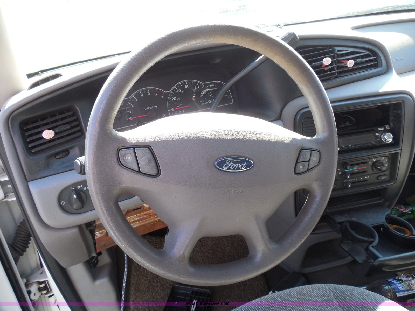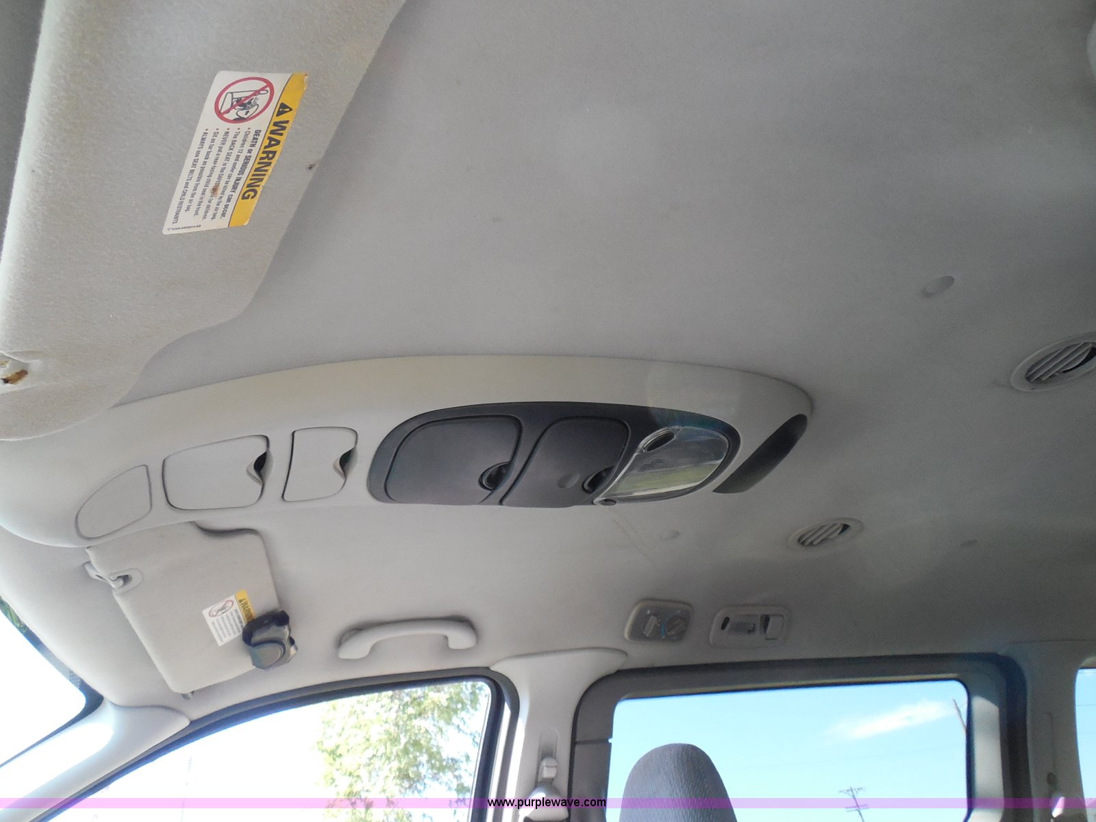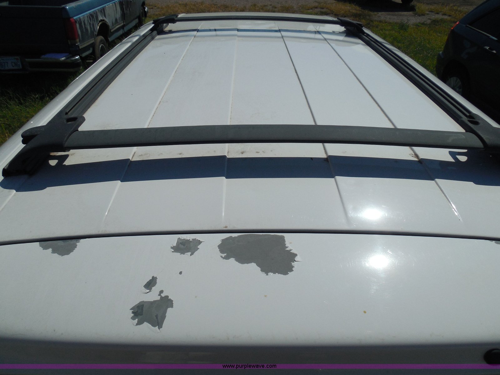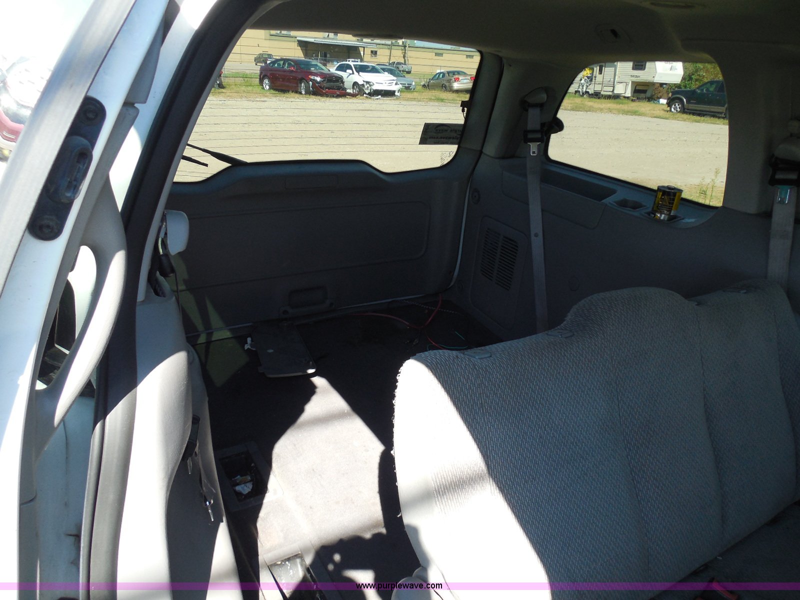 Purple Wave is selling a used Wrecked and Abandoned in Kansas. This item is a 2003 Ford Windstar LX van with the following: Unknown miles on odometer, 3.8L V6 OHV 12V gas engine, Automatic transmission, Phase Linear AM/FM/CD, Power windows, locks, and mirrors, Cloth interior, Keys, Rear climate control, Dual sliding side doors, Luggage rack, 215/70R15 tires, Interior/exterior cosmetic damage, Front windows rolled down, Interior exposed to weather, Rear seat missing, Interior panel under steering wheel missing, Hail damage, Clear coat peeling, Front bumper damage, Rust, Case# 14C45103
