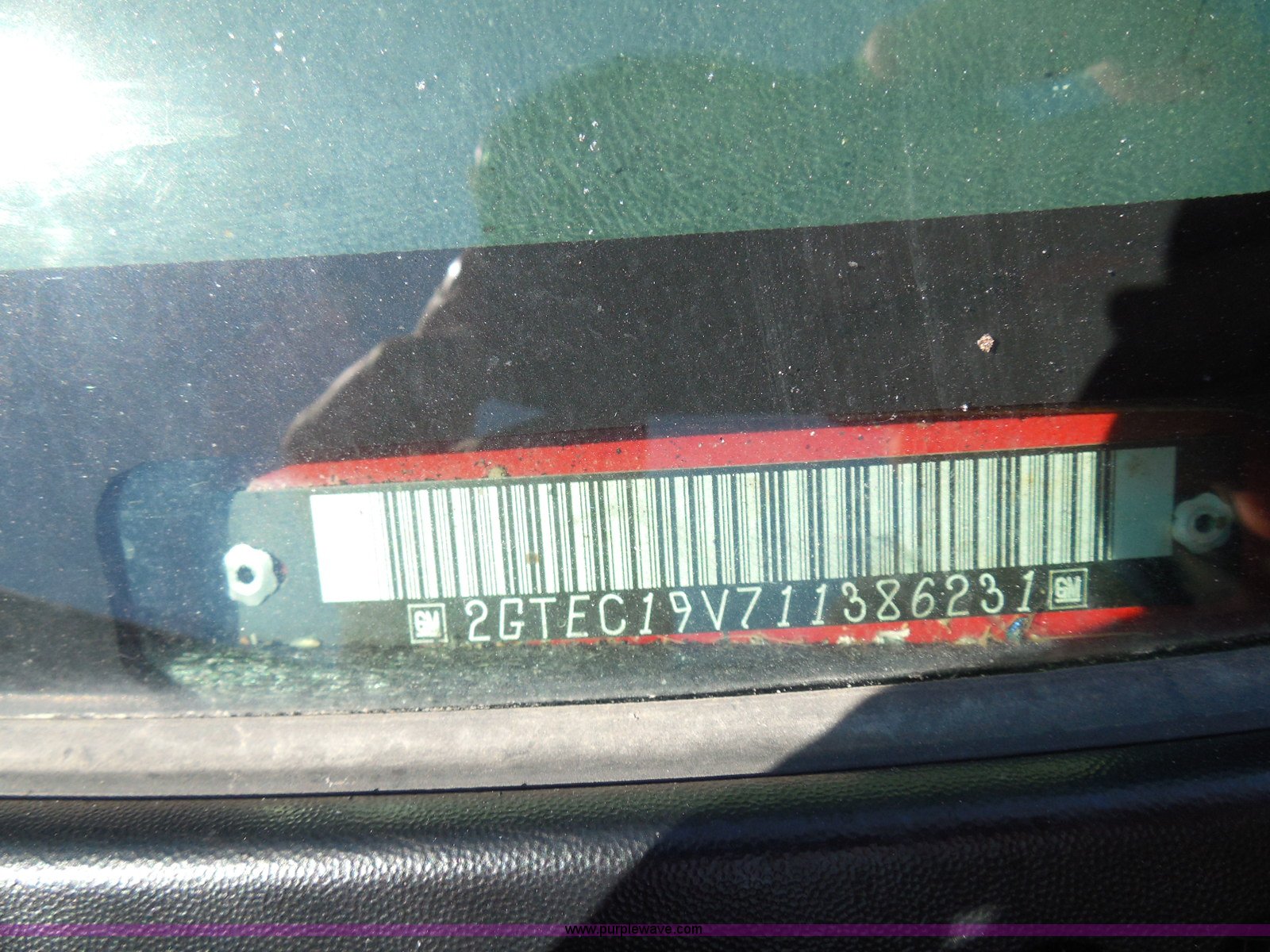 2001 GMC Sierra 1500 SL Ext. Cab pickup truck. Unknown miles on odometer, 4.8L V8 OHV 16V gas engine, Automatic transmission, Cloth interior, Chrome running boards, Receiver hitch, Trailer wiring, P255/70R16 tires, Interior/exterior cosmetic damage, Doors are locked, Cracked windshield, Clear coat peeling, Bed and cab contents included, Rust, Case# 14C47597. Vehicle is abandoned. Condition and history are unknown. No additional information is available. Vehicle does not have keys unless notated otherwise in the item listing.. View City Of Wichita Terms for title acquisition and item removal requirements.. 2GTEC19V711386231. Interstate Wrecker Service. 1028 N Mosley. Wichita, KS 67214