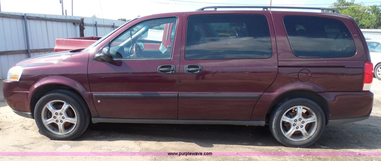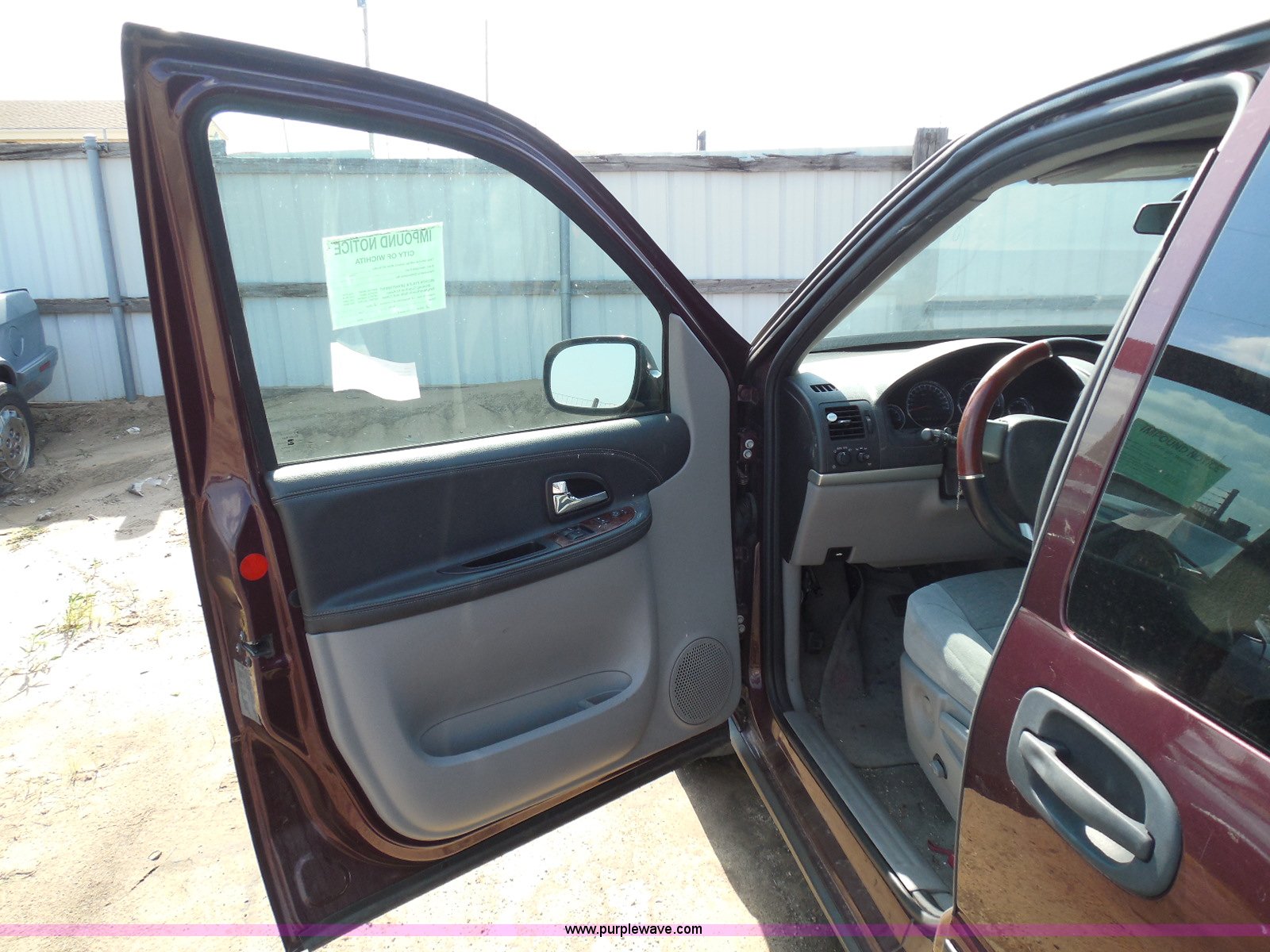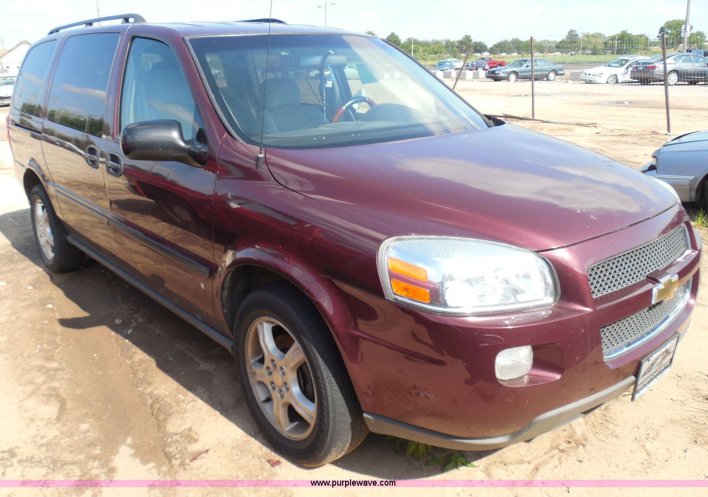 Purple Wave is selling a used Wrecked and Abandoned in Kansas. This item is a 2007 Chevrolet Uplander LS van with the following: Unknown miles on odometer, 3.9L V6 DOHC 24V gas engine, Automatic transmission, AM/FM/CD, Power windows, locks, mirrors, and seats, Cloth interior, Alloy wheels, P225/60R17 tires, Interior/exterior cosmetic damage, Glove box door missing, Tailgate damage, Paint peeling on rear bumper, Scratches, Right rear tire flat, Case# 14C039374