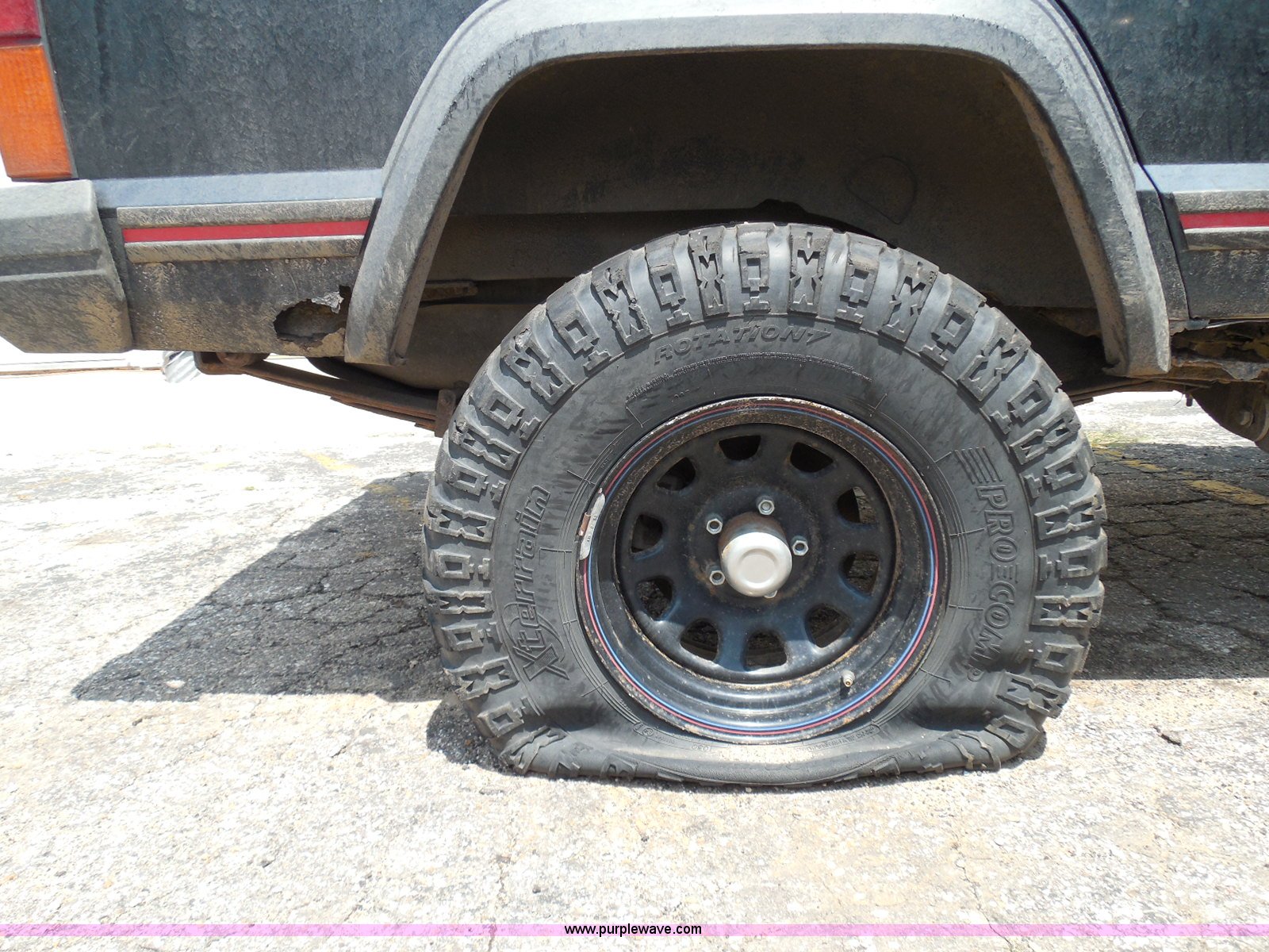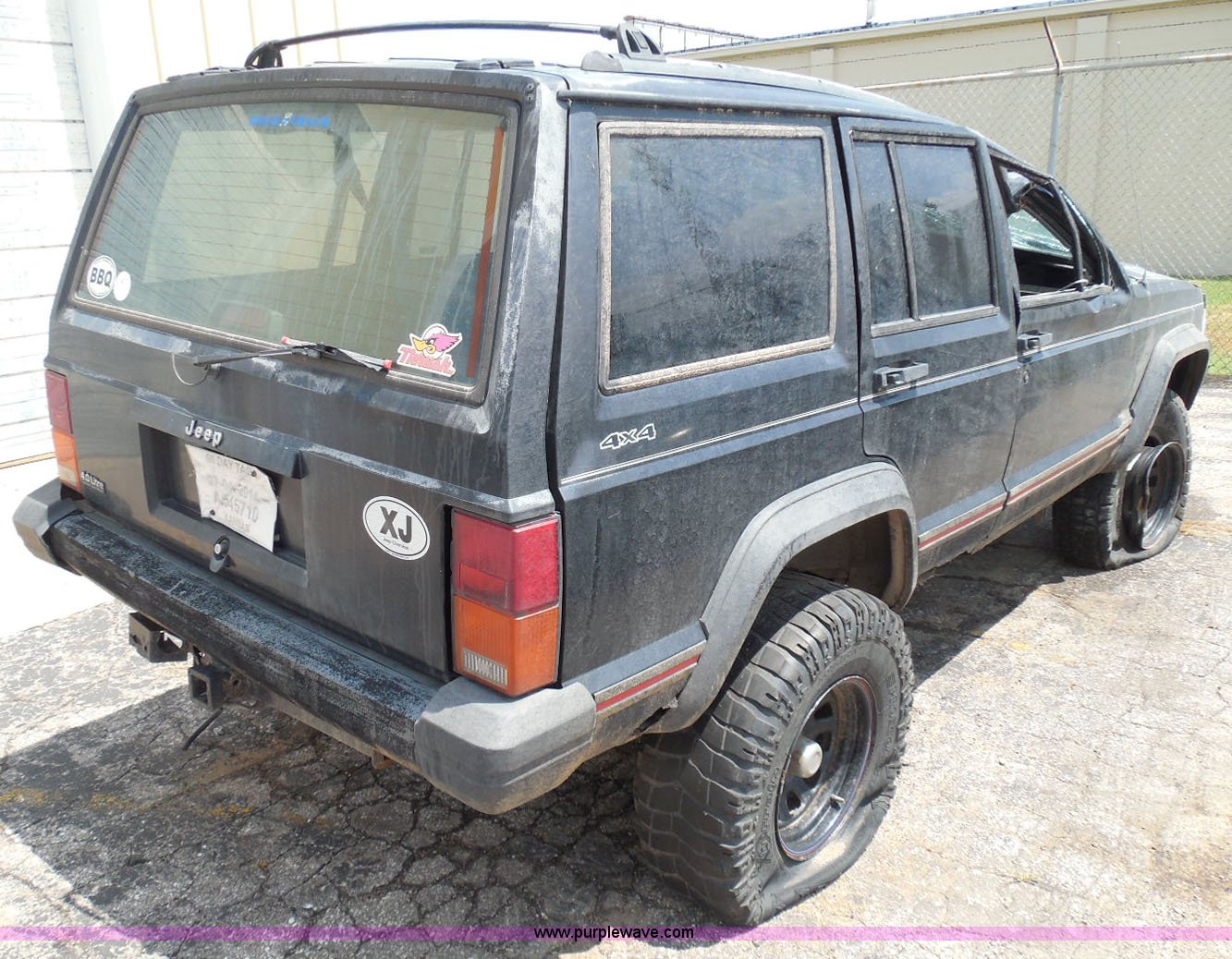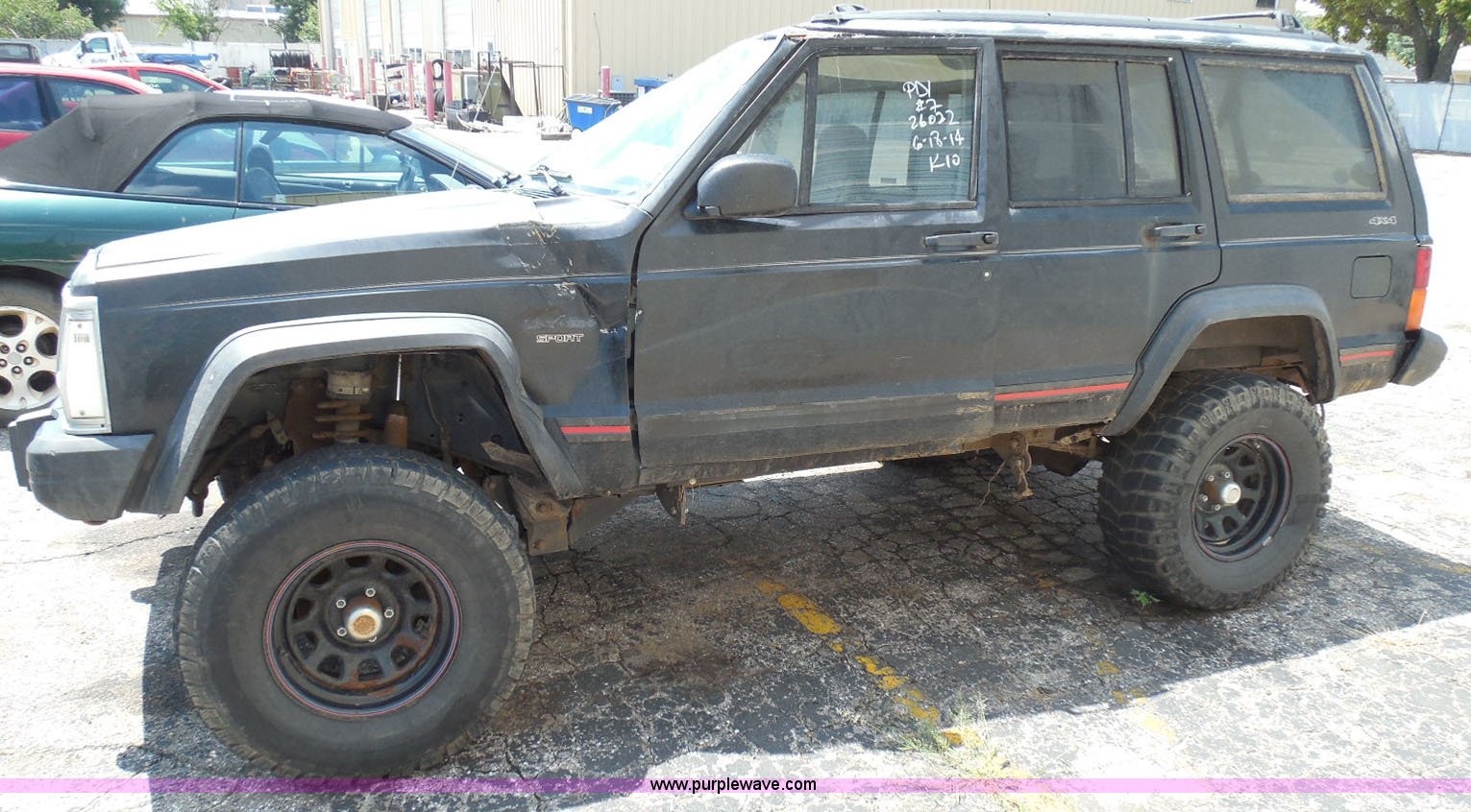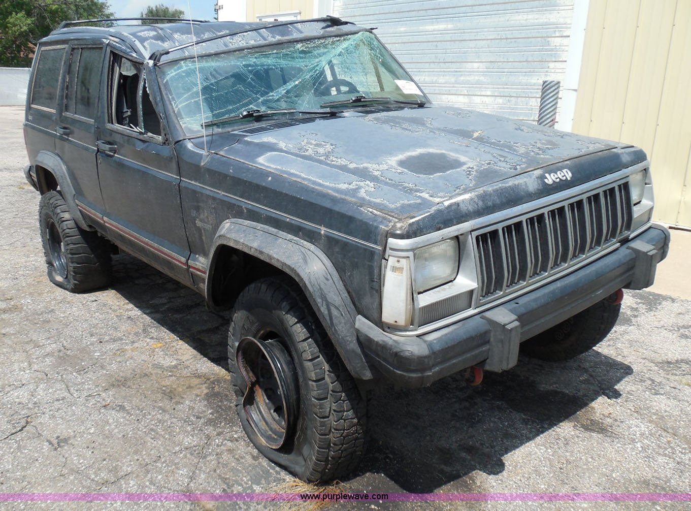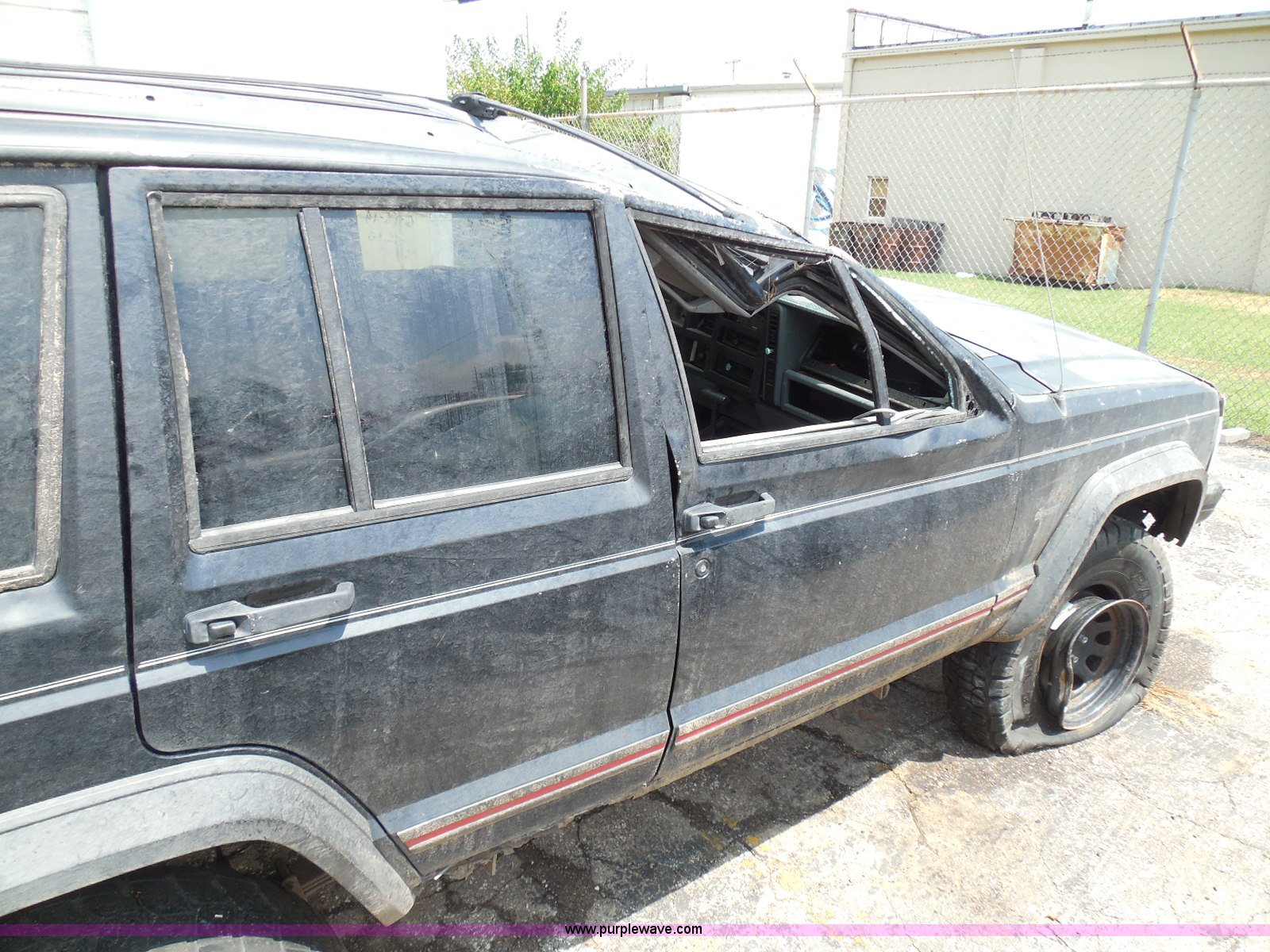Purple Wave is selling a used Wrecked and Abandoned in Kansas. This item is a 1995 Jeep Cherokee SUV with the following: 125,175 miles on odometer, 4.0L L6 OHV 12V gas engine, Automatic transmission, Four wheel drive, Power windows and locks, Cloth interior, Key with fob, Receiver hitch, After-market wheels, 31x10.50R15LT front tires, 31x12.50R15LT rear tires, Interior/exterior cosmetic damage, Rollover damage, Right front wheel and tire damaged beyond repair, Right rear tire flat, Rust, Windshield shattered, Paint oxidized and faded, Left front fender damage, Hood will not open, Doors will not open, Driver's door will not close, Roof is caved in, Case# 14C39511