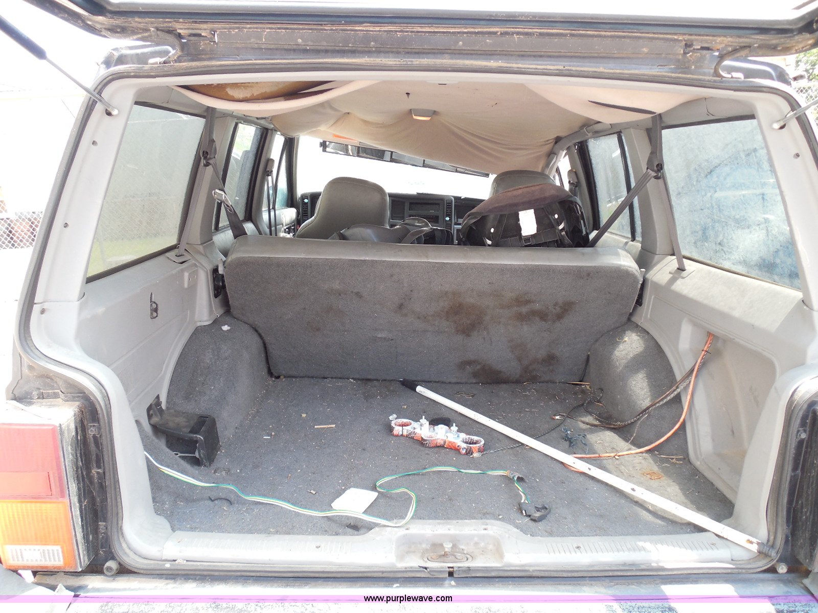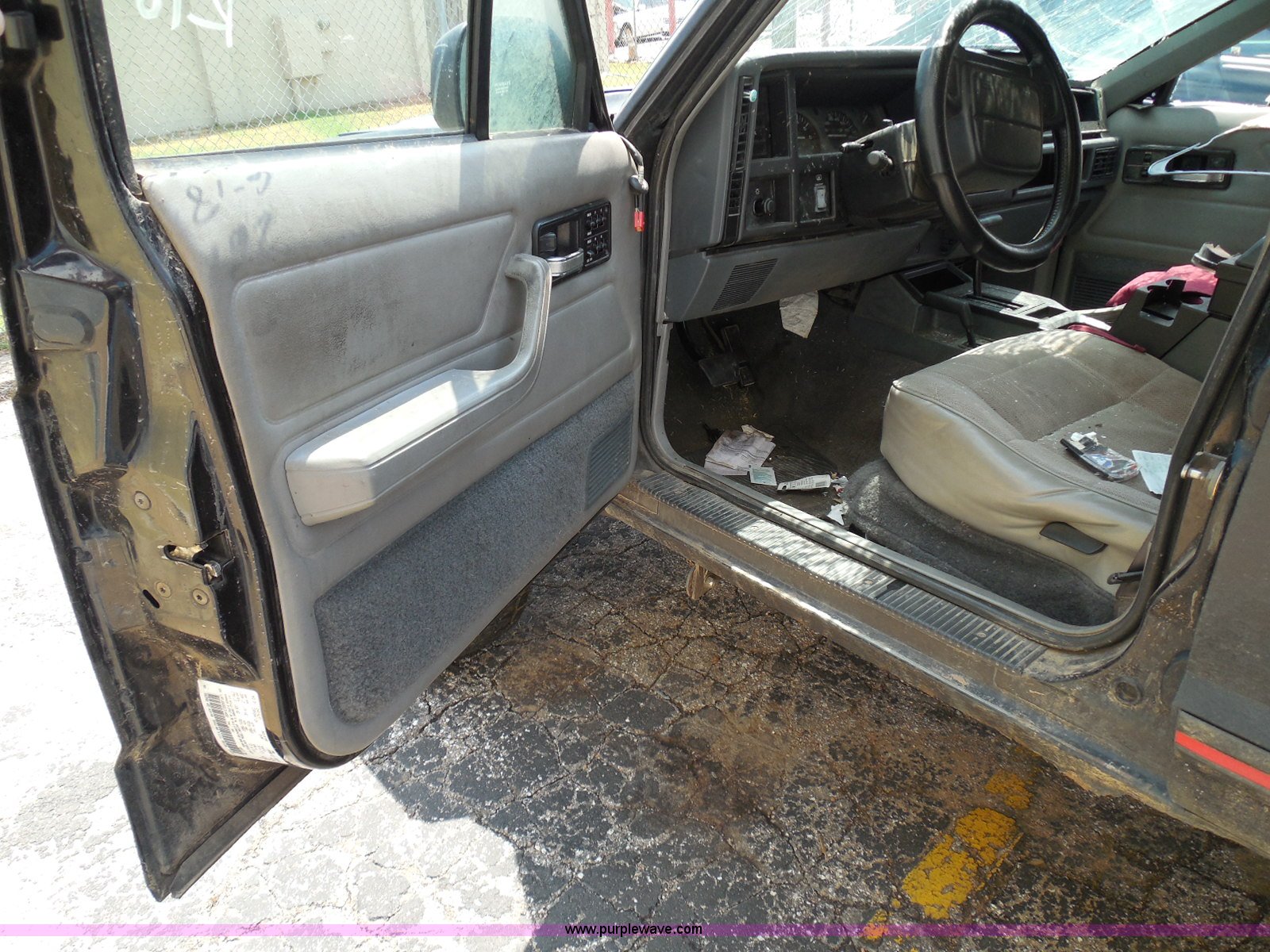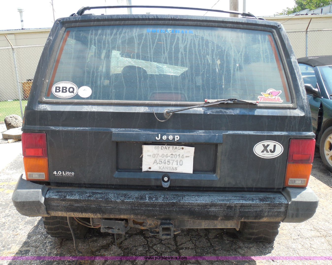 1995 Jeep Cherokee SUV. 125,175 miles on odometer, 4.0L L6 OHV 12V gas engine, Automatic transmission, Four wheel drive, Power windows and locks, Cloth interior, Key with fob, Receiver hitch, After-market wheels, 31x10.50R15LT front tires, 31x12.50R15LT rear tires, Interior/exterior cosmetic damage, Rollover damage, Right front wheel and tire damaged beyond repair, Right rear tire flat, Rust, Windshield shattered, Paint oxidized and faded, Left front fender damage, Hood will not open, Doors will not open, Driver's door will not close, Roof is caved in, Case# 14C39511. Title history is unknown. Buyer will be required to obtain a motor vehicle inspection from the Kansas Highway Patrol prior to titling. Motor vehicle inspections are by appointment only. Winning bidder will need to contact the Kansas Highway Patrol to make arrangements following the auction. Vehicle is abandoned. Condition and history are unknown. No additional information is available. Vehicle does not have keys unless notated otherwise in the item listing.. View City Of Wichita Terms for title acquisition and item removal requirements.. 1J4FJ68S6SL514933. Bud Roat Towing. 310 N Handley. Wichita, KS 67203