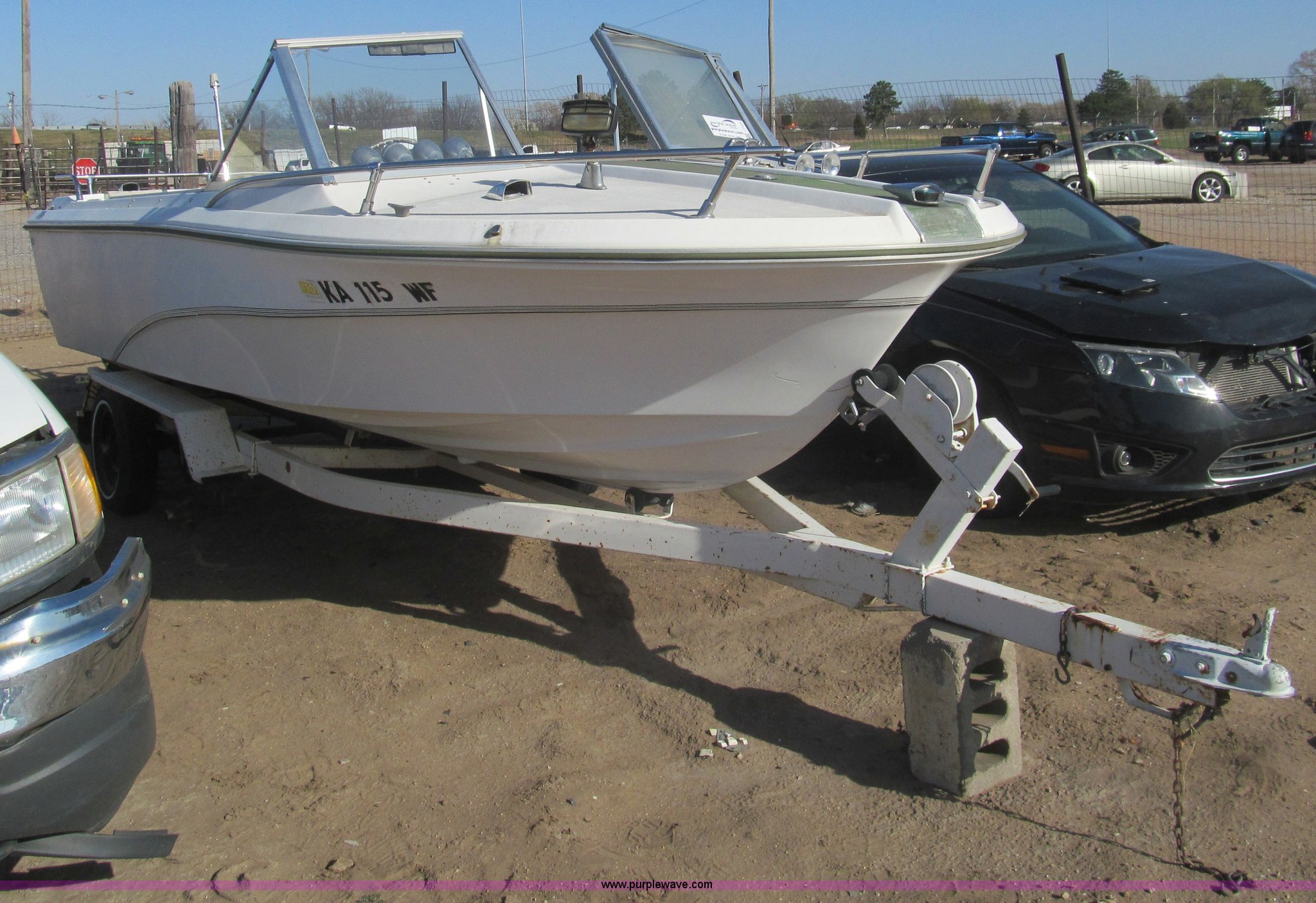 1969 Mark Twain 17'L boat. Mercruiser six cylinder inboard engine 160 HP, Six passenger capacity, Mark Twain tandem axle trailer Winch, 2" hitch, 155/80R13 tires, Lower unit removed, but included, Case# 147C12926, 14C012926. Vehicle is abandoned. Condition and history are unknown. No additional information is available. Vehicle does not have keys unless notated otherwise in the item listing.. View City Of Wichita Terms for title acquisition and item removal requirements... Title history is unknown. Buyer will be required to obtain a motor vehicle inspection from the Kansas Highway Patrol prior to titling. Motor vehicle inspections are by appointment only. Winning bidder will need to contact the Kansas Highway Patrol to make arrangements following the auction. KAZ518090409. Arrow Wrecker Service. 531 E MacArthur. Wichita, KS 67216