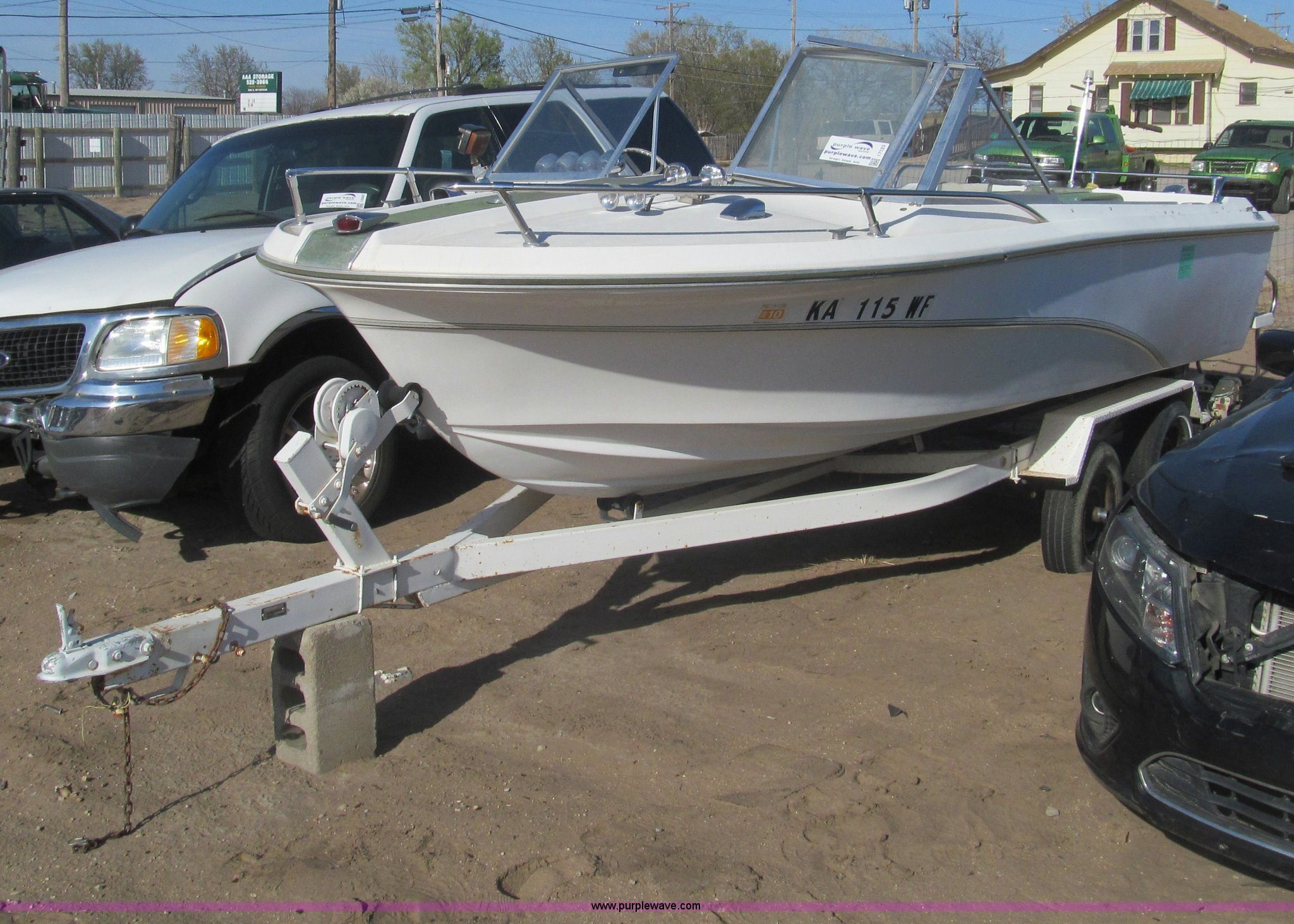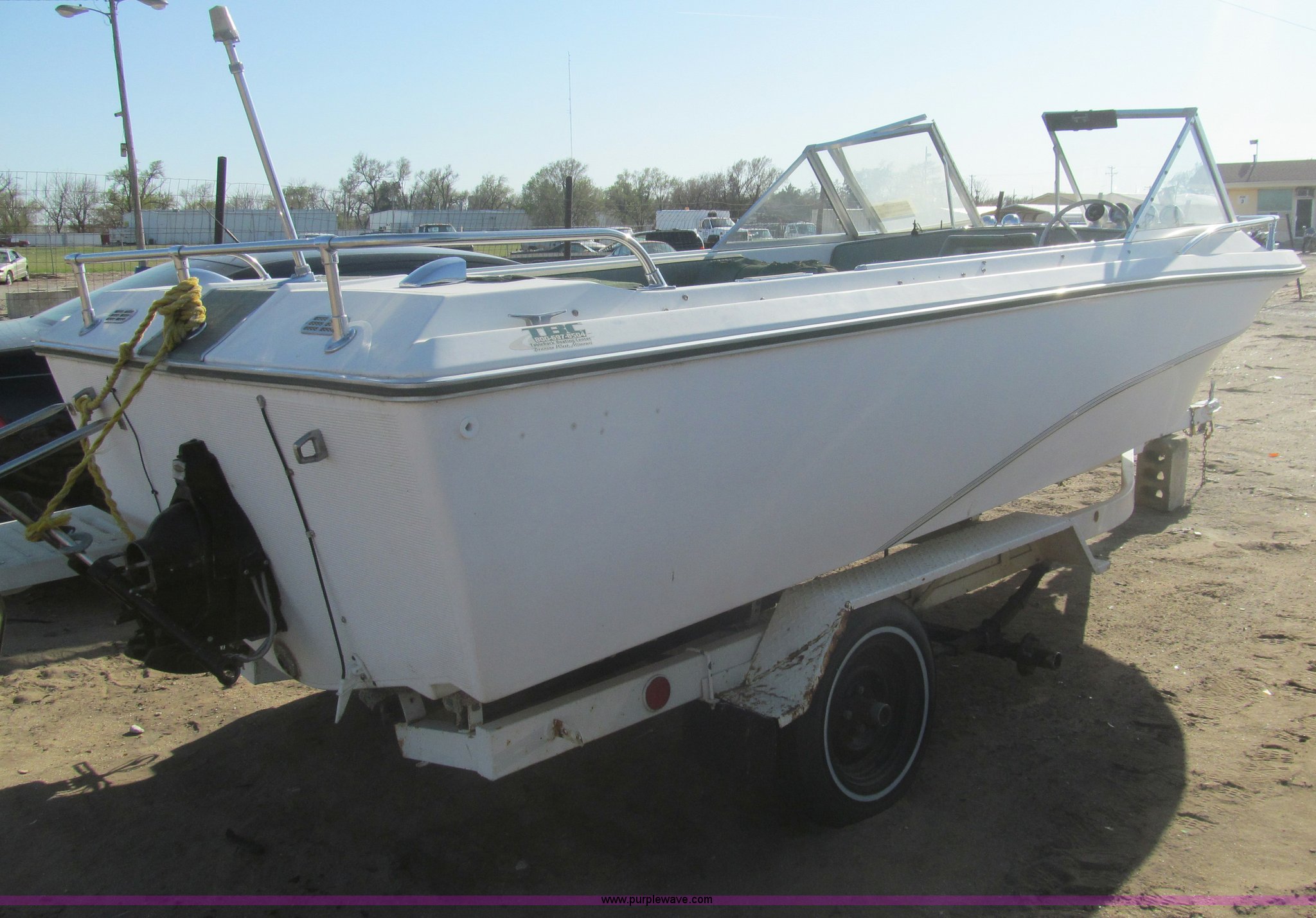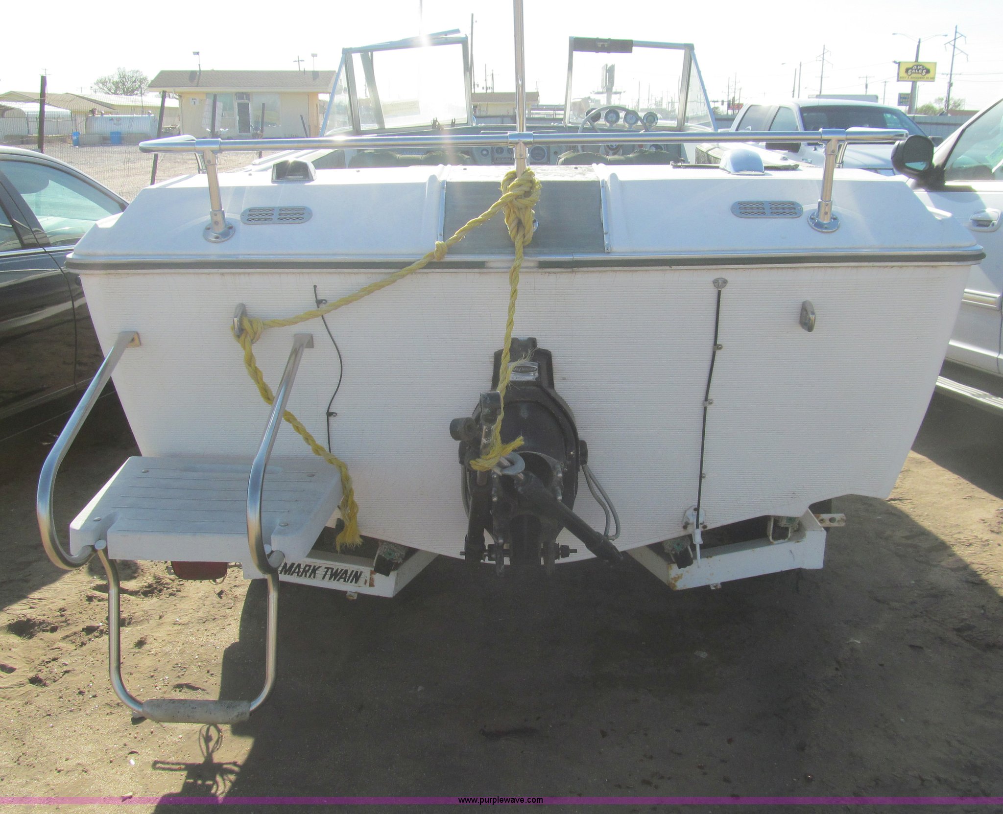 Purple Wave is selling a used Wrecked and Abandoned in Kansas. This item is a 1969 Mark Twain 17'L boat with the following: Mercruiser six cylinder inboard engine, 160 HP, Six passenger capacity, Mark Twain tandem axle trailer, Winch, 2" hitch, 155/80R13 tires, Lower unit removed, but included, Case# 147C12926, 14C012926