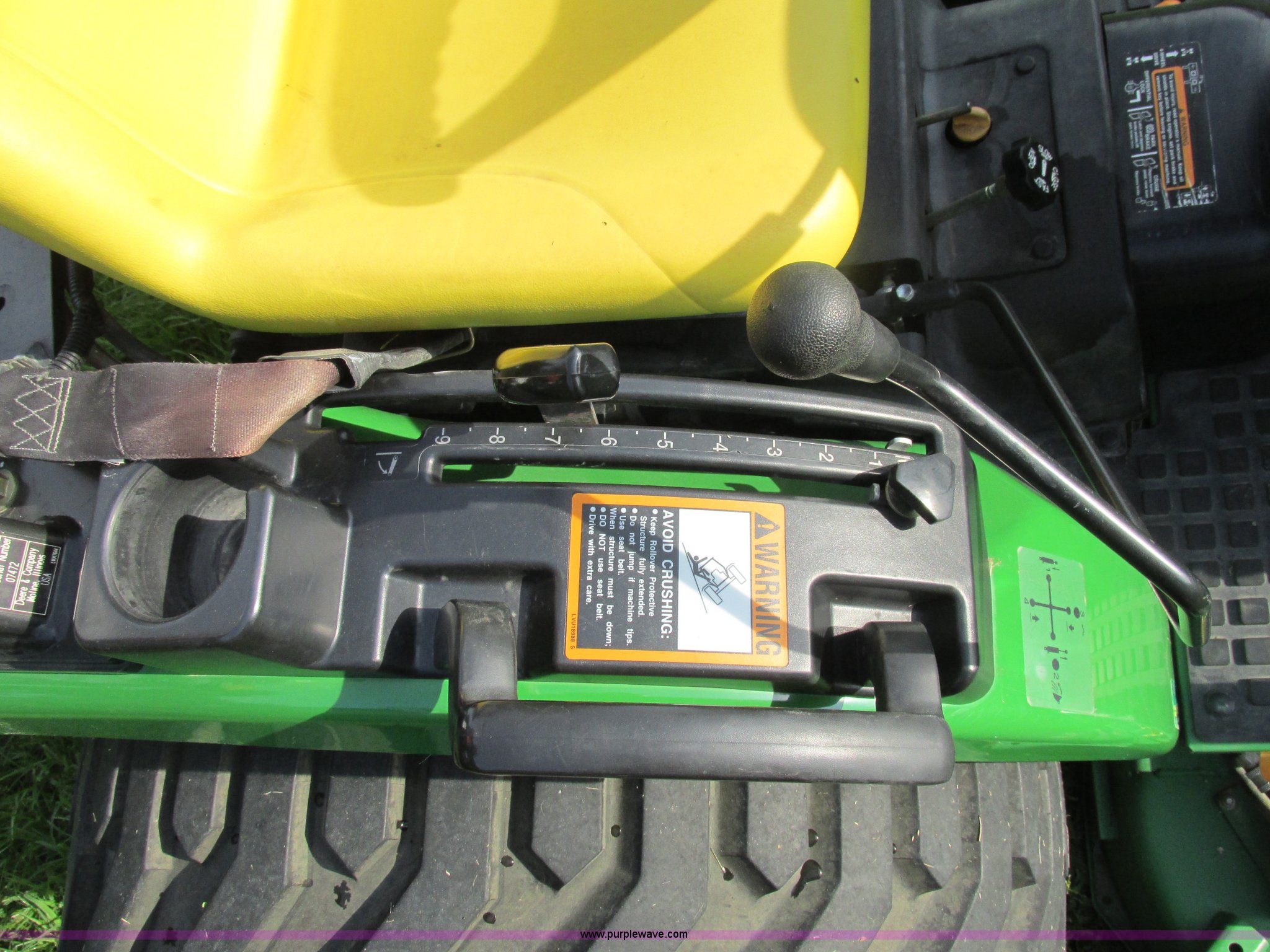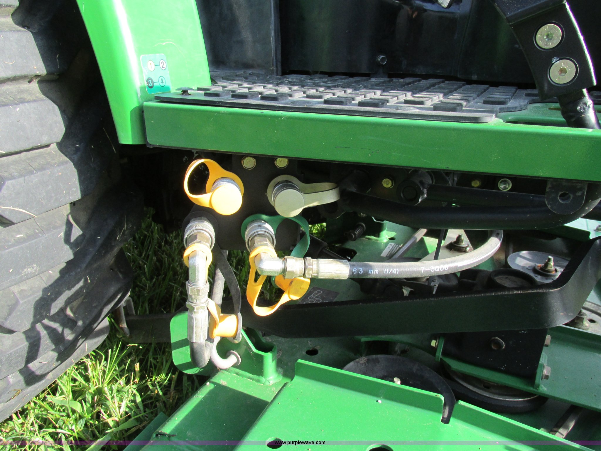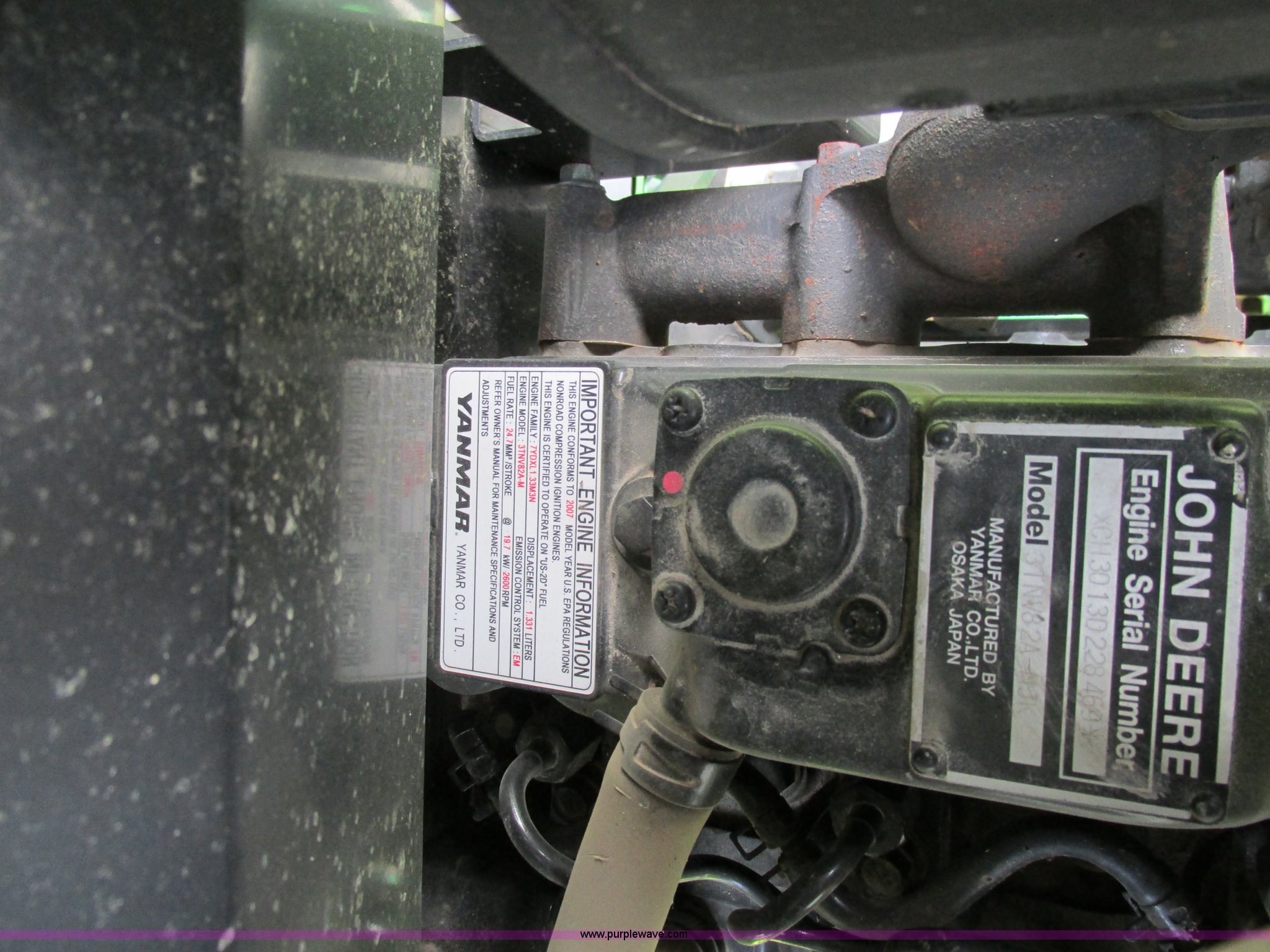 Purple Wave is selling a used Tractor in Missouri. This item is a 2008 John Deere 2520 HST MFWD tractor with the following: 552 hours on meter, Yanmar 3TNV82A-M 1.331L three cylinder diesel engine, Hydrostatic transmission, Fold down ROPS, Spring suspension seat, Blinkers, Headlights, Power steering, Three point, Draw bar, Quick attach belly mower, Model 62D, Plumbed for front loader, 23x8.50-12 front tires, 14-17.5 NHS rear tires, Serial LV2520H307182