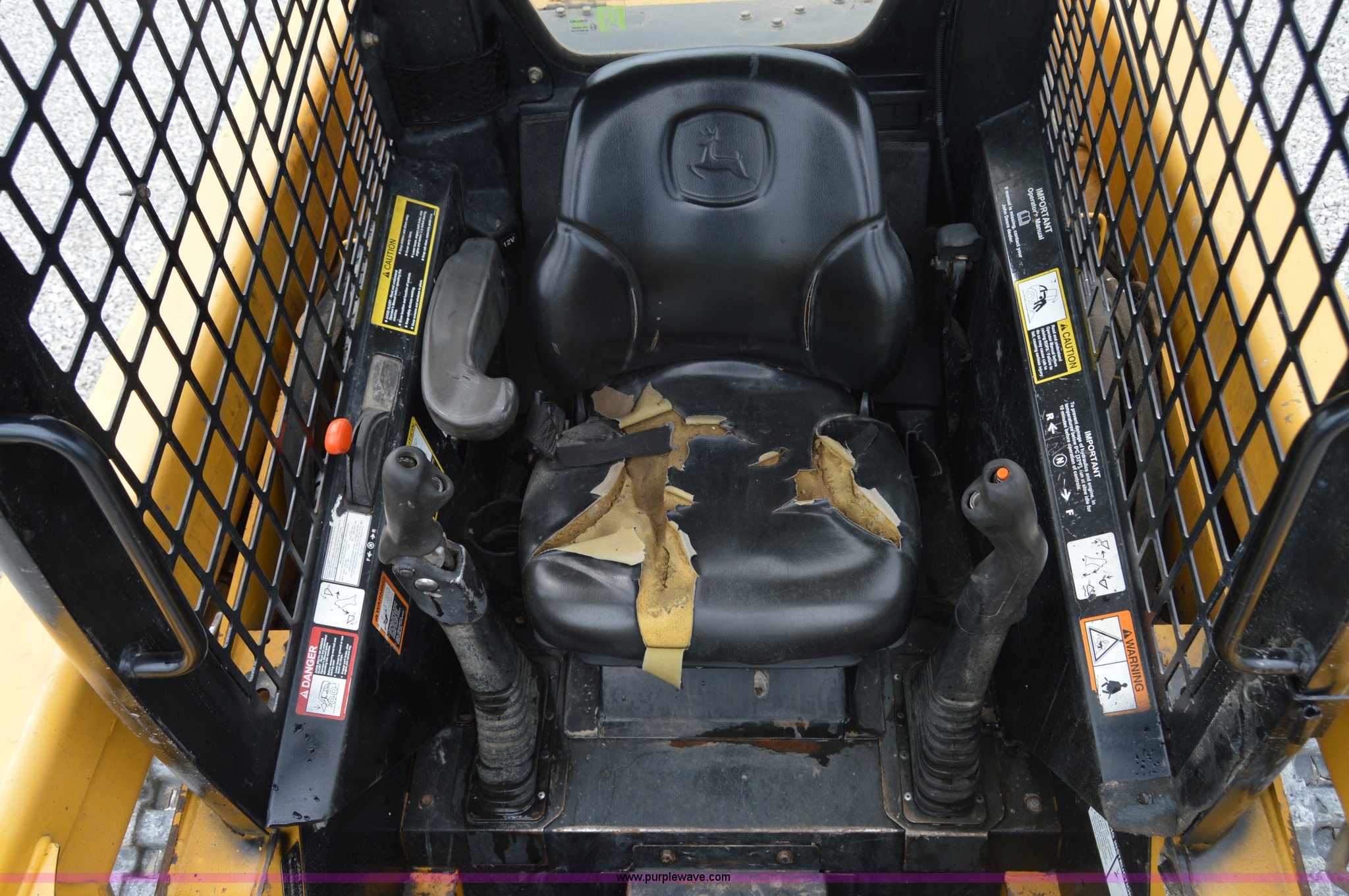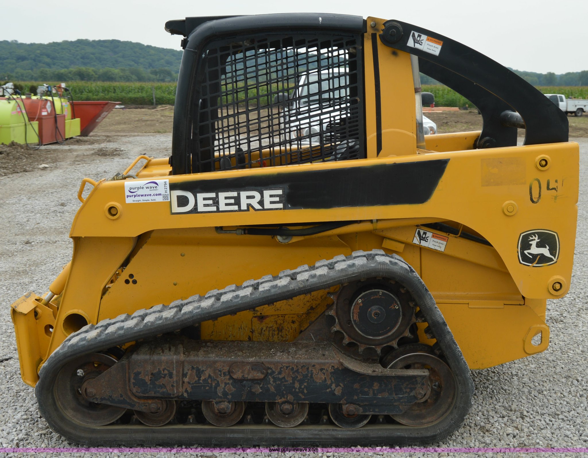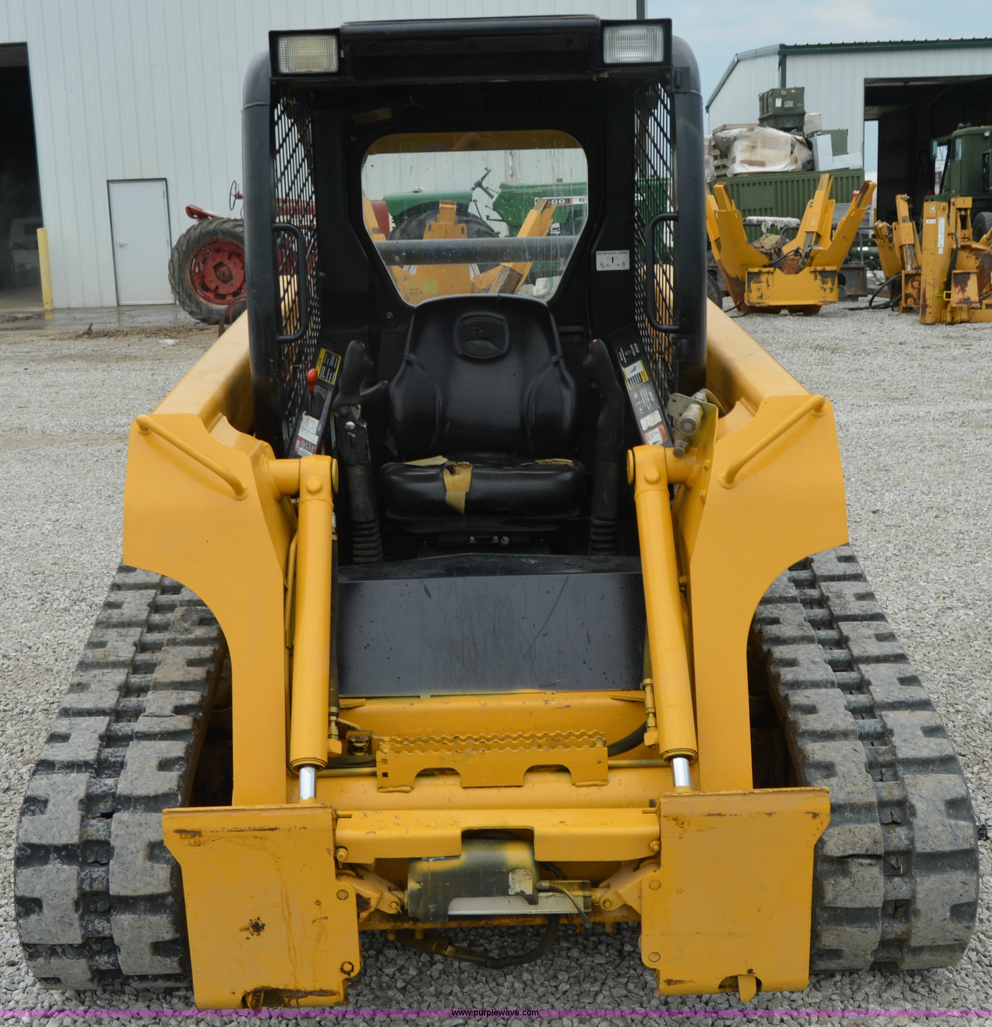 Purple Wave is selling a used Skid Steer Loader in Missouri. This item is a 2007 John Deere 320 skid steer with the following: 4,212 hours on meter, John Deere four cylinder diesel engine, Hydrostatic transmission, OROPS, Hand and foot controls, Work lights, Auxiliary hydraulics, Quick attach, 12"W rubber tracks, 6,435 lbs. base operating weight, Serial T0322TB146852