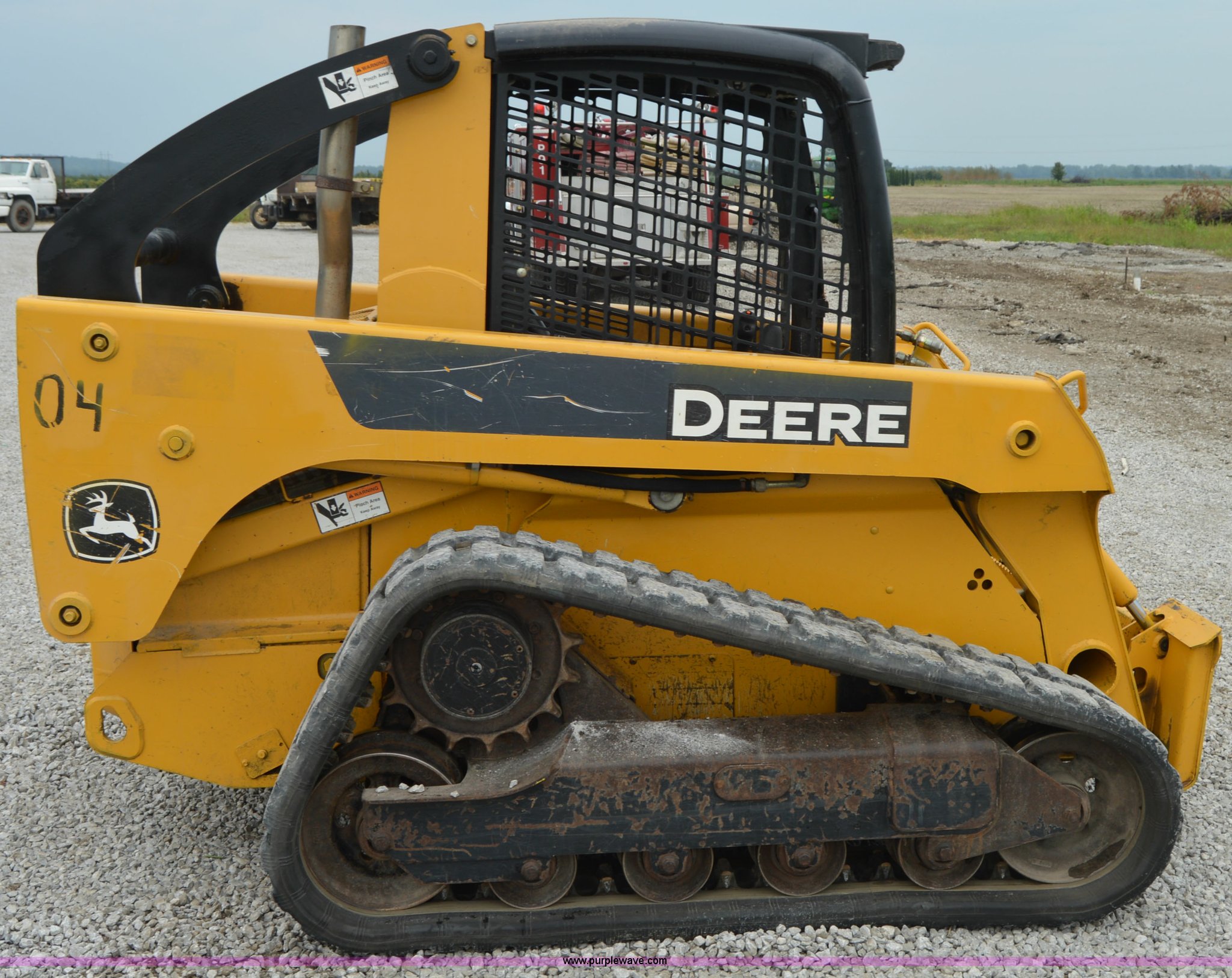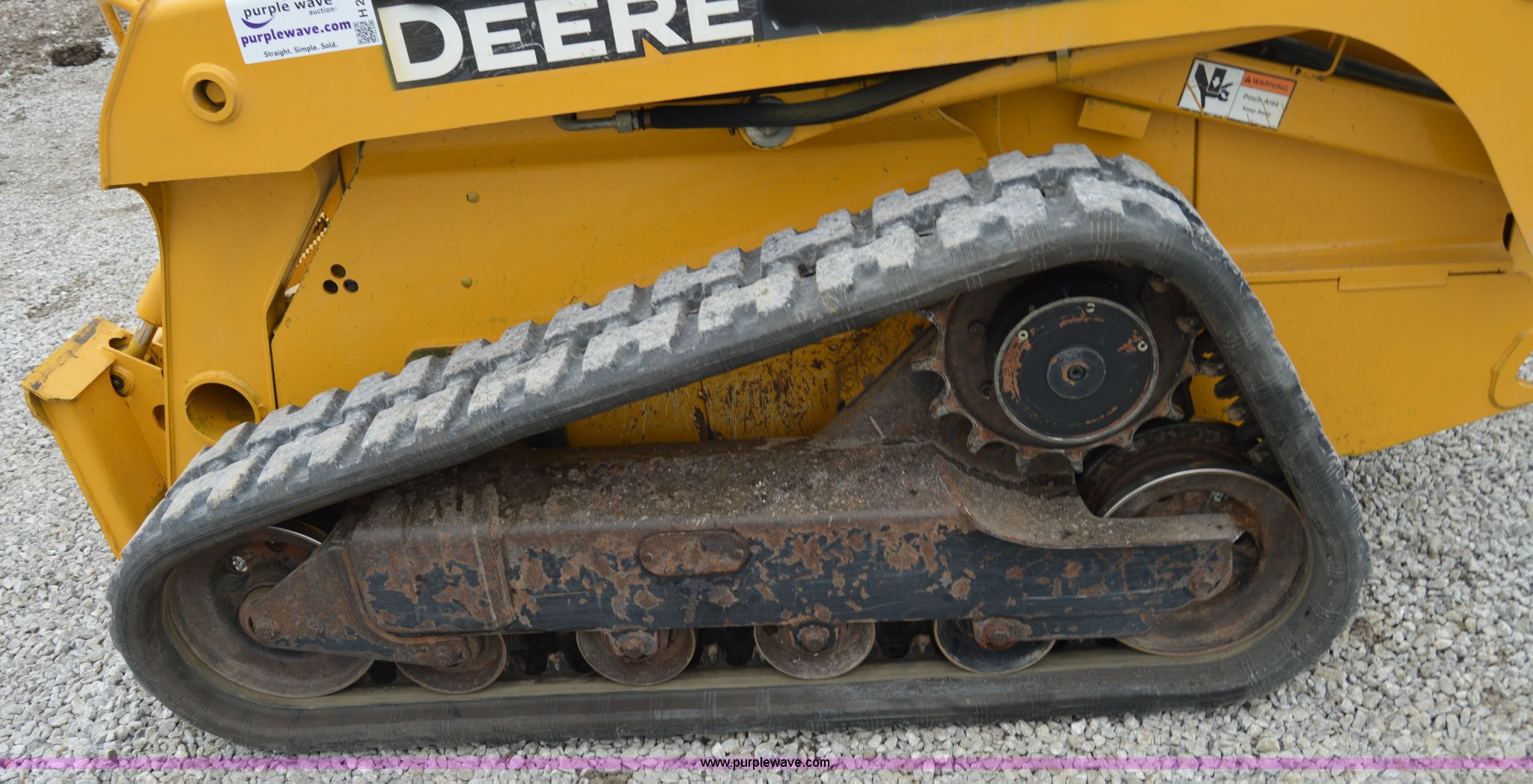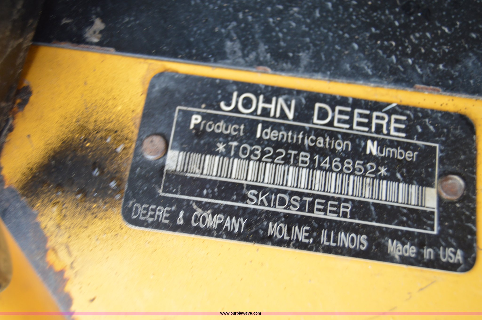 Purple Wave is selling a used Skid Steer Loader in Missouri. This item is a 2007 John Deere 320 skid steer with the following: 4,212 hours on meter, John Deere four cylinder diesel engine, Hydrostatic transmission, OROPS, Hand and foot controls, Work lights, Auxiliary hydraulics, Quick attach, 12"W rubber tracks, 6,435 lbs. base operating weight, Serial T0322TB146852