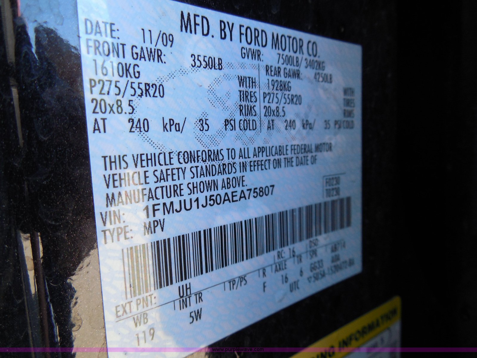 2010 Ford Expedition King Ranch SUV. 77,457 miles on odometer, 5.4L V8 SOHC 16V gas engine, Automatic transmission, Four wheel drive, AC and heat, Tilt, Cruise, AM/FM/CD, Power windows, locks, mirrors and seats, Heated seats, Heated and power fold mirrors, Navigation system, Bluetooth ready, Leather interior, Front tow hooks, Luggage rack, Entry keypad, DVD entertainment system, Electric fold out running boards, Power tailgate, Electric fold third seat, Rear climate controls, HID headlights, Adjustable foot pedals, Remote start, Sunroof, Receiver hitch, Alloy wheels, P275/55R20 tires, EIN 1132870. View item removal requirement and like-kind exchange information. 1FMJU1J50AEA75807. United Rentals - Charlotte. 6125 Lakeview Rd, Suite 300. Charlotte, NC 28269