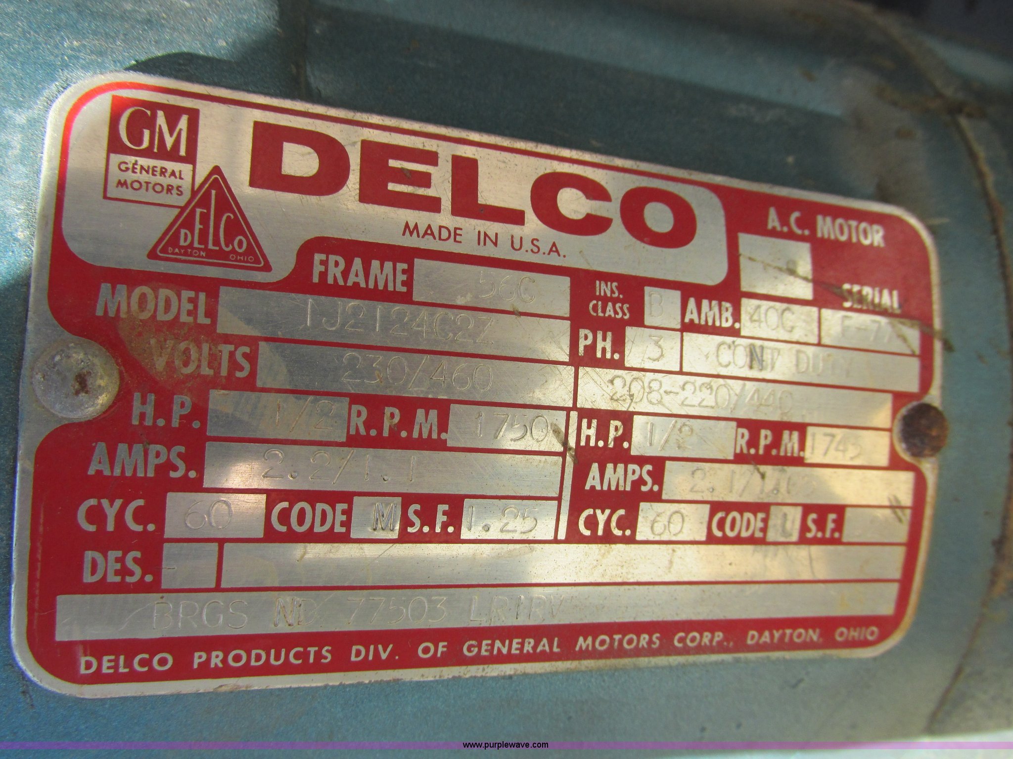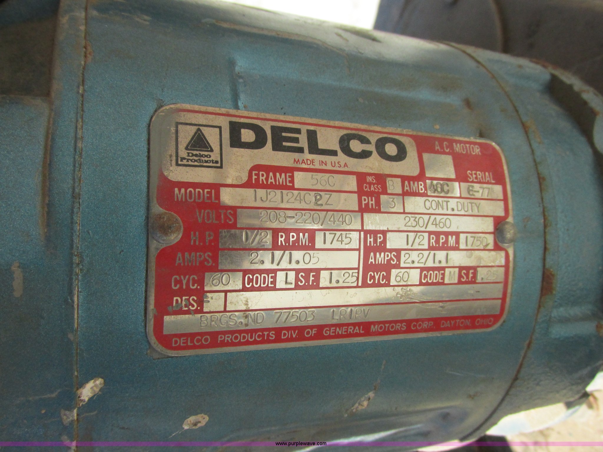 Purple Wave is selling a used Pump in South Dakota. This item is a Roth turbine condensate pump with the following: Model AVH107SF, (2) Delco AC electric motors, Model 1J2124C22, 1/2 HP, 230/460V, Three phase, Square D electrical box, Type A6-156, Serial 381389-1, 381389-2