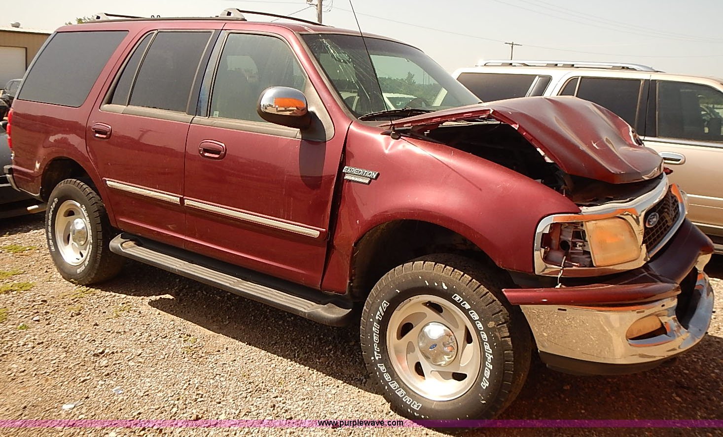Purple Wave is selling a used Wrecked and Abandoned in Kansas. This item is a 1997 Ford Expedition XLT SUV with the following: 183,752 miles on odometer, 5.4L V8 SOHC 16V gas engine, Automatic transmission, Four wheel drive, AC and heat, Tilt, AM/FM/cassette, Power windows, locks, mirrors, and seats, Vinyl interior, Rear climate control, Running boards, Luggage rack, Front tow hooks, Ball hitch, 265/70R17 tires, Interior/exterior cosmetic damage, Cracked windshield, Heavy front end damage, Air bags deployed, Unknown operating condition, Unit# 1