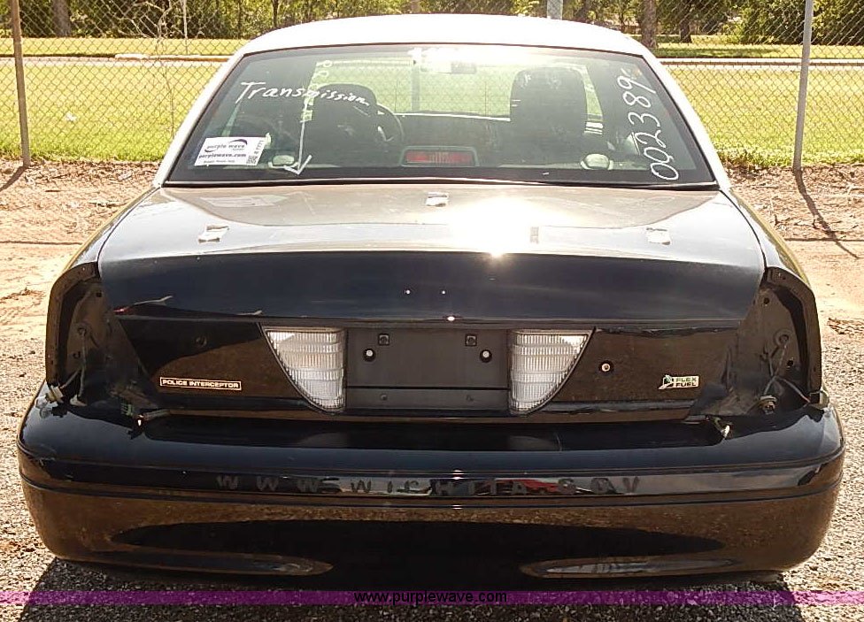 Purple Wave is selling a used Passenger Vehicle in Kansas. This item is a 2011 Ford Crown Victoria Police Interceptor with the following: 74,878 actual miles, 4.6L V8 SOHC 16V FFV gas engine, Automatic transmission, AC and heat, Tilt, AM/FM, Power windows, locks, and mirrors, Front cloth interior, Rear vinyl interior, Spotlight, P235/55R17 tires, Interior/exterior cosmetic damage, Weak battery, Engine is bad, Will run, Transmission has been removed, included in trunk, Port holes on roof and trunk lid, Water damage, Taillights missing, Front side running lights missing, Unit# 002389