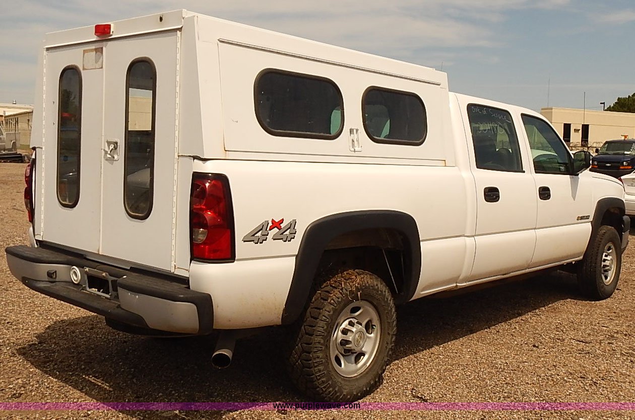 Purple Wave is selling a used 3/4 or 1 Ton Pickup or Van in Kansas. This item is a 2006 Chevrolet Silverado 2500HD Crew Cab pickup truck with the following: 94,088 actual miles, 6.0L V8 OHV 16V gas engine, Automatic transmission, Four wheel drive, AC and heat, Tilt, AM/FM, Manual windows and locks, Vinyl interior, Amber roof-top strobe light, Steel topper, Full access rear entry doors, Full length side entry hatch doors, LT245/75R16 tires, Interior/exterior cosmetic damage, Paint peeling, Exterior body damage, Scratches, Dents, Unit# 001180