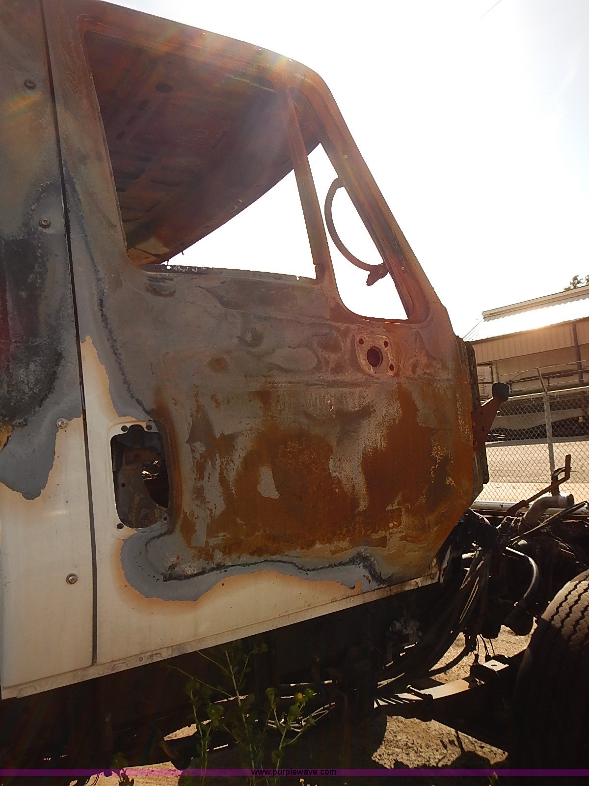 Purple Wave is selling a used Truck Part and Attach. in Kansas. This item is a 2008 International 7400SFA truck cab and chassis with the following: Approx. 46,130 miles, Engine removed, Transmission removed, Spring suspension, Air brakes, 315/80R22.5 front tires, 12R22.5 rear tires, Single wheels on rear tandems, Extensive fire damage, No fuel tank, No batteries, Missing parts, Missing body parts, No glass, Unit# 1571