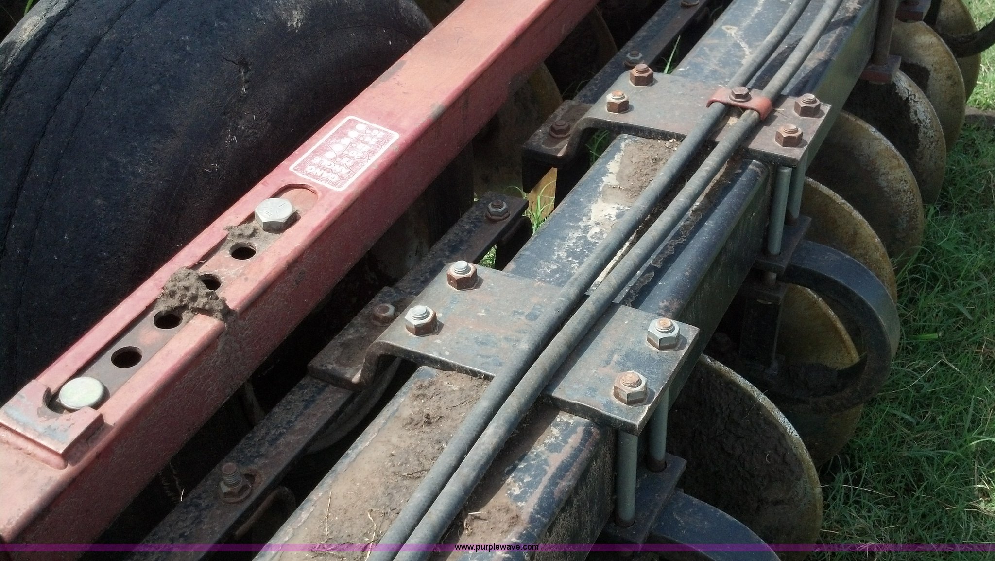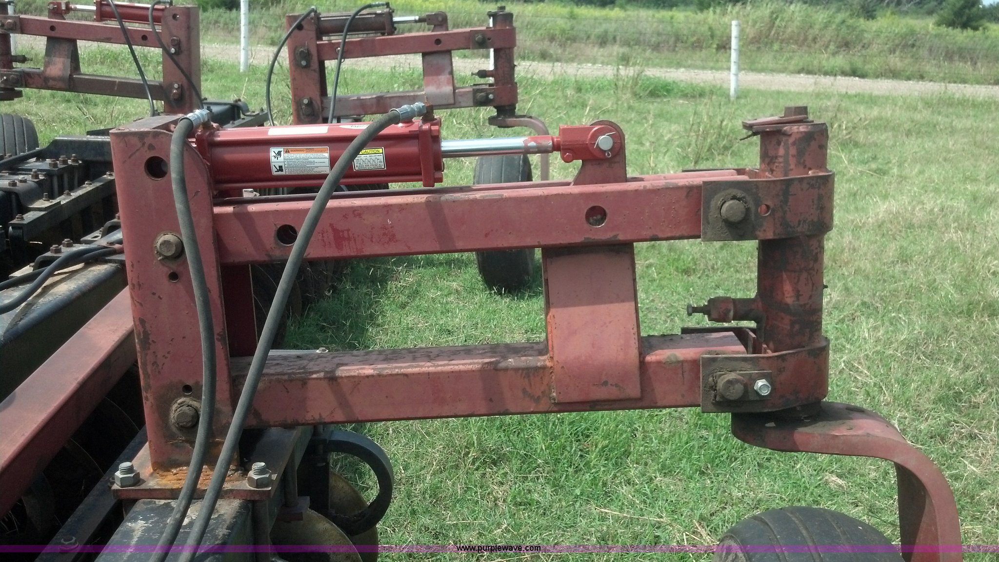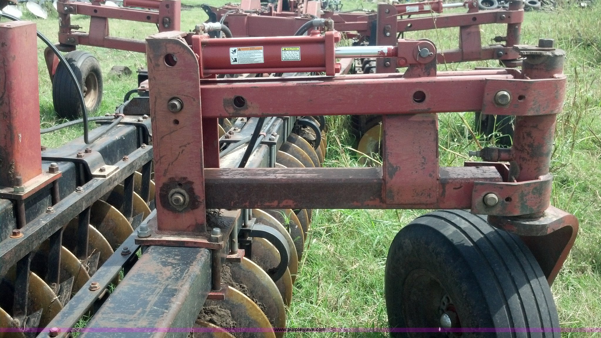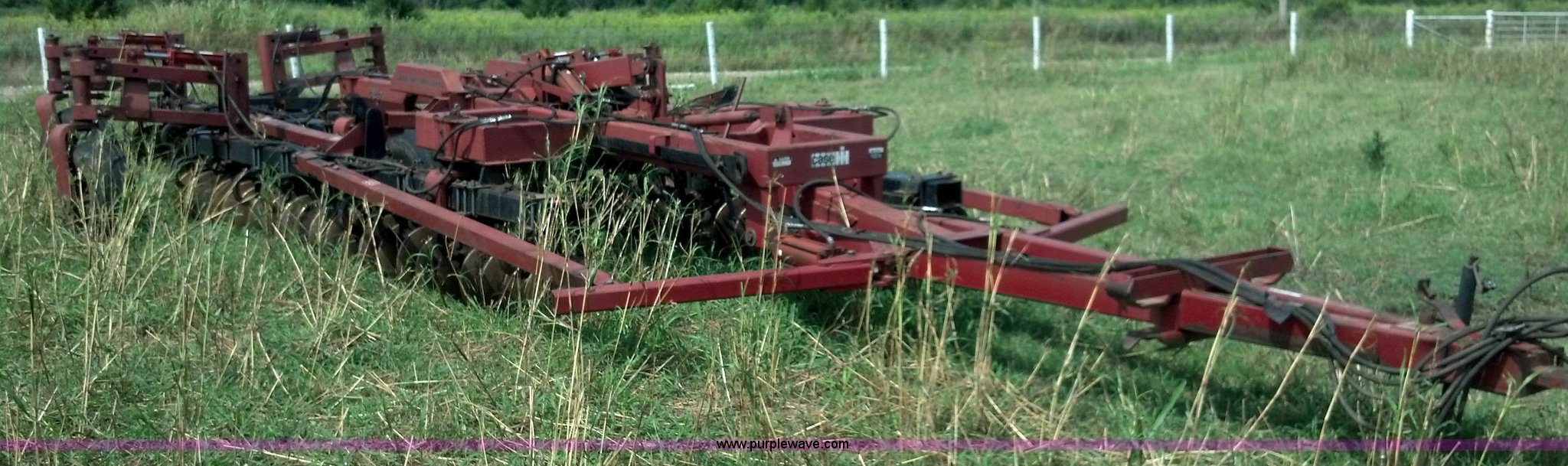 Purple Wave is selling a used Disk in Oklahoma. This item is a Case IH 696 folding double off-set disk with the following: 35'W, Hydraulic fold, Hydraulic raise and lower, Adjustable pitch on gangs, Blade cleaners, 20" front blades, 23" rear blades, 12.5L-15 tires, Serial CKB0001535
