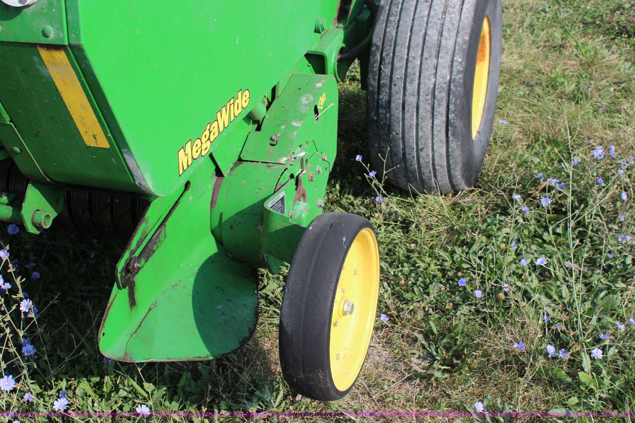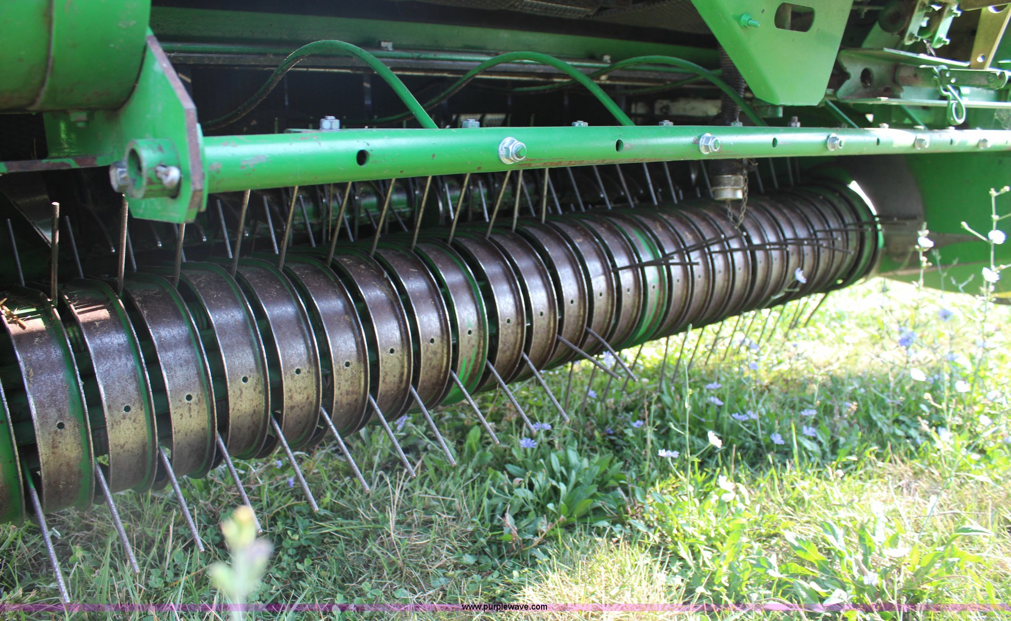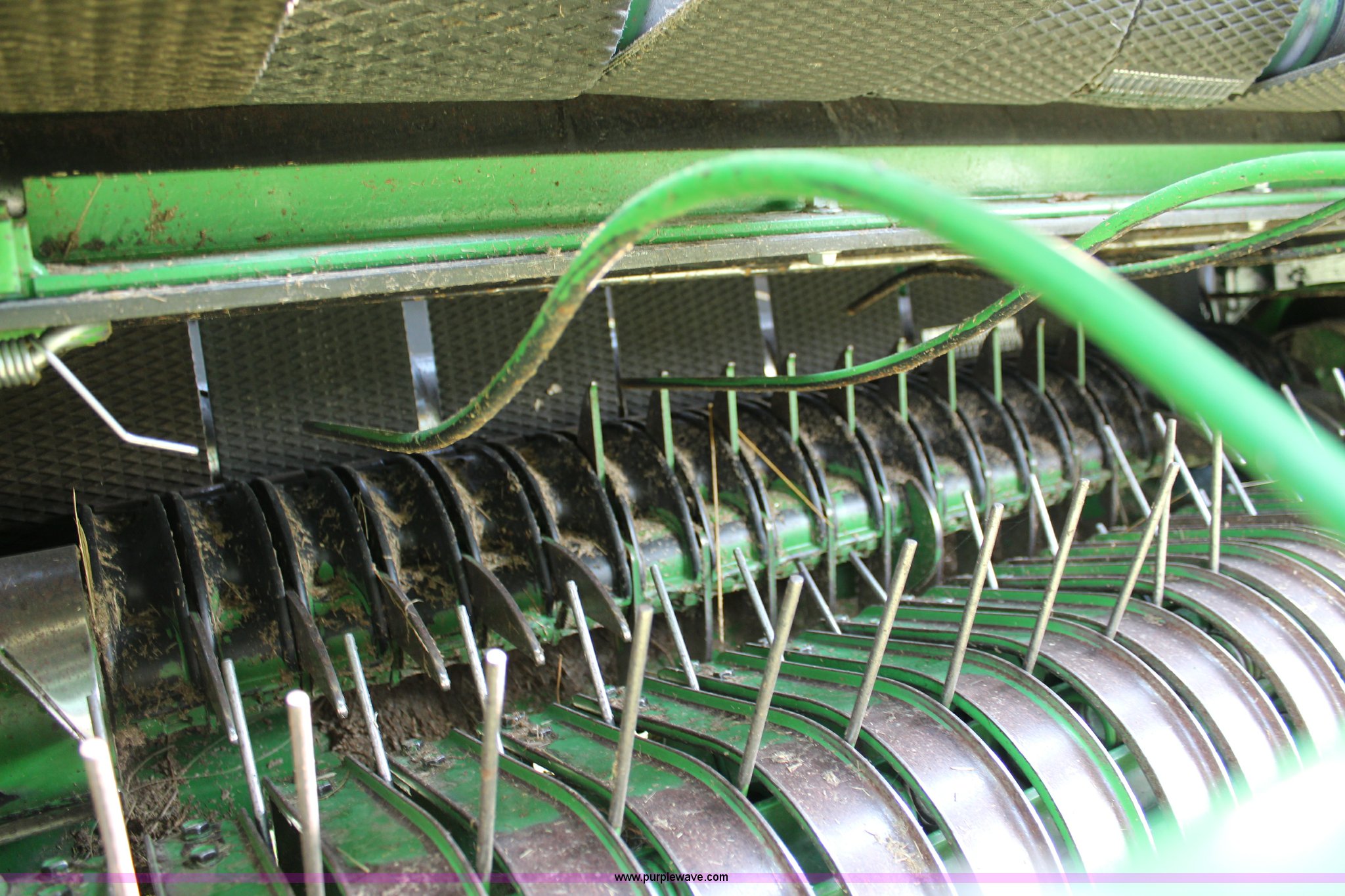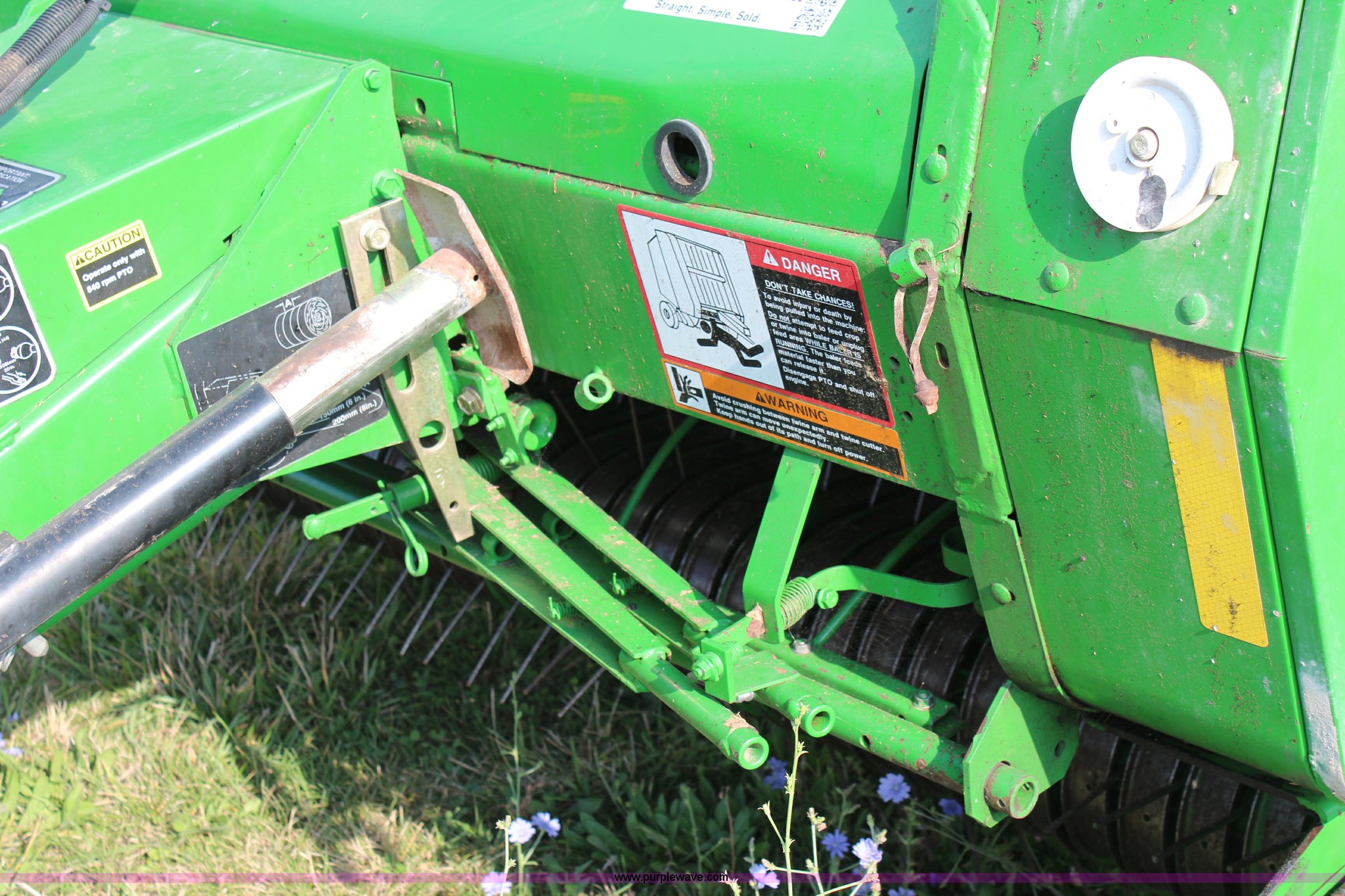 Purple Wave is selling a used Round Baler in Kansas. This item is a 2003 John Deere 567 round baler with the following: 10,600 bales, 5' x 6' bale capacity, Mega wide pickup, Net wrap and twine tie, 540 PTO, Bale kicker, Monitor, Gauge wheels, 31x13.50-15 tires, Chains, sprockets, and gear box seals replaced in December 2013, Serial E00567X198221