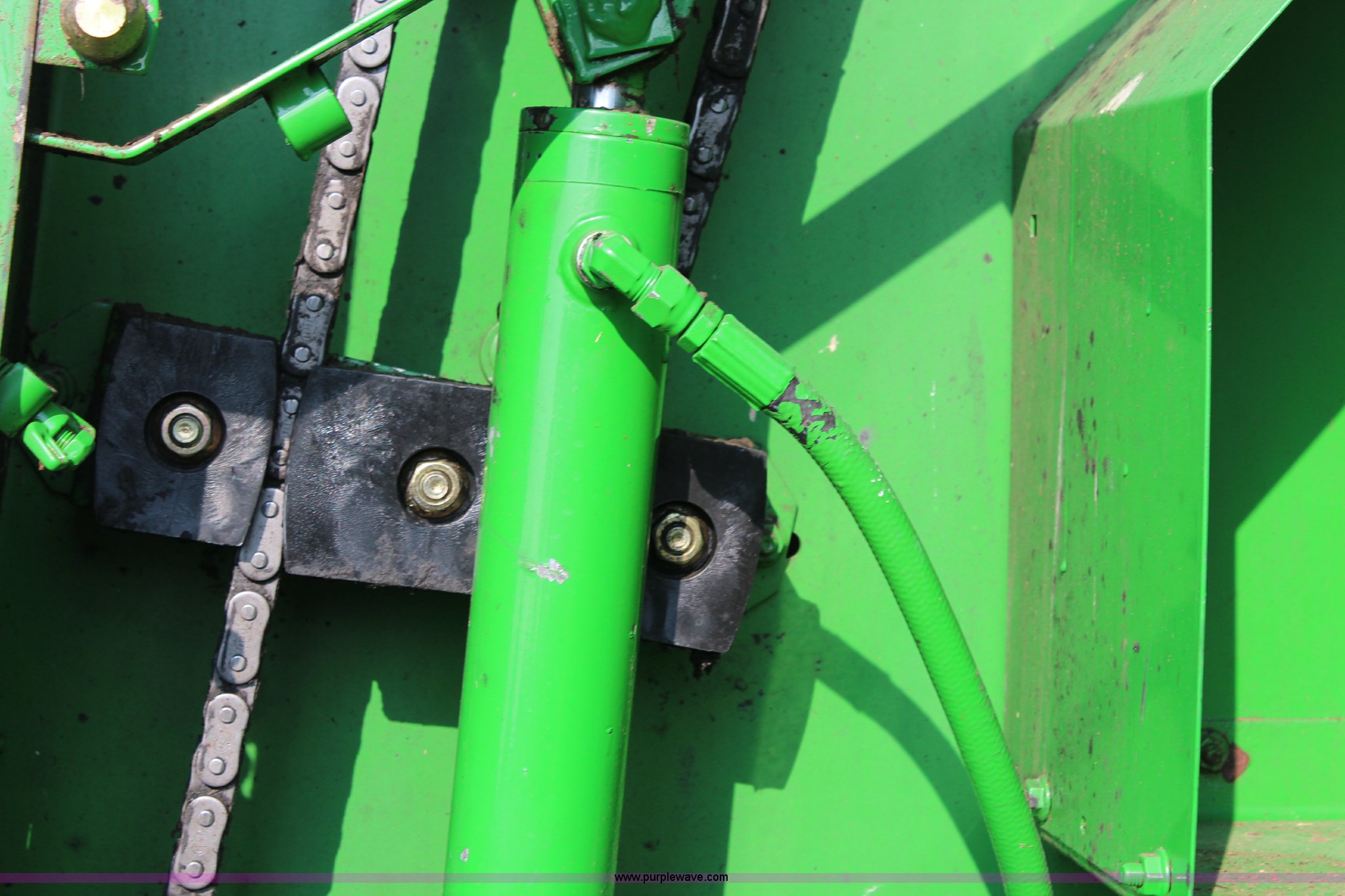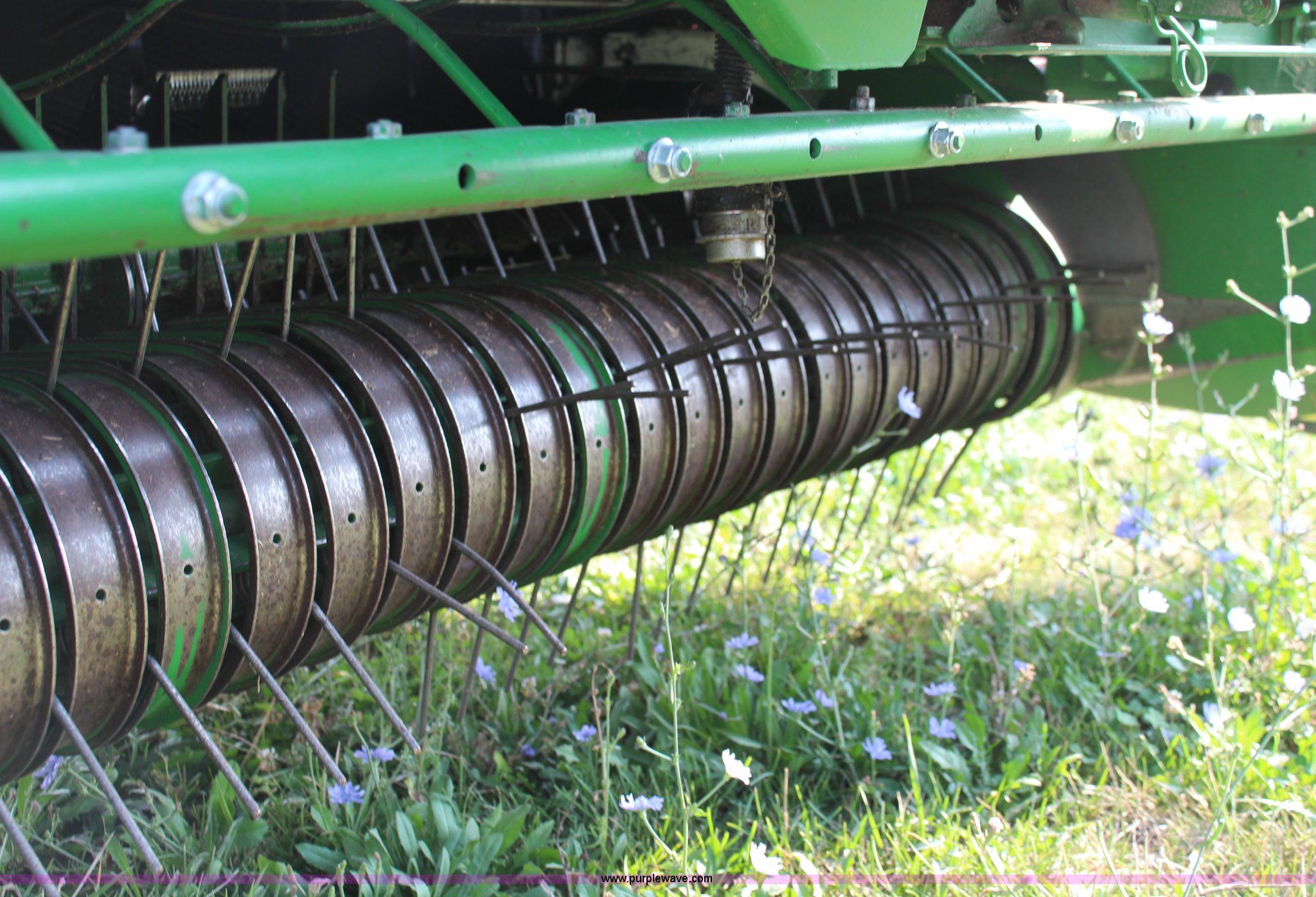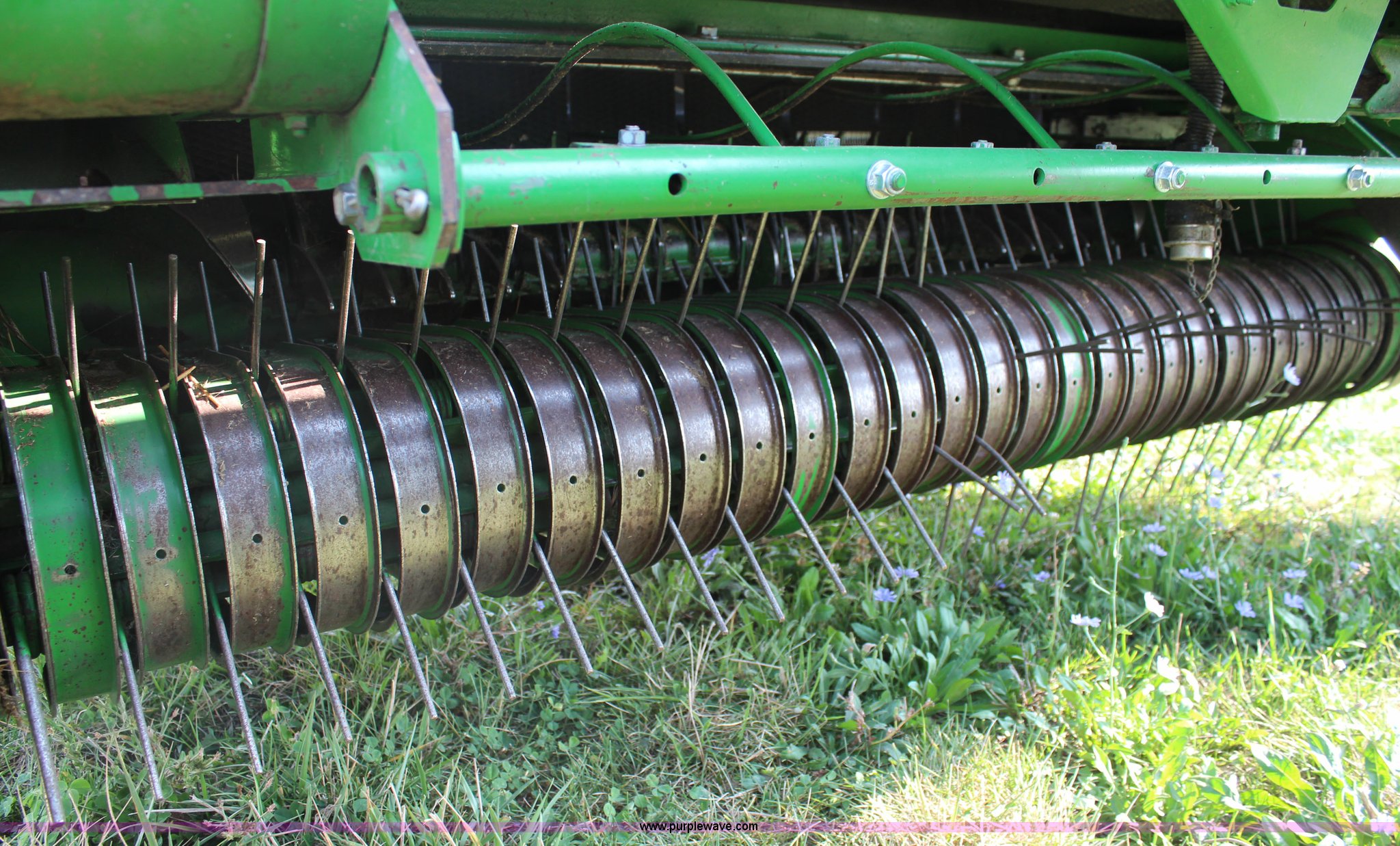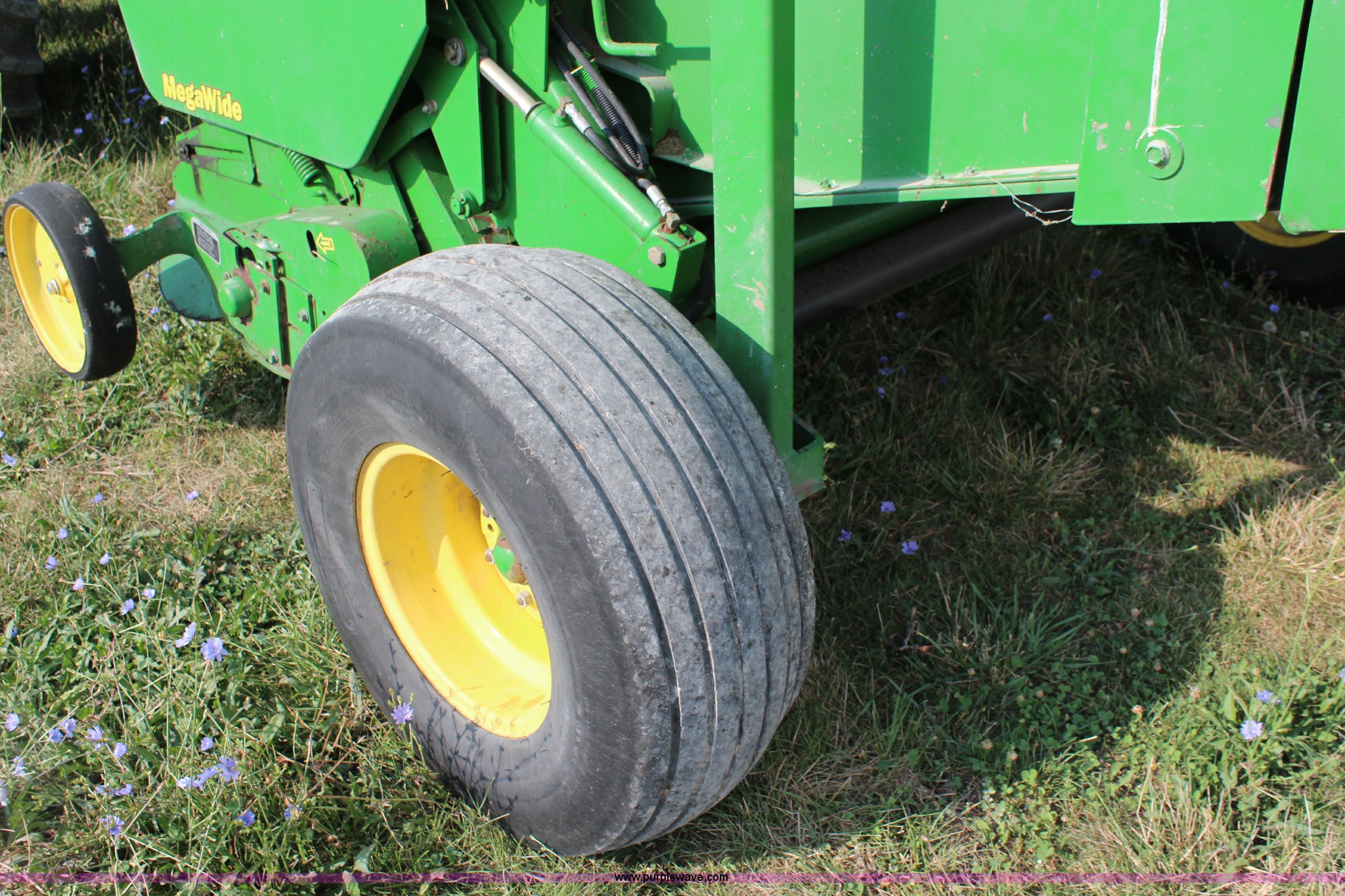 Purple Wave is selling a used Round Baler in Kansas. This item is a 2003 John Deere 567 round baler with the following: 10,600 bales, 5' x 6' bale capacity, Mega wide pickup, Net wrap and twine tie, 540 PTO, Bale kicker, Monitor, Gauge wheels, 31x13.50-15 tires, Chains, sprockets, and gear box seals replaced in December 2013, Serial E00567X198221
