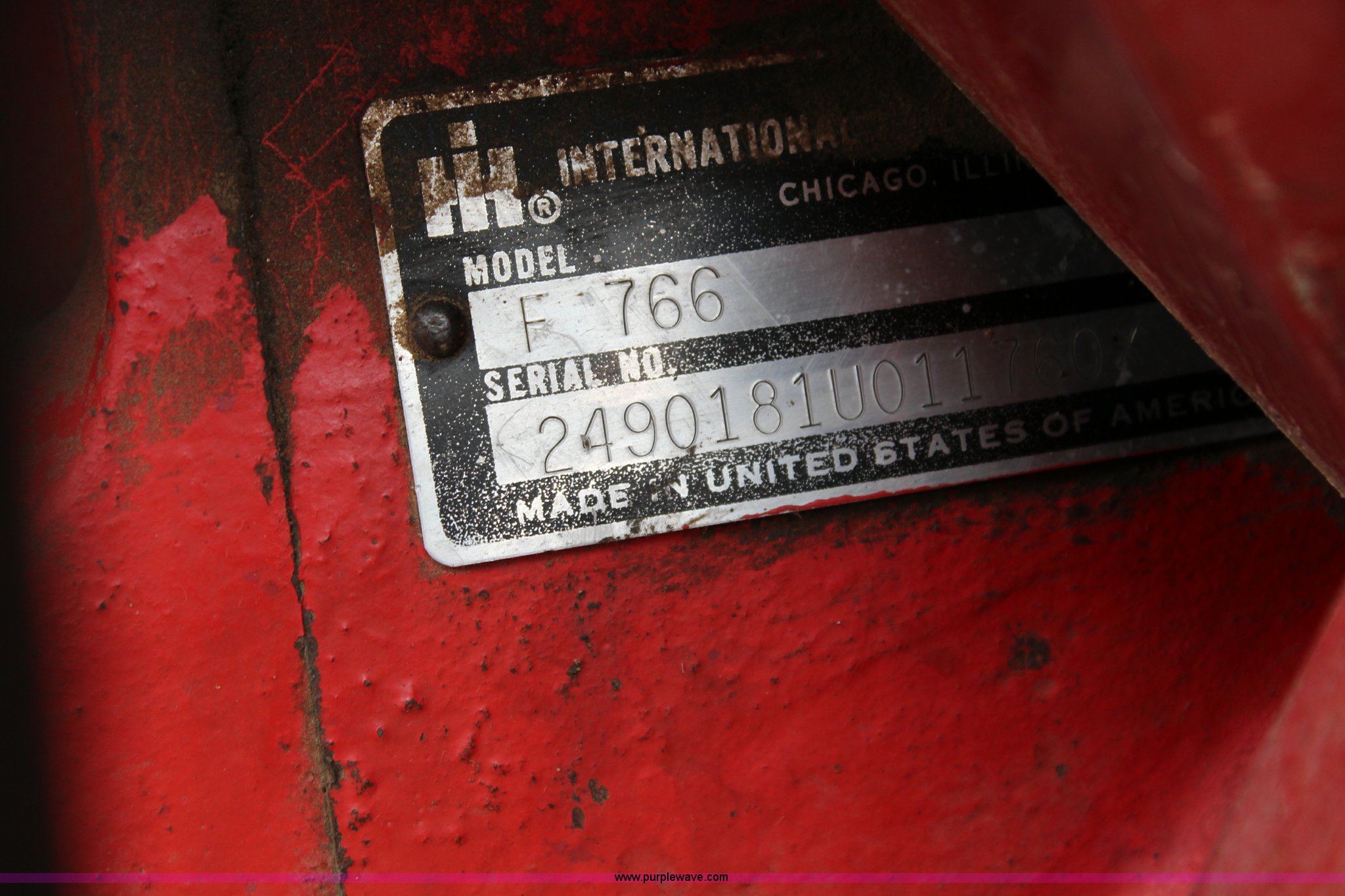 Purple Wave is selling a used Tractor in Kansas. This item is a 1973 International 766 tractor with the following: 5,822 hours on meter, International six cylinder diesel engine, 85 HP, Torque Amplifier transmission, 16F-8R gears, AC and heat, AM, Leon 707 loader, 7'W bucket, Serial 6951-003, Three point, Draw bar, 540/1000 PTO, (2) rear hydraulic remotes, 37 gallon fuel tank, 11L-15 front tires, 18.4R38 rear tires, New cab kit included, Serial 2490181U011760