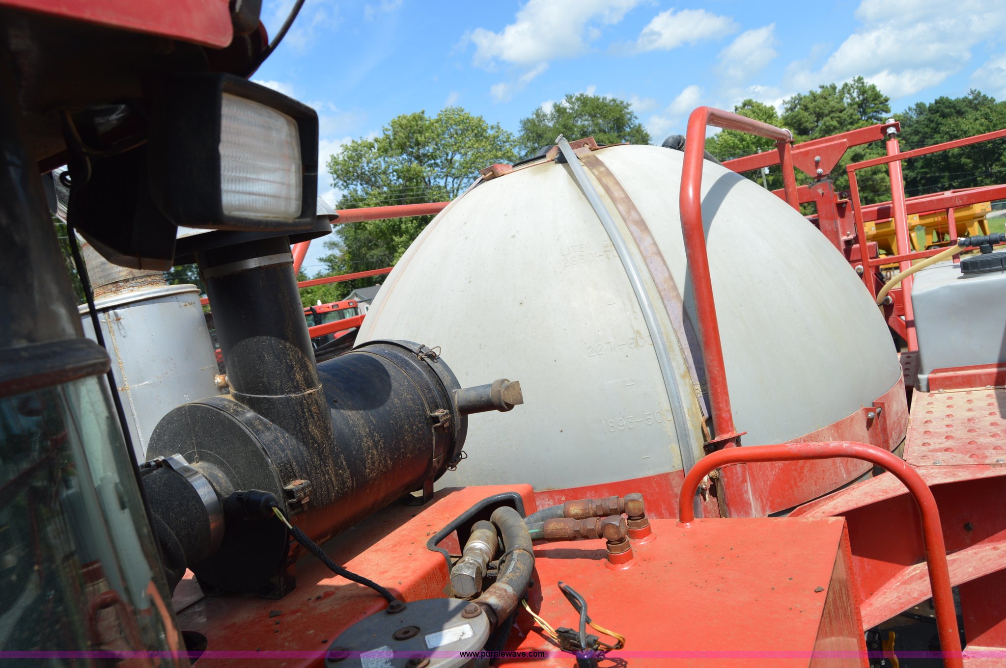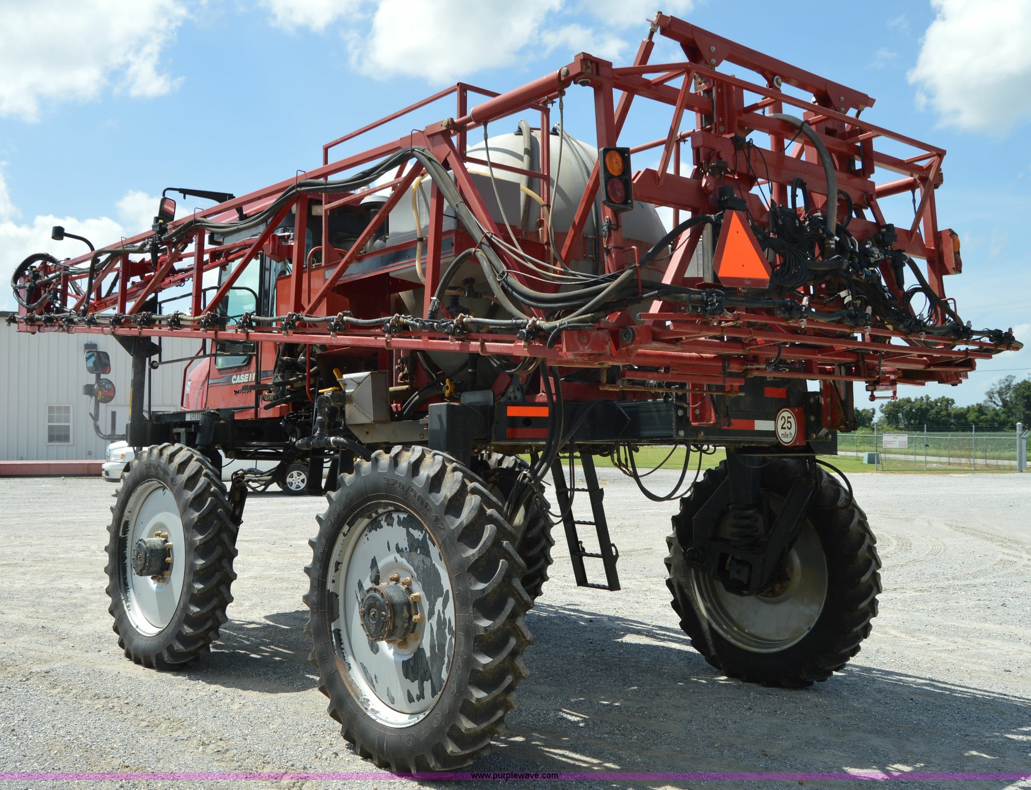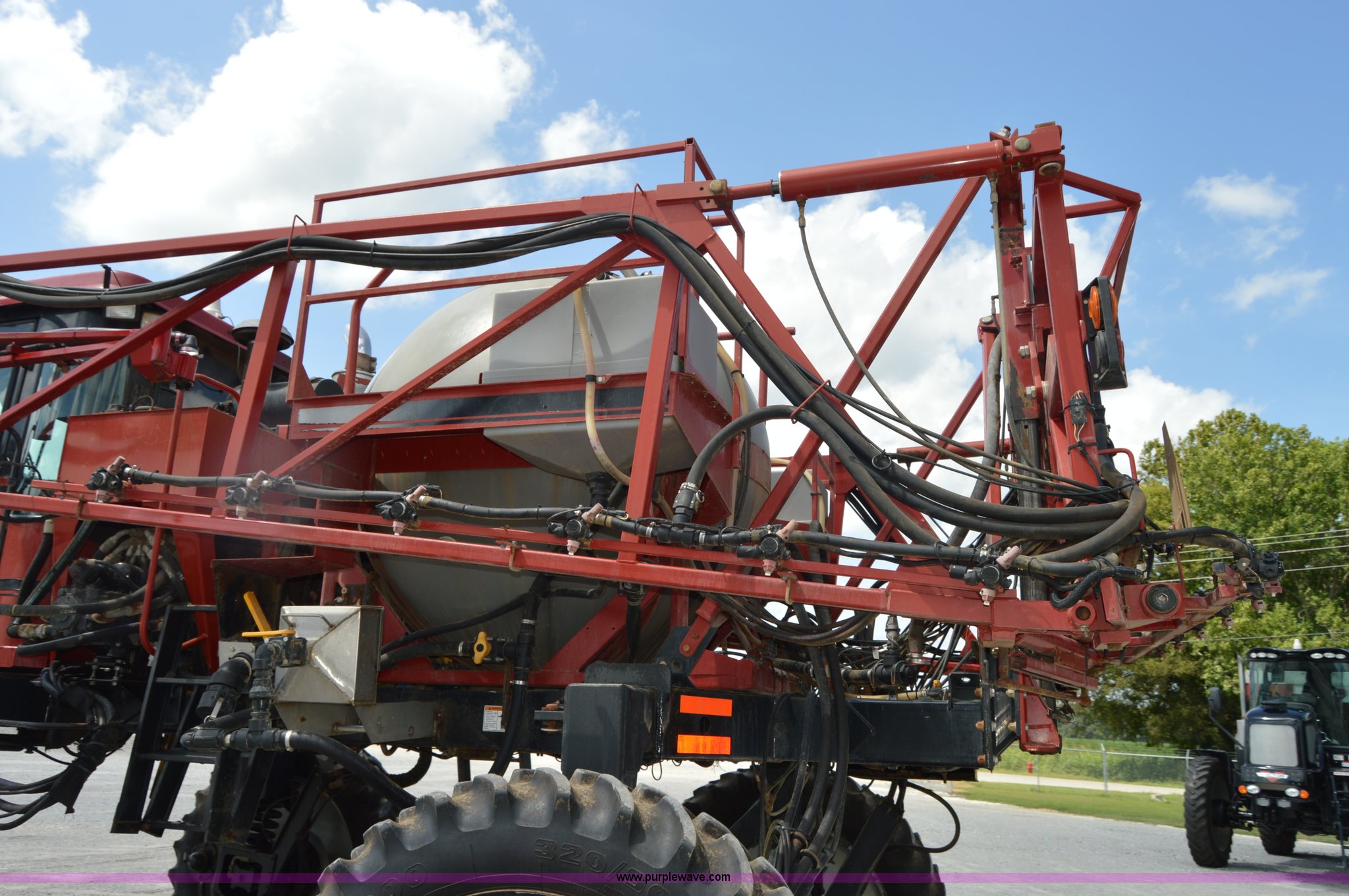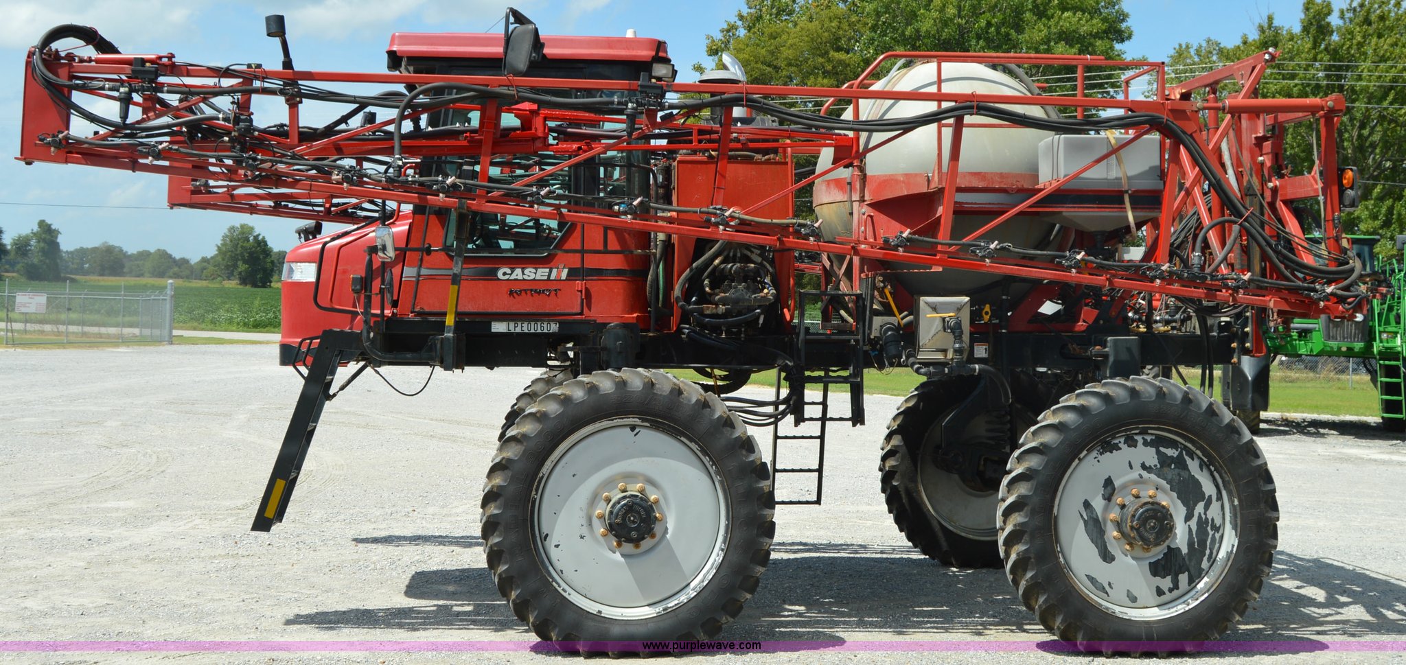 Purple Wave is selling a used Applicator Self Propelled in Tennessee. This item is a 2009 Case IH SPX3185 Patriot self-propelled sprayer with the following: 1,268 hours on meter, Cummins 5.9L six cylinder diesel engine, Hydrostatic transmission, Four wheel drive, 700 gallon tank, 90'W boom, 20" nozzle spacing, Norad auto boom height system, Aim Command spray system, Hydraulic height adjust, Raven Accuboom swath control, Raven Smarttrack auto steer, Raven Viper Pro controller, Foam marker, AC and heat, AM/FM/CD, Air suspension seat, Raven GPS, Raven light bar, Hydraulic axle width adjust, 320/90R42 tires, Serial Y9TC26088, Unit# 17726