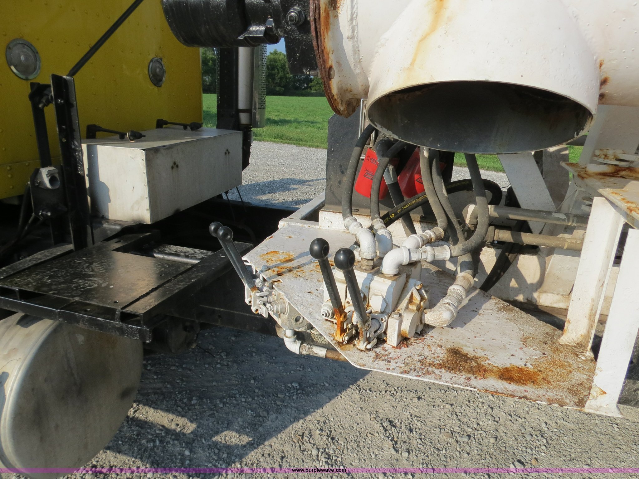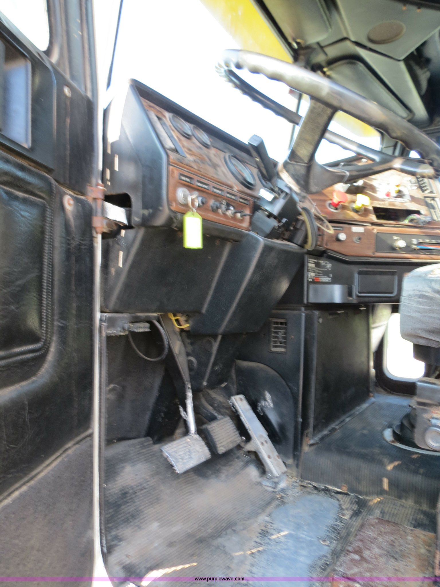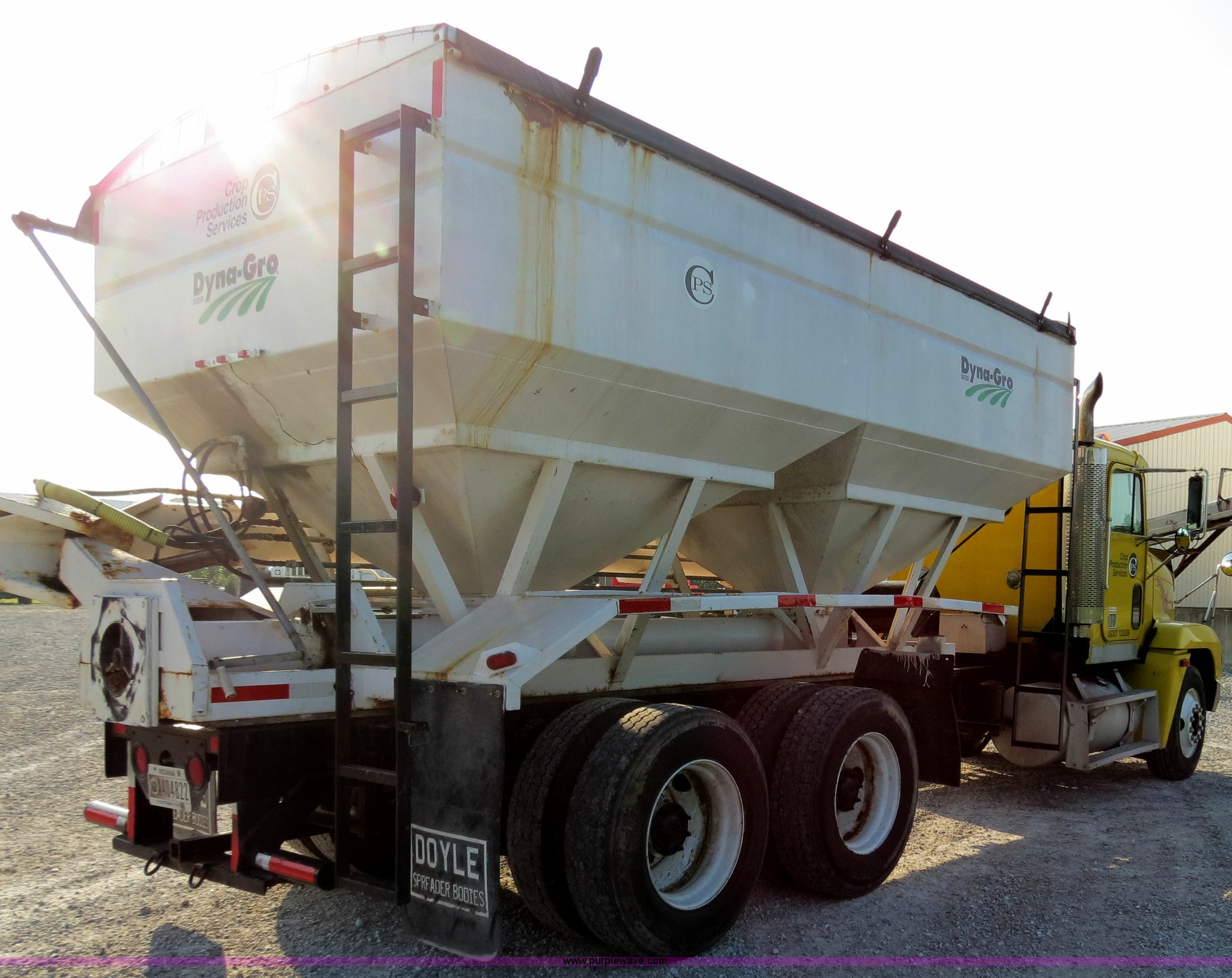 Purple Wave is selling a used Fertilizer or Feed Delivery Truck in Indiana. This item is a 1993 Freightliner FLD tender truck with the following: 813,741 miles on odometer, Detroit Diesel Series 60 12.7L L6 diesel engine, 450 HP, Eaton Fuller nine speed manual transmission, Heat, Tilt, Cruise, Passenger daylight door, Air suspension seat, 16' tender bed, Dual hopper, (4) compartments, Rear ladder, (4) side hydraulic controls, 10" auger, Rollover tarp, Hydraulic swing auger, Visor, Dual fuel tanks, Single rear exhaust stack, Receiver hitch, PTO, Wet kit, Air suspension, Air brakes, 275/80R22.5 tires, GVWR 52,000 lbs, FAWR 12,000 lbs, IAWR 20,000 lbs, RAWR 20,000 lbs
