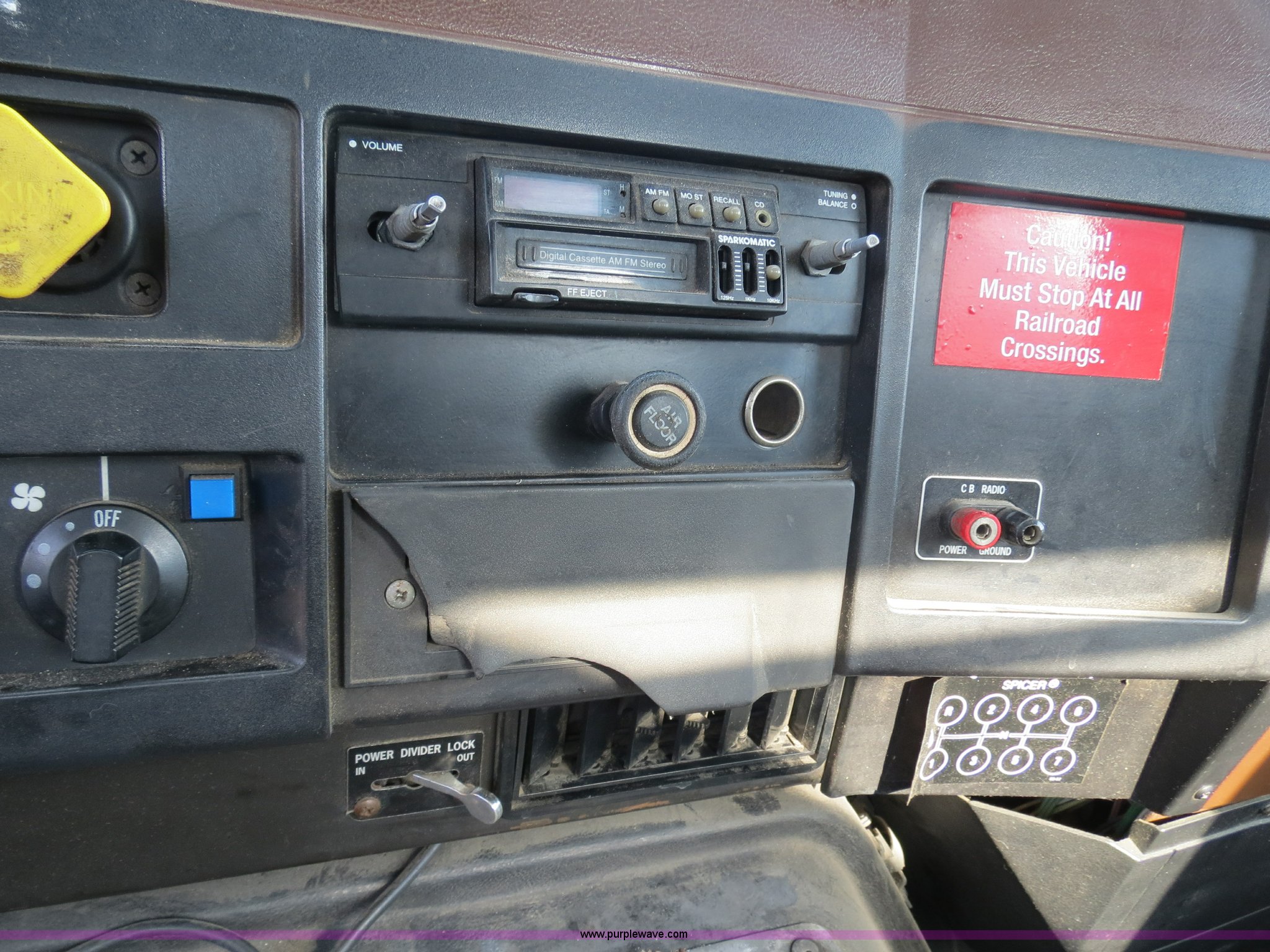 Purple Wave is selling a used Truck Chassis in Indiana. This item is a 1995 International 8200 semi truck with the following: 267,971 miles on odometer, Caterpillar 3176 10.3L L6 diesel engine, 325 HP, Spicer seven speed manual transmission, Transmission issues, will not move, AC and heat, Cruise, AM/FM/cassette, Air suspension seat, Dual 50 gallon fuel tanks, Single rear exhaust stack, Spring suspension, Air brakes, 160" wheelbase, 11R22.5 tires, GVWR 48,000 lbs, FAWR 12,000 lbs, IAWR 18,000 lbs, RAWR 18,000 lbs, Tank not included, will be removed prior to auction, Unit# 45466