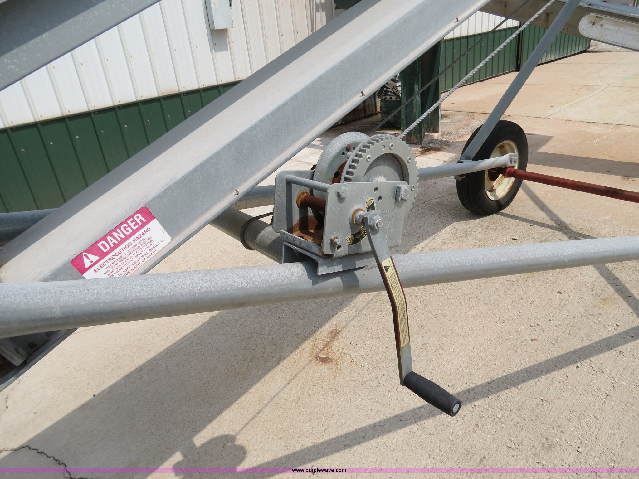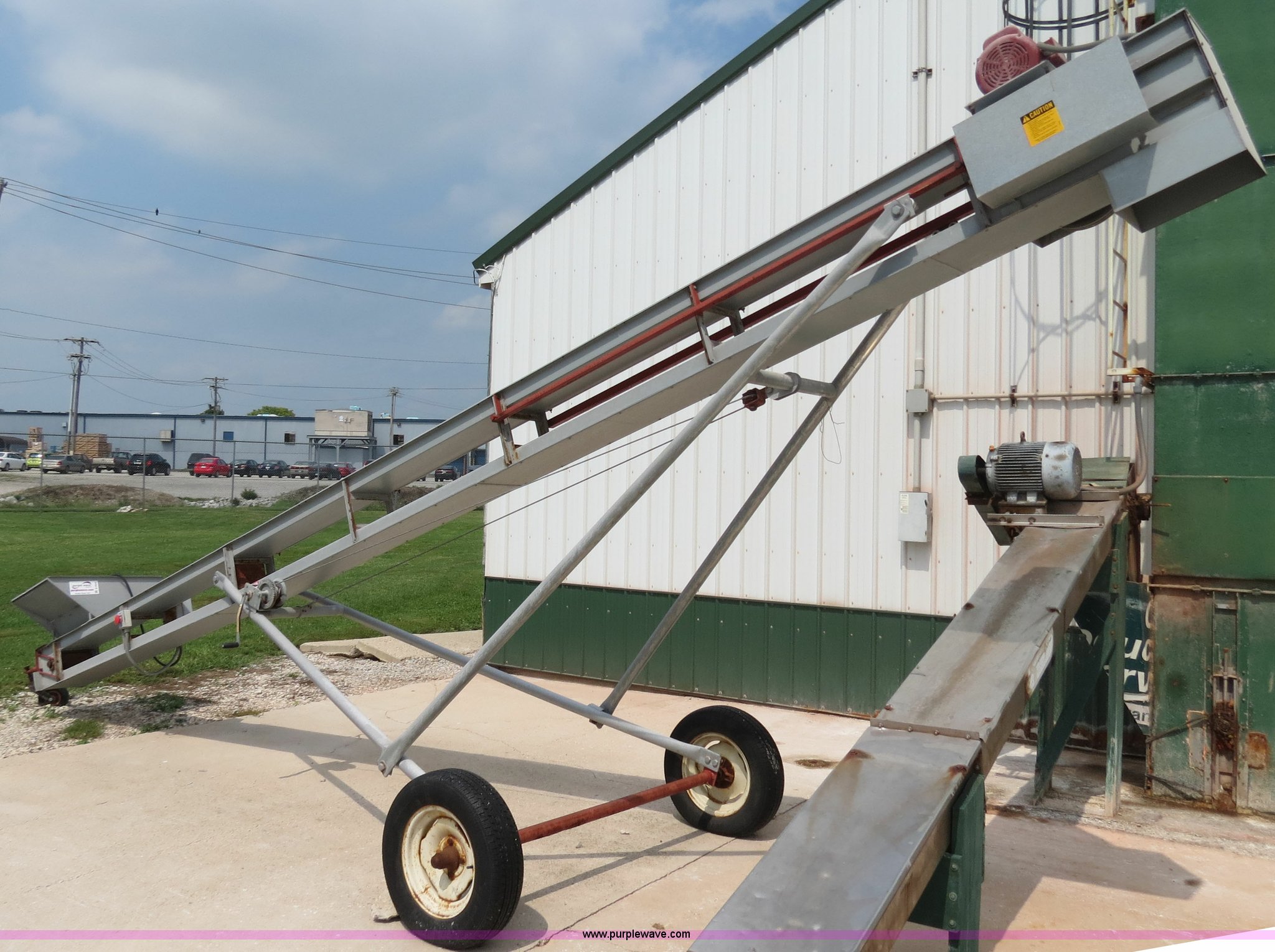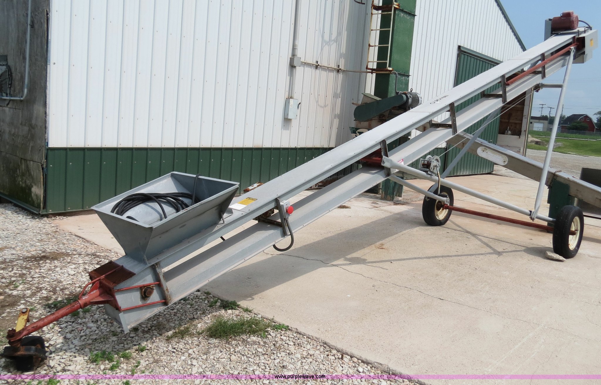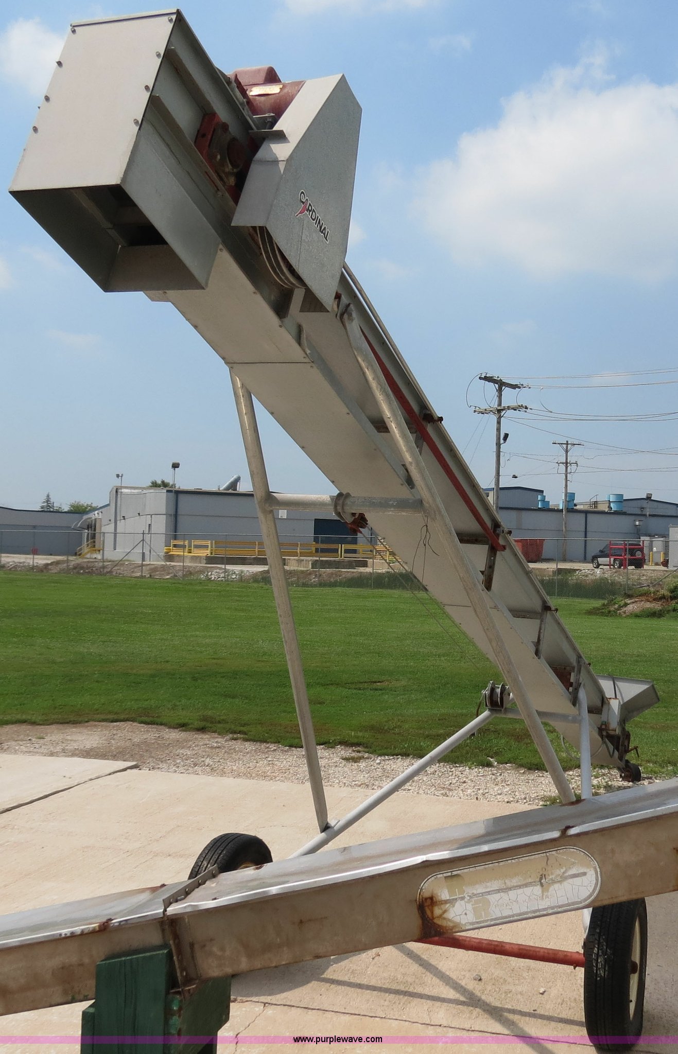 Purple Wave is selling a used Auger or Conveyor in Indiana. This item is a Cardinal BC10 24' conveyor with the following: Electric motor, 10" belt, Manual winch, Serial 408