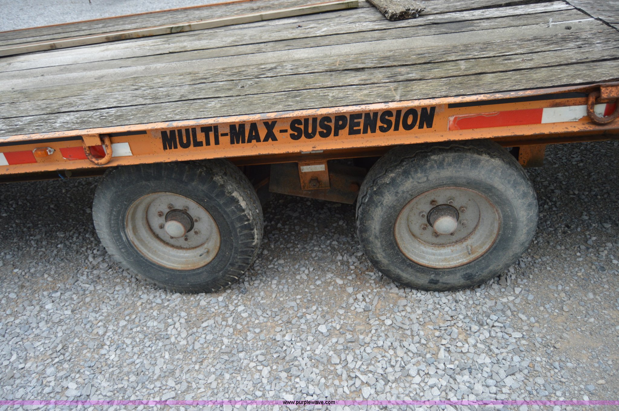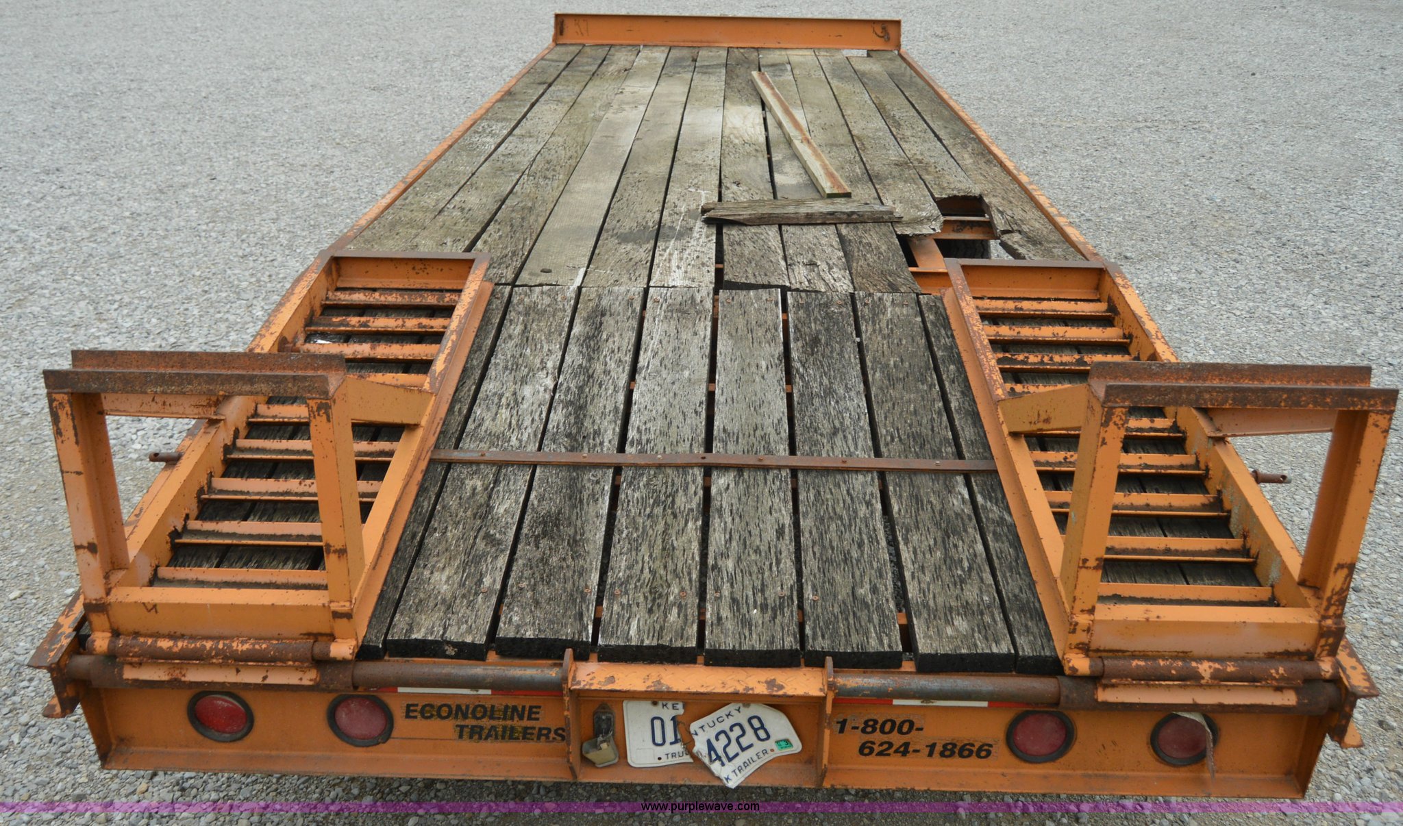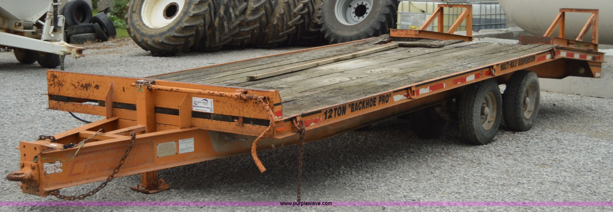 Purple Wave is selling a used Equip. Trailer in Kentucky. This item is a 1998 Econoline MP423DE equipment trailer with the following: 23'L x 8'W deck, 5'L dovetail, 5'L x 19"W ramps, Pintle hitch, Manual jack, Safety chains, Wood floor, Cosmetic damage, Side D-ring tie downs, Multi-Max suspension, 8-14.5 tires, GVWR 24,000 lbs, Unit# 54615