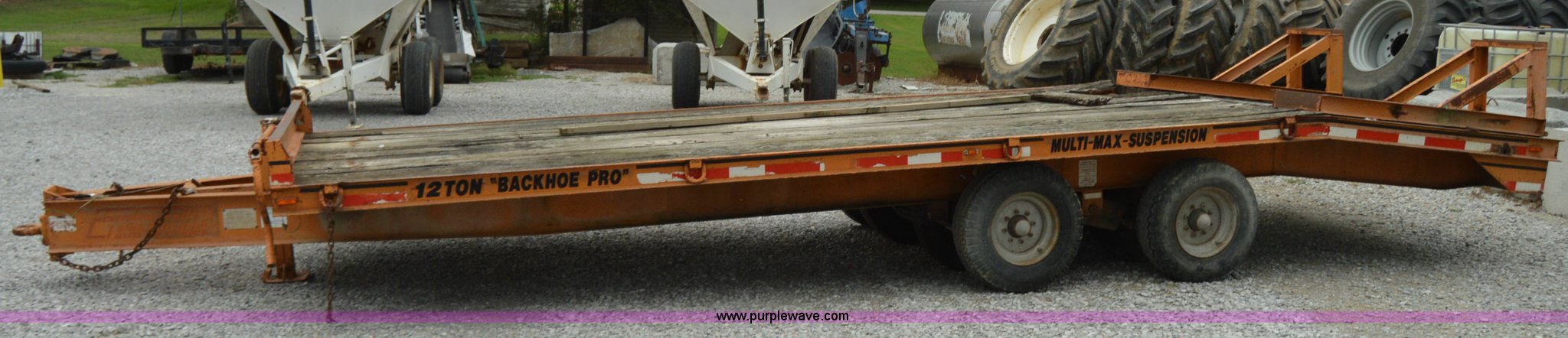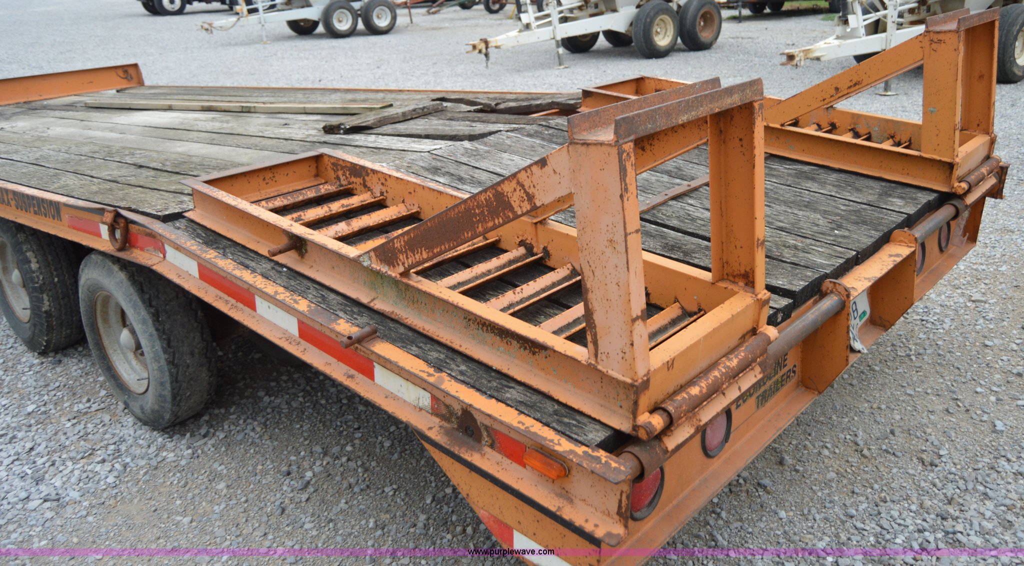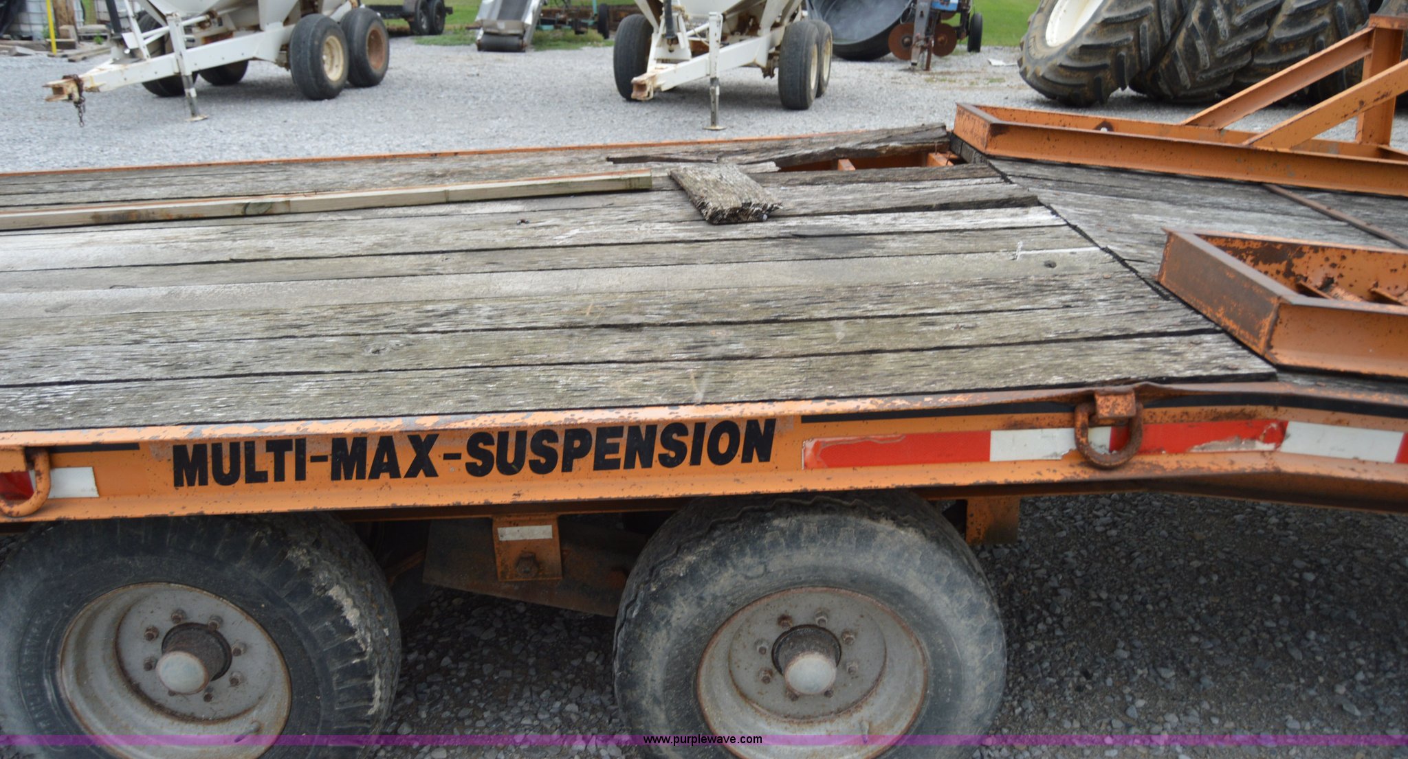 Purple Wave is selling a used Equip. Trailer in Kentucky. This item is a 1998 Econoline MP423DE equipment trailer with the following: 23'L x 8'W deck, 5'L dovetail, 5'L x 19"W ramps, Pintle hitch, Manual jack, Safety chains, Wood floor, Cosmetic damage, Side D-ring tie downs, Multi-Max suspension, 8-14.5 tires, GVWR 24,000 lbs, Unit# 54615