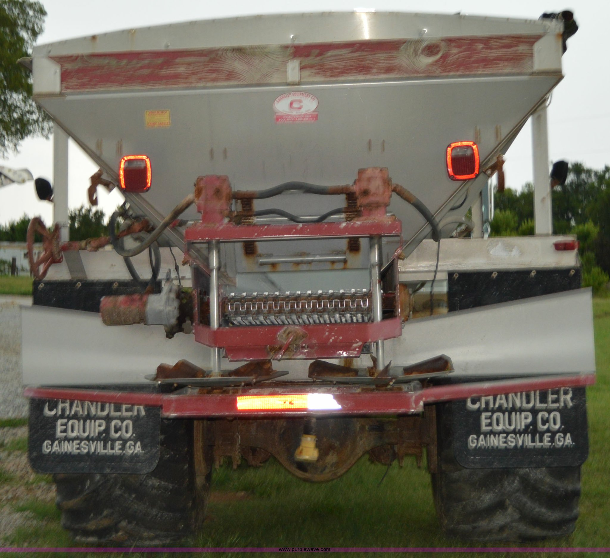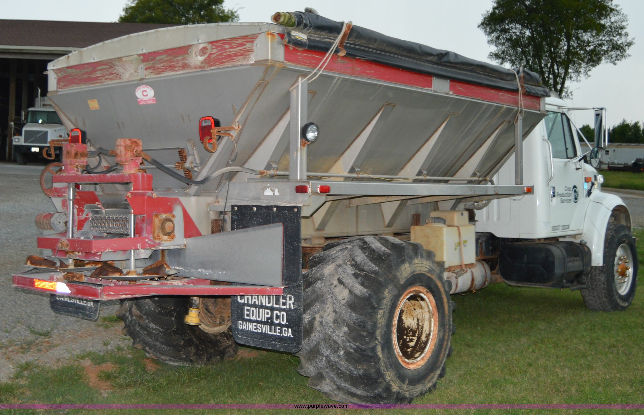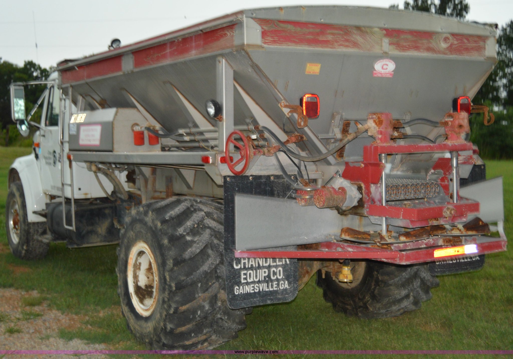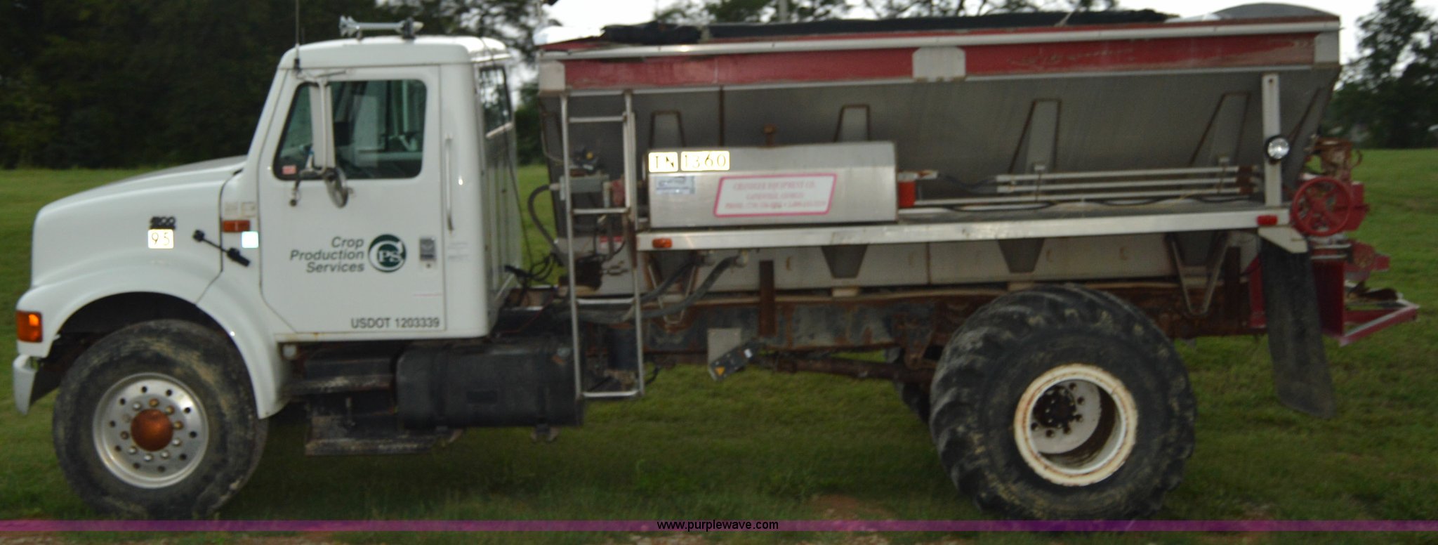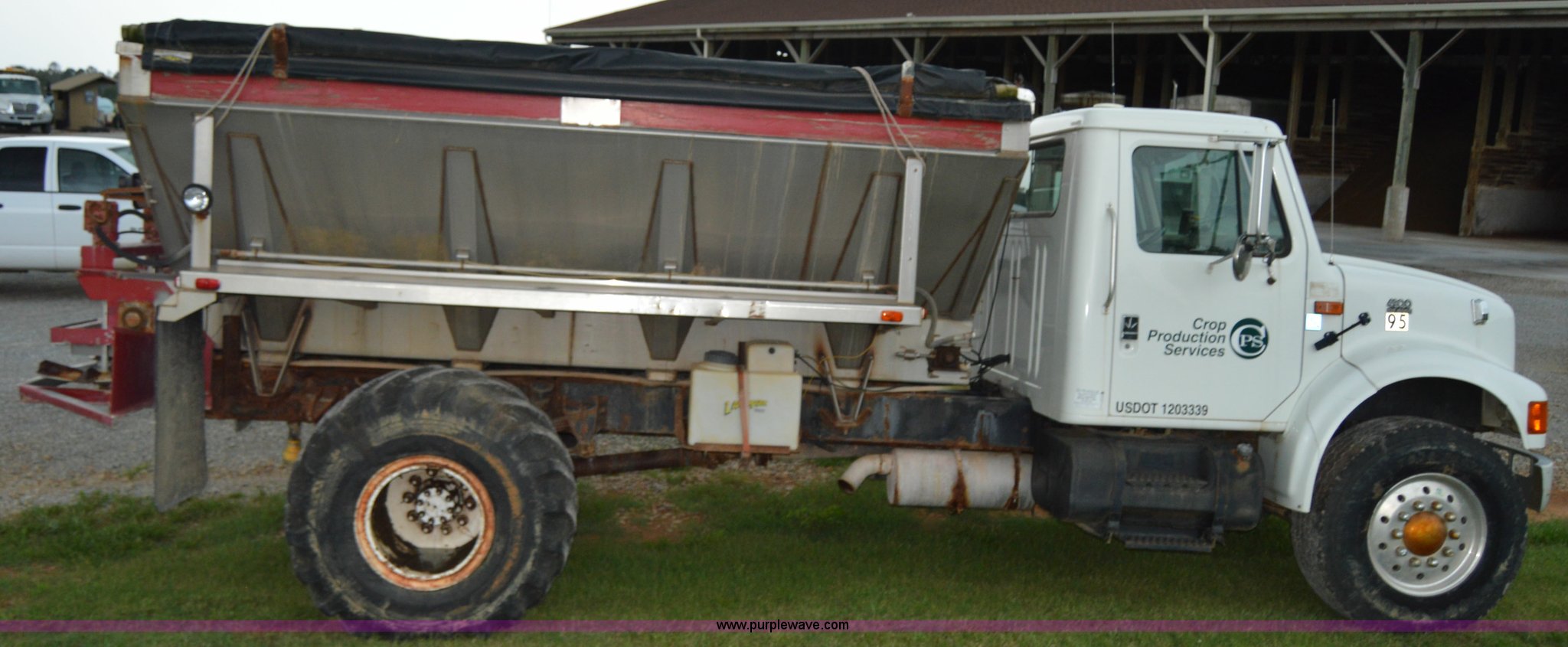 Purple Wave is selling a used Applicator Truck in Tennessee. This item is a 2001 International 4900 fertilizer truck with the following: 194,397 miles on odometer, 9,573 hours on meter, International DT466 7.6L L6 diesel engine, Six speed plus manual transmission, Heat, Cruise, AM/FM/cassette, Air suspension seat, Manual windows and locks, Vinyl interior, TASC-6100 rate controller system, Chandler stainless steel spreader bed, PTO, Dual fuel tanks, 254" wheelbase, 385/65R22.5 front tires, 48x31-20 rear tires, Interior/exterior cosmetic damage, Unit# 40818