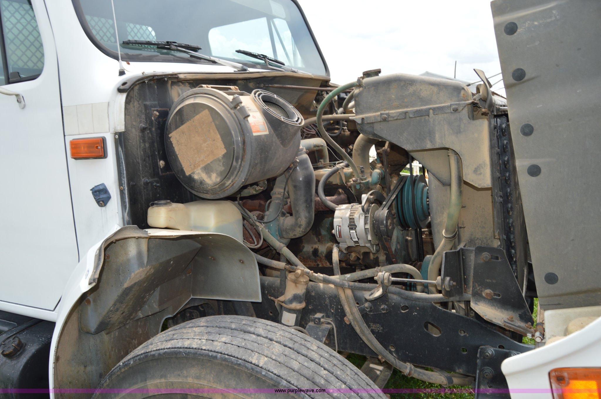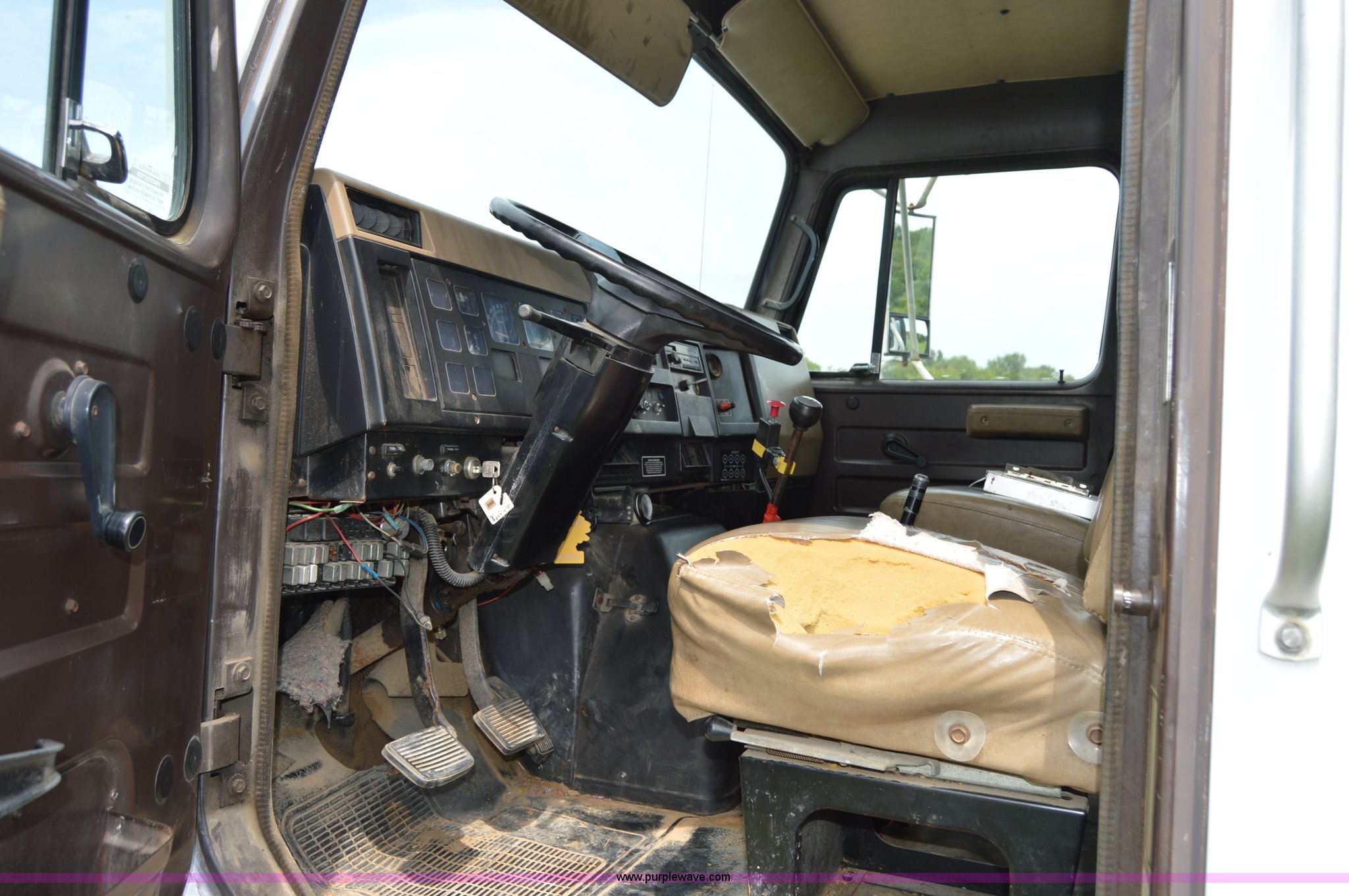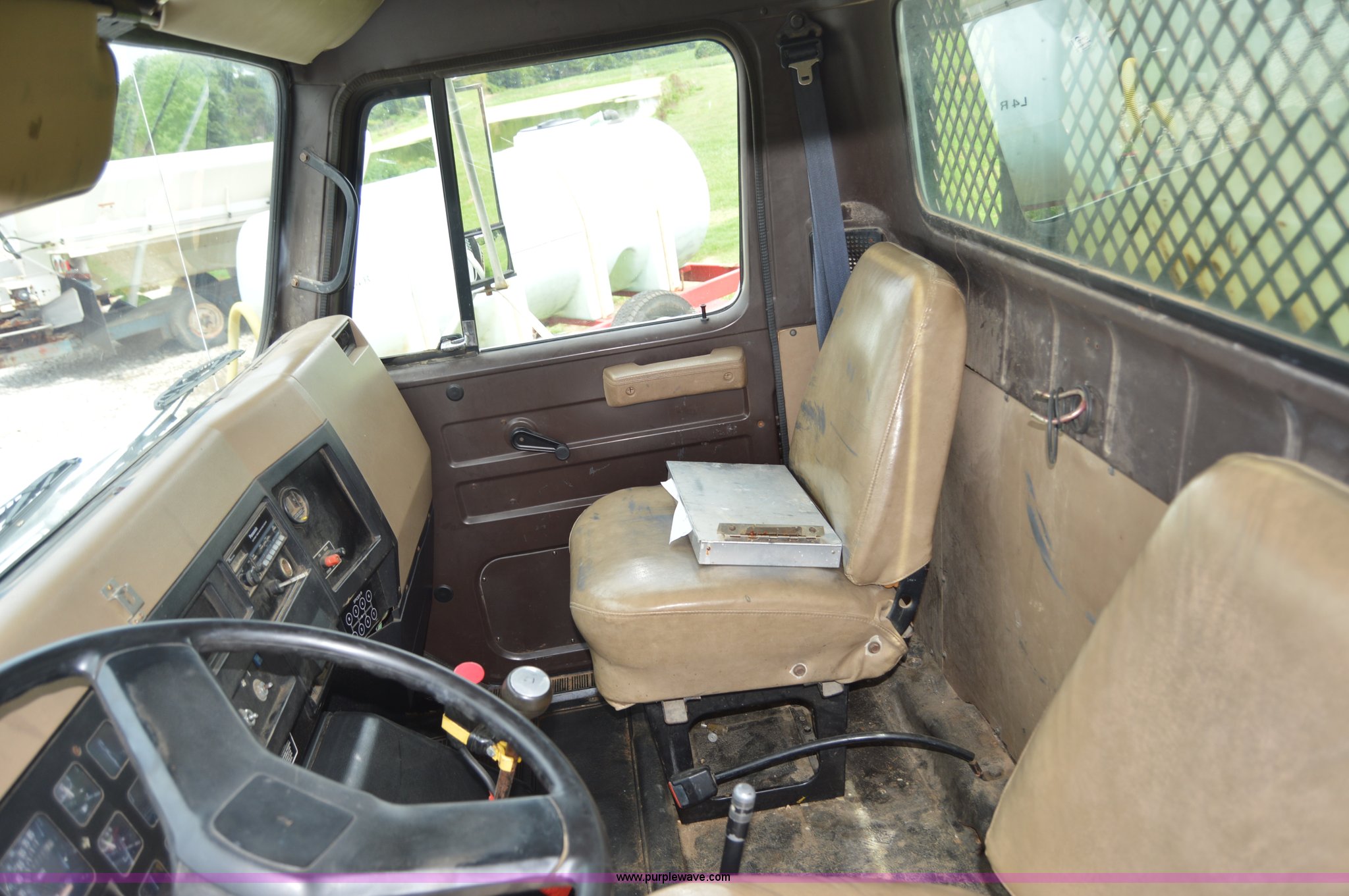 Purple Wave is selling a used Flat Bed Truck in Kentucky. This item is a 1990 International 4900 water truck with the following: 242,725 miles on odometer, 8,538 hours on meter, International DT466 7.6L L6 diesel engine, Seven speed manual transmission, Two speed rear end, Heat, AM/FM, Manual windows and locks, Vinyl interior, 1,000 gallon water tank, 21'L x 8'W flatbed, Dual fuel tanks, 254" wheelbase, 285/75R24.5 tires, Unit# 22022
