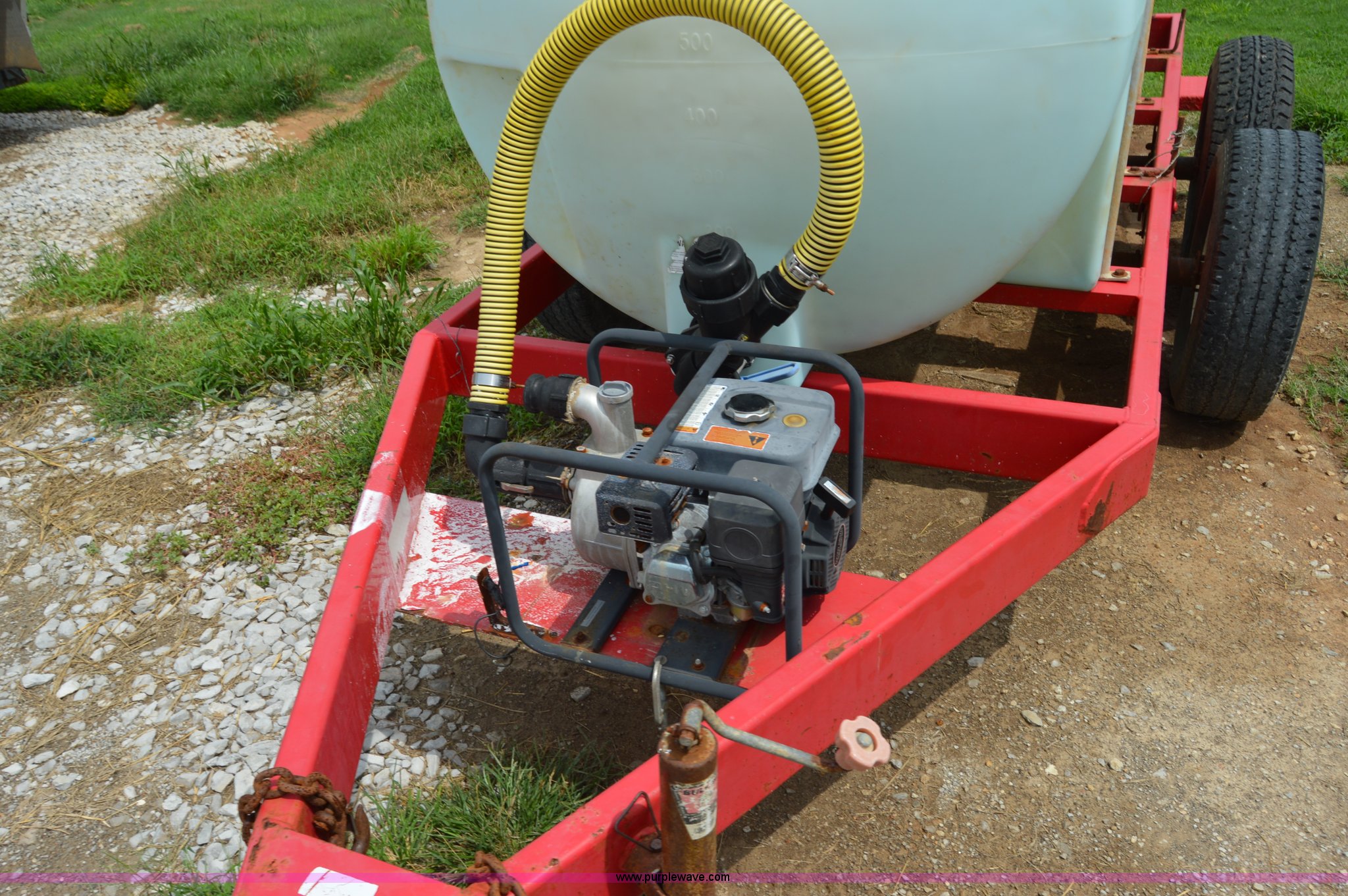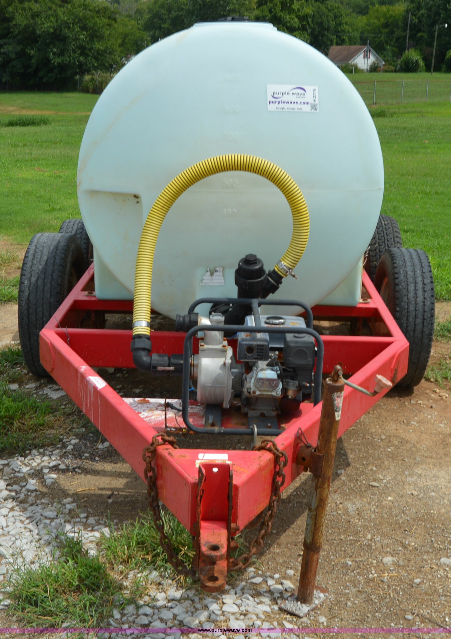Purple Wave is selling a used Tank Trailer in Kentucky. This item is a B-B 1,000 gallon liquid nurse tank trailer with the following: Single cylinder gas engine, Pin hitch, Manual jack, Shut-off valves, 245/75R16 tires