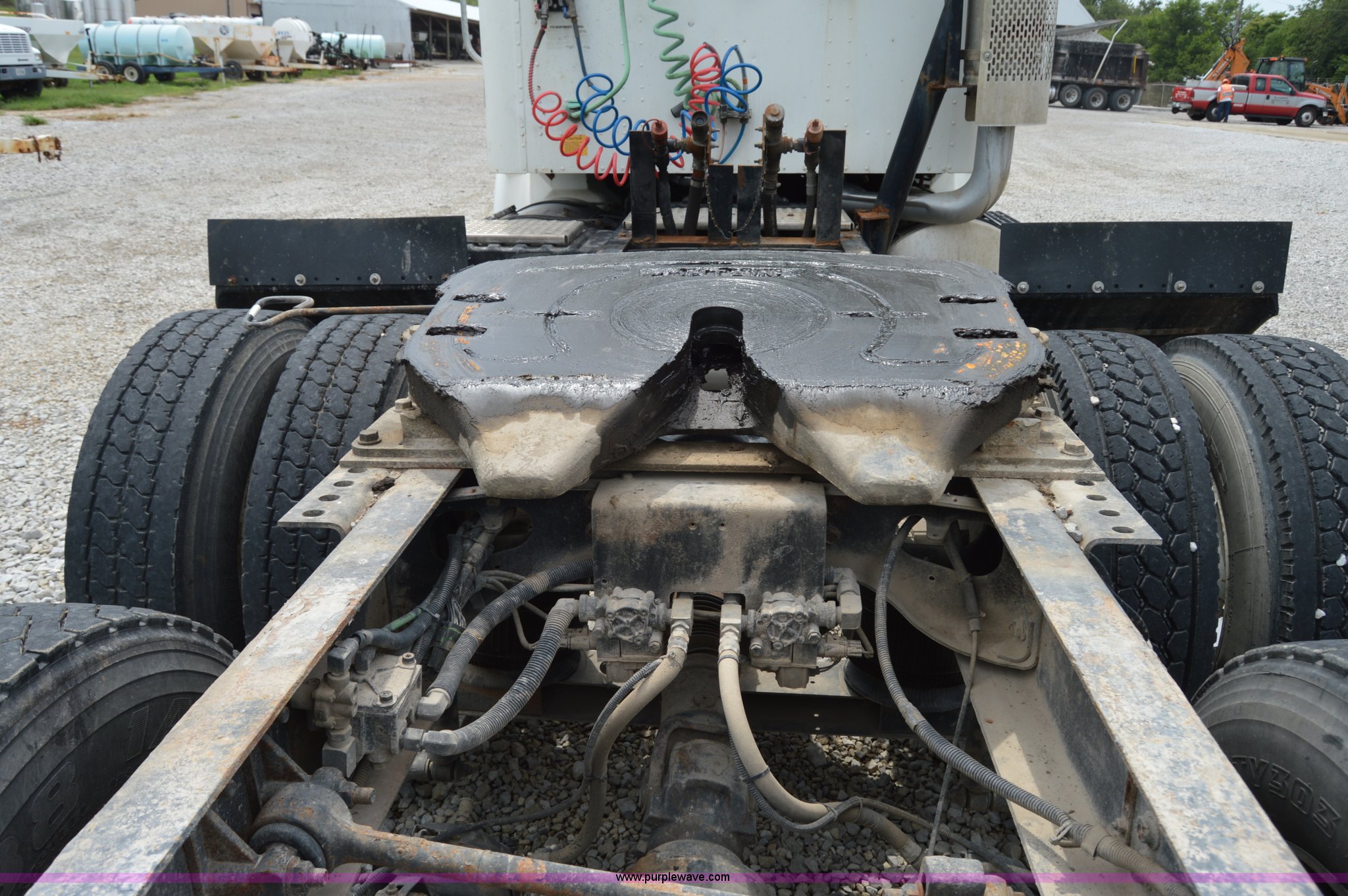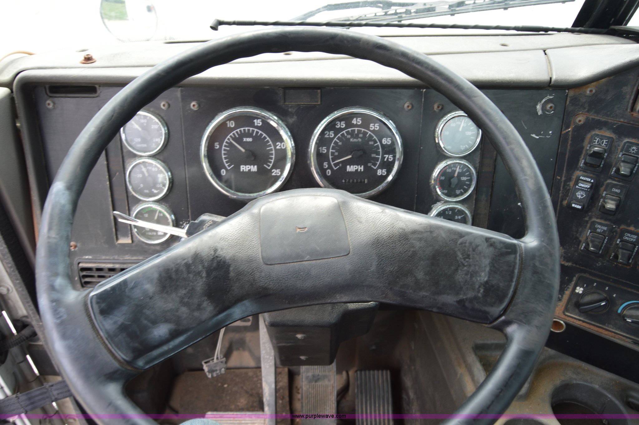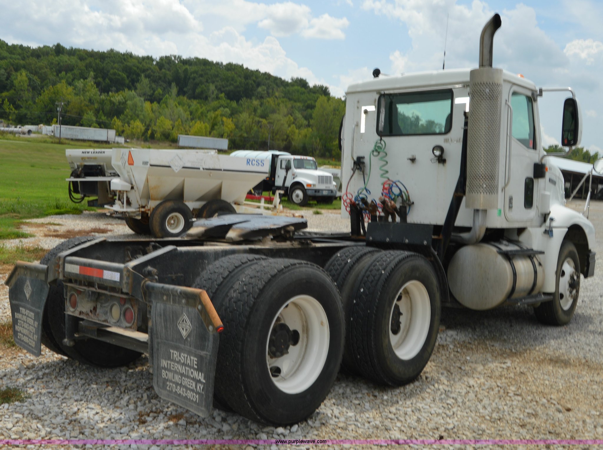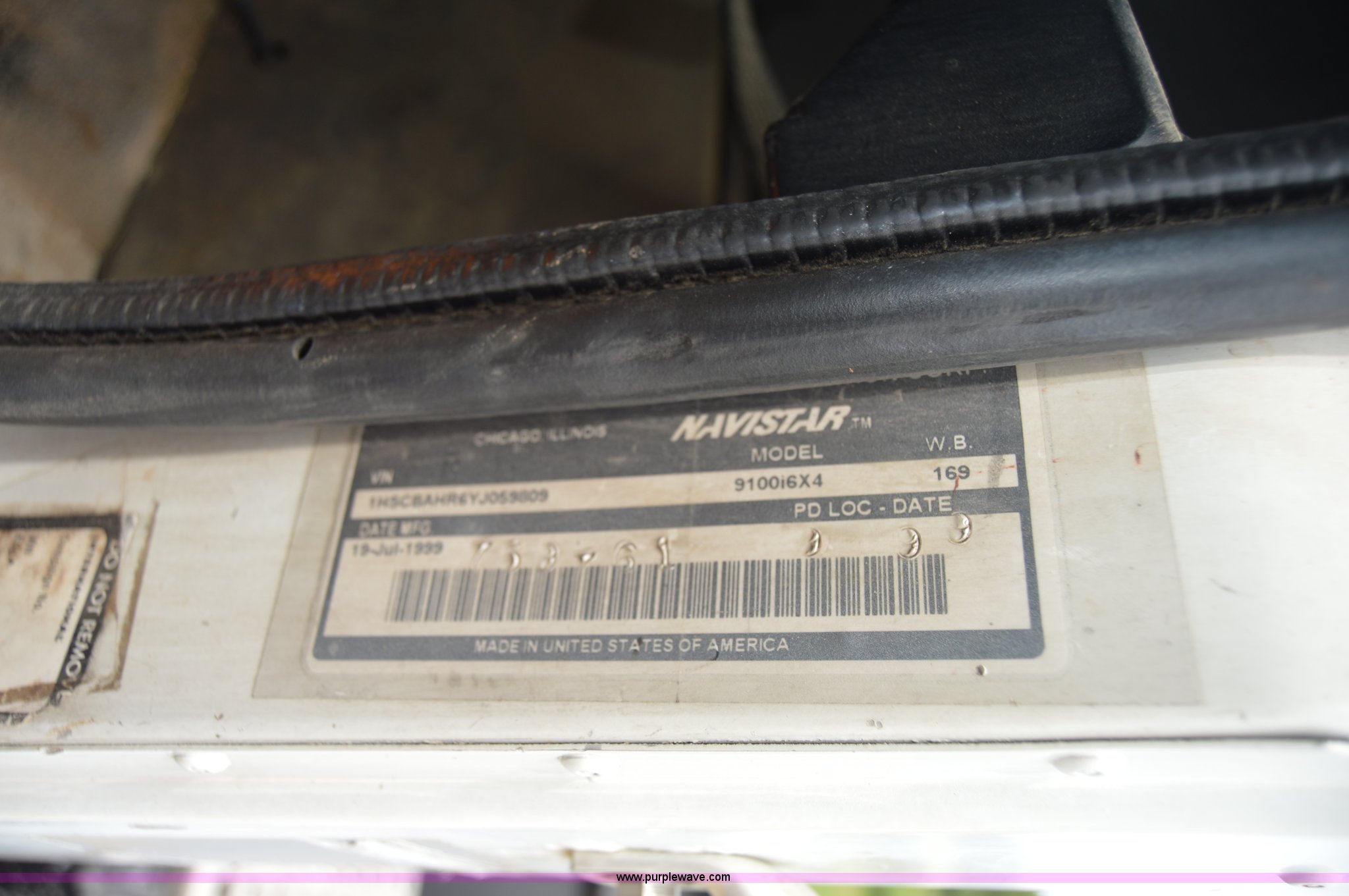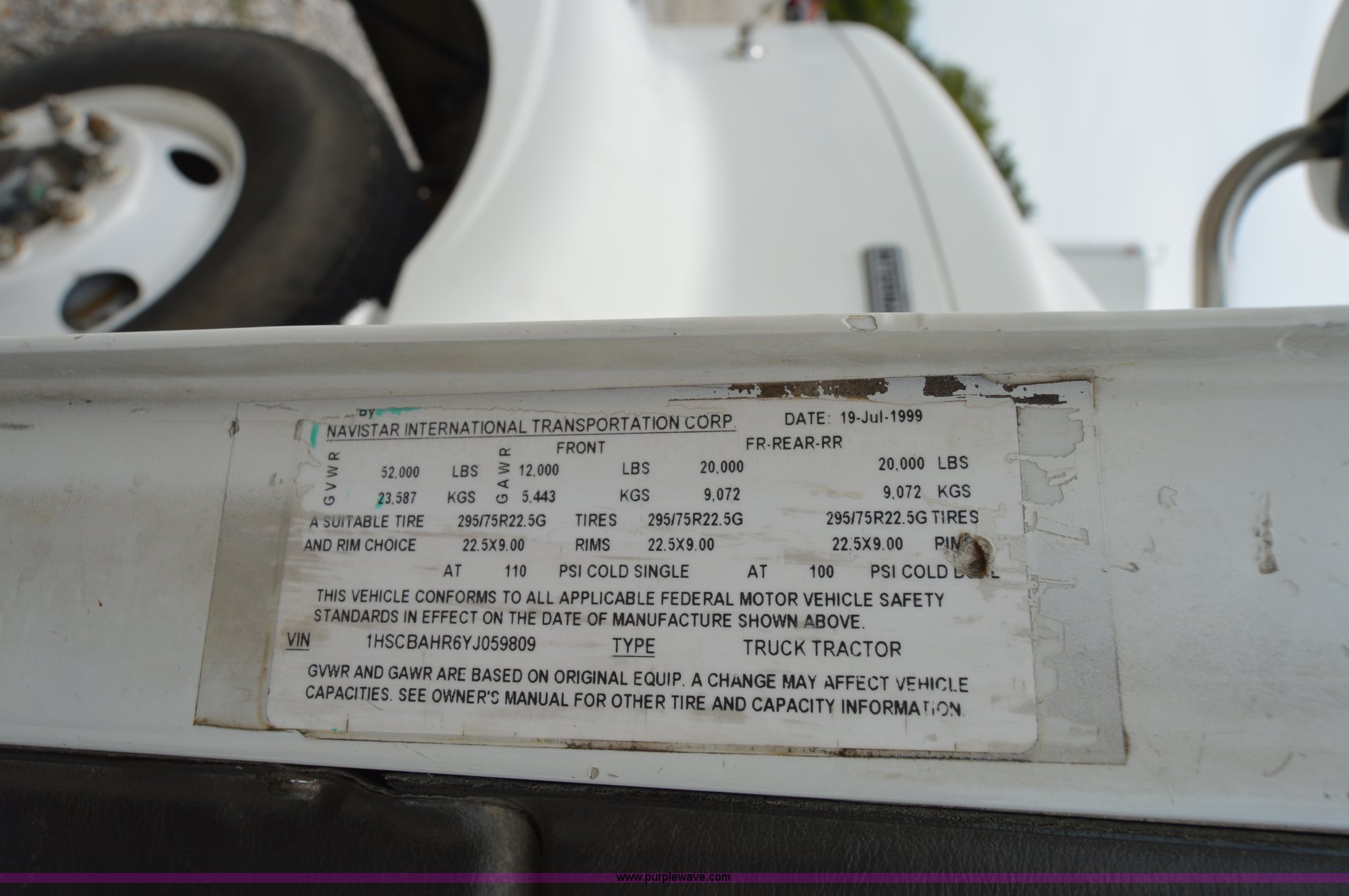 Purple Wave is selling a used Truck Tractor in Kentucky. This item is a 2000 International 9100i semi truck with the following: 472,309 miles on odometer, Cummins 10.8L L6 diesel engine, Eaton Fuller manual transmission, AC and heat, Cruise, AM/FM/cassette, Passenger daylight door, Air suspension seat, Power mirrors, Dual 80 gallon fuel tanks, Single rear exhaust stack, Aluminum deck plate, Quarter fenders, PTO, Air suspension, Air brakes, 169" wheelbase, 295/75R22.5 tires, GVWR 52,000 lbs, FAWR 12,000 lbs, IAWR 20,000 lbs, RAWR 20,000 lbs, Interior/exterior cosmetic damage