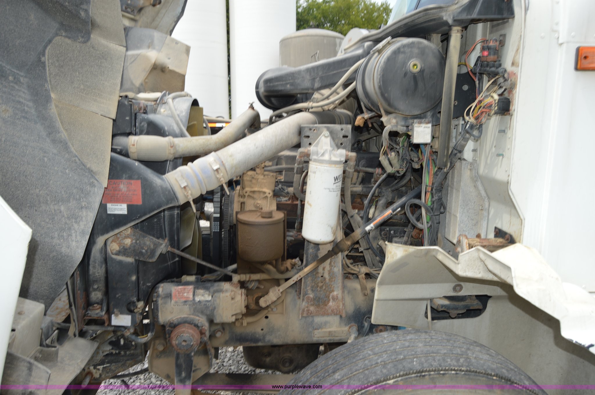 2000 International 9100i semi truck. 472,309 miles on odometer, Cummins 10.8L L6 diesel engine, Eaton Fuller manual transmission, AC and heat, Cruise, AM/FM/cassette, Passenger daylight door, Air suspension seat, Power mirrors, Dual 80 gallon fuel tanks, Single rear exhaust stack, Aluminum deck plate, Quarter fenders, PTO, Air suspension, Air brakes, 169" wheelbase, 295/75R22.5 tires, GVWR 52,000 lbs, FAWR 12,000 lbs, IAWR 20,000 lbs, RAWR 20,000 lbs, Interior/exterior cosmetic damage. Title distribution may be delayed up to 30 days from verification of funds. 1HSCBAHR6YJ059809. Crop Production Services - Russellville. 5240 Halls Store Rd. Russellville, KY 42276