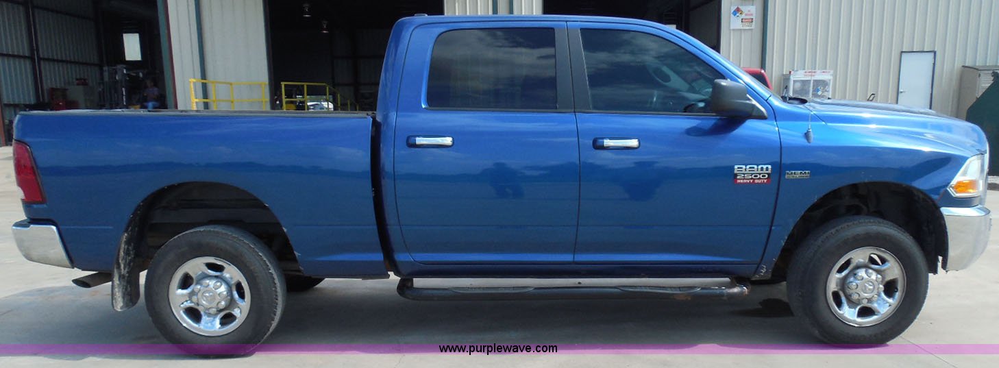 Purple Wave is selling a used 3/4 or 1 Ton Pickup or Van in Louisiana. This item is a 2010 Dodge Ram 2500 HD SLT Crew Cab pickup truck with the following: 147,452 miles on odometer, 5.7L V8 OHV 16V gas engine, Automatic transmission, Four wheel drive, AC and heat, Tilt, Cruise, AM/FM/CD, Bluetooth ready, Power windows, locks, and mirrors, Cloth interior, Running boards, Chrome bumpers, Rubber bed mat, 245/75R17 tires, Driver's seat worn and torn, Tailgate damage, Scratches, Chipped windshield, Grill damage, Left fender damage, Right side bed damage, Hole in bottom of bed, Unit# 16694