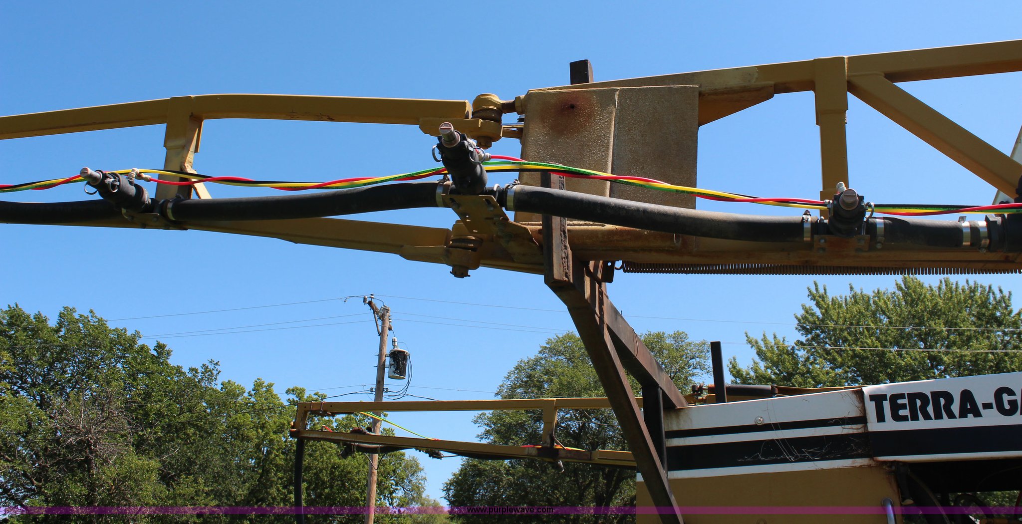 Purple Wave is selling a used Applicator Self Propelled in Kansas. This item is a 1994 Ag-Chem TerraGator 1854 self-propelled sprayer with the following: 98,363 miles on odometer, 10,023 hours on meter, Caterpillar 3208 eight cylinder diesel engine, Eaton Fuller 18 speed transmission, 1,500 gallon stainless steel tank, 100 gallon rinse tank, Stainless steel induction tank, Raven SCS 460 spray control system, 70'W boom, (3) boom sections, 30" nozzle spacing, Hydraulic height adjust, Hydraulic boom fold, Foam marker, AC and heat, AM/FM/cassette, Air suspension seat, Trimble light bar, 48x31.00-20 front tires, 66x43.00-25 rear tires, Serial 8T11245