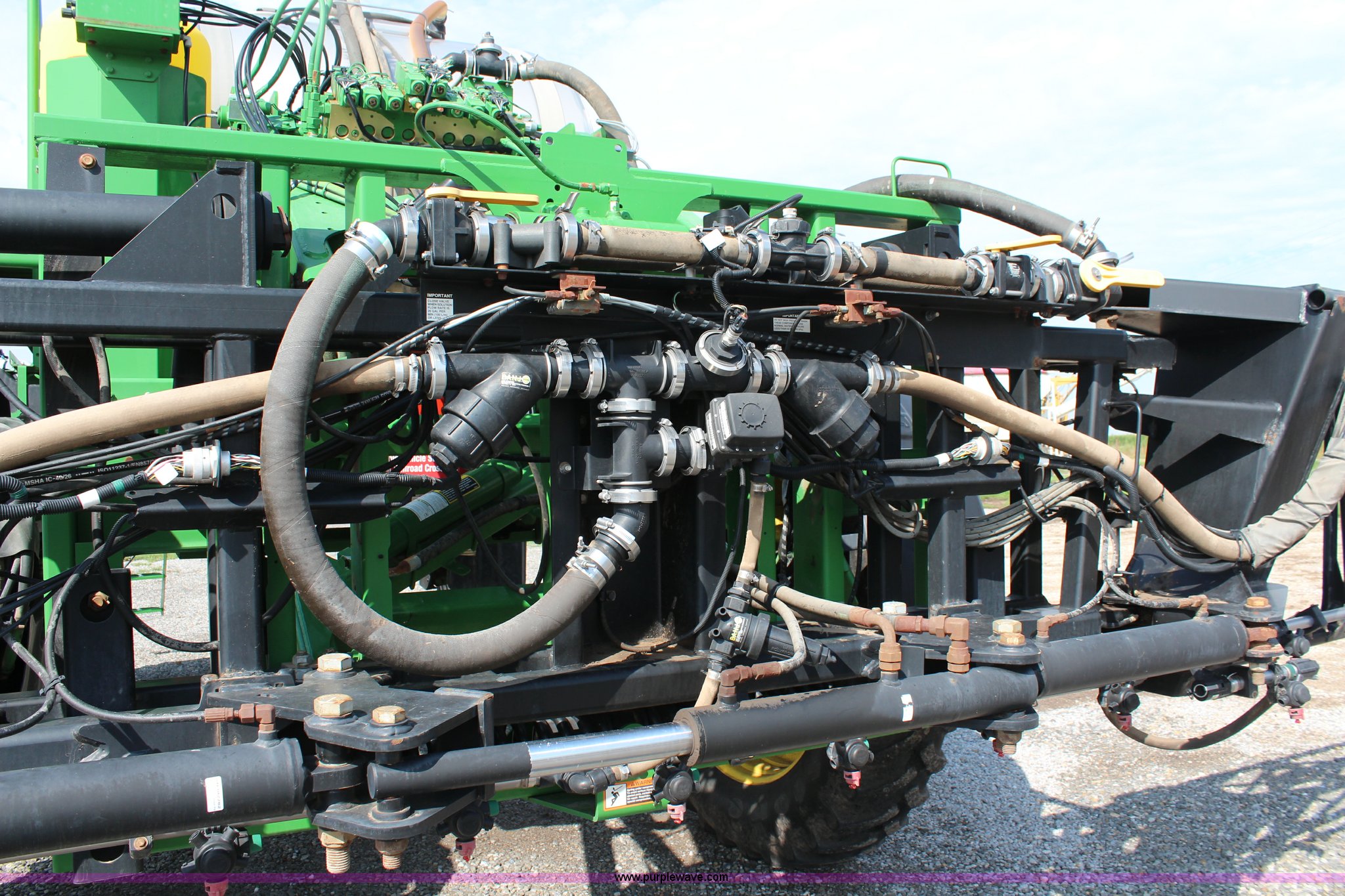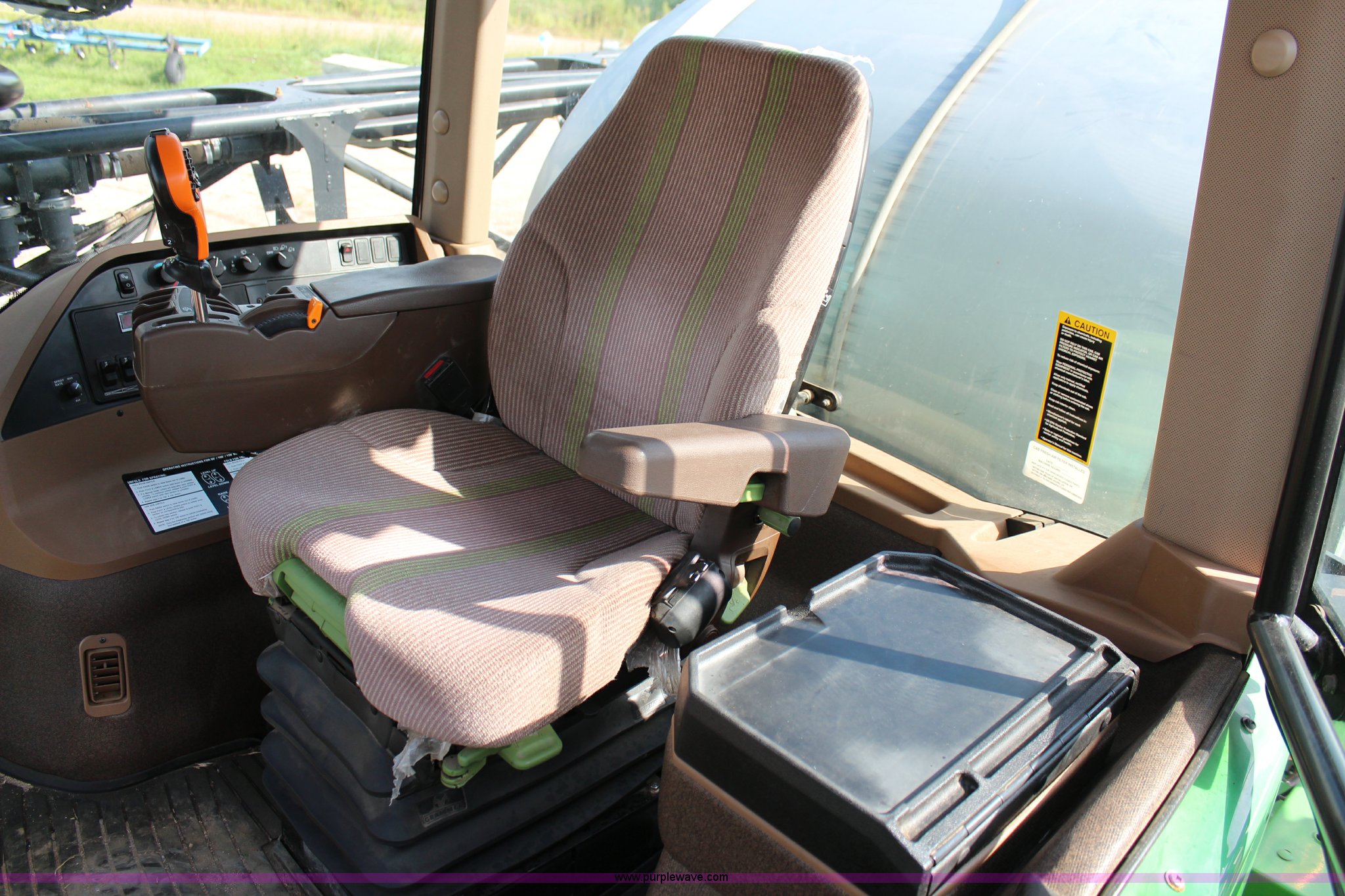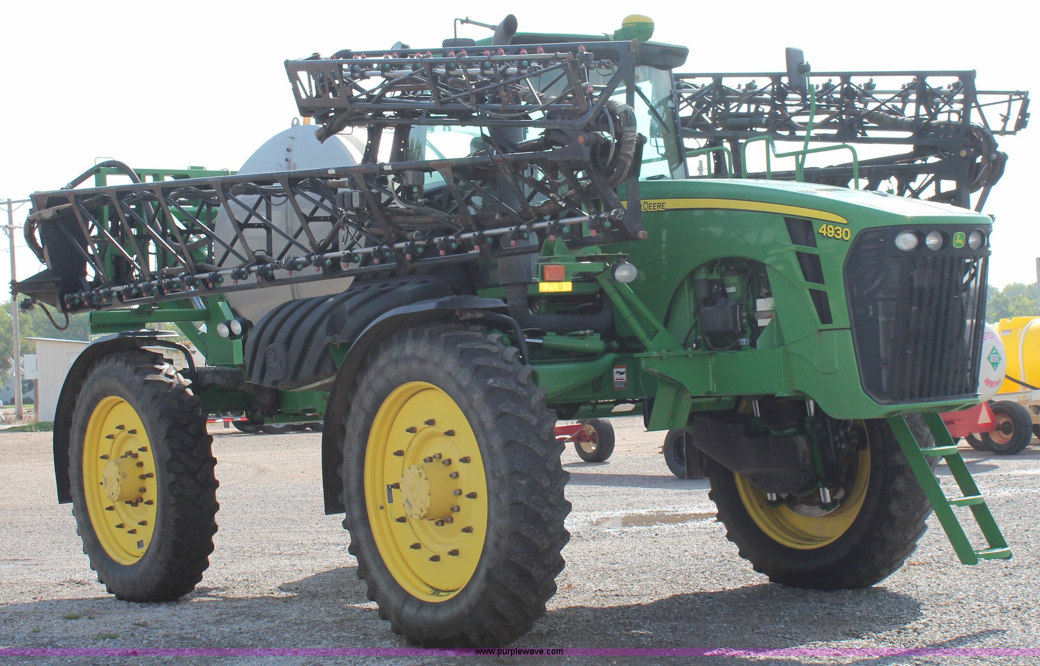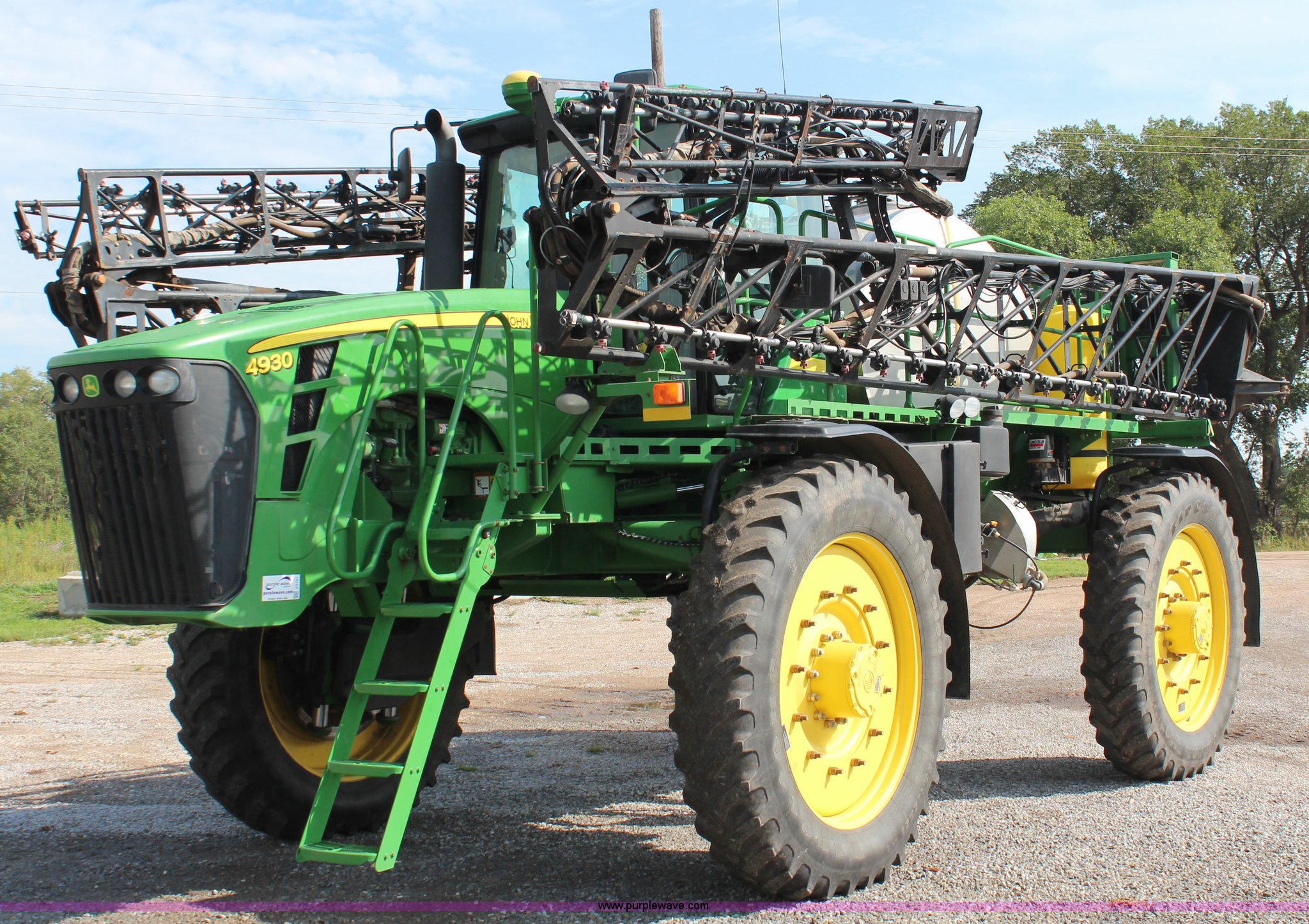 Purple Wave is selling a used Applicator Self Propelled in Kansas. This item is a 2010 John Deere 4930 self-propelled sprayer with the following: 2,436 hours on meter, John Deere 6090HN001 9.0L six cylinder diesel engine, 325 HP, Hydrostatic transmission, 4F gears, Four wheel drive, 1,200 gallon stainless steel tank, Rinse tank, Stainless steel induction tank, John Deere spray control system, 100'W boom, (7) boom sections, 15" nozzle spacing, Five-way nozzle bodies, Hydraulic height adjust, Hydraulic boom fold, Foam marker, Rear camera, Fence row nozzles, AC and heat, Delphi AM/FM/CD, Air suspension seat, John Deere Greenstar GPS, Work lights, Manuals, Fenders, Lincoln autolube system, Air suspension, Hydraulic axle width adjust, 380/405R5 tires, Serial N04930X008582