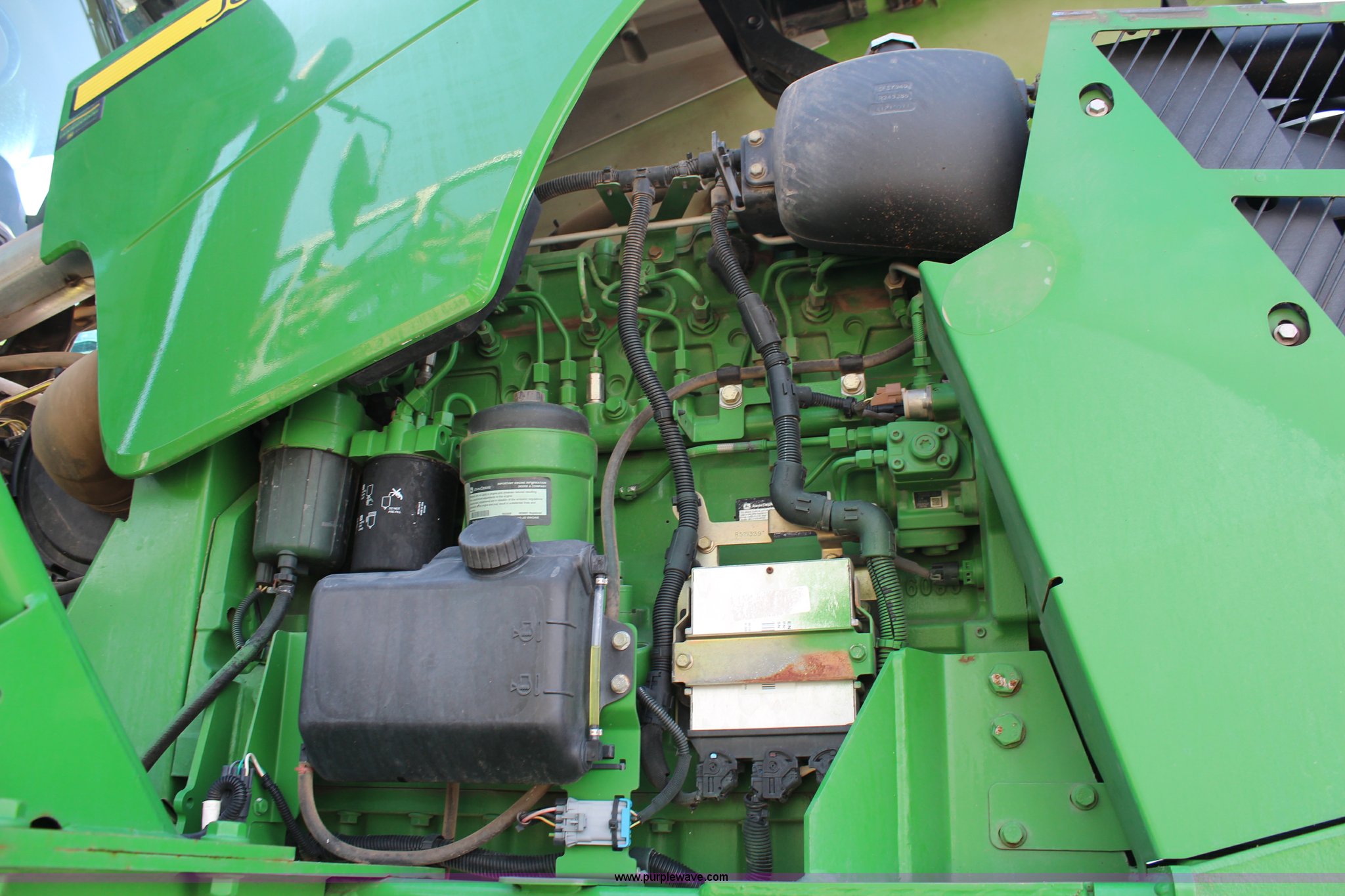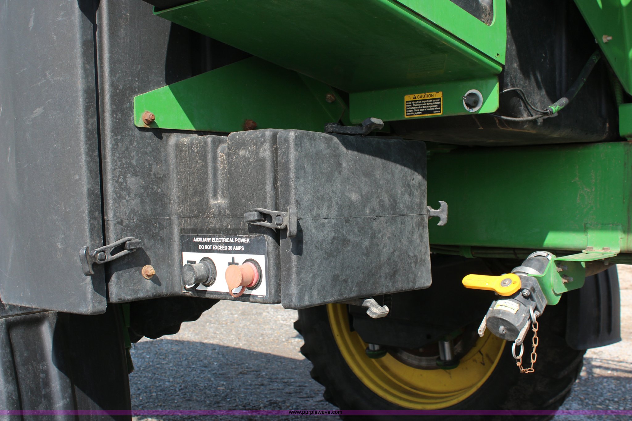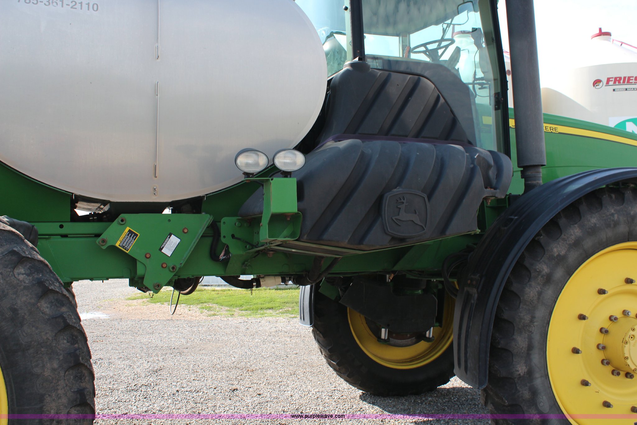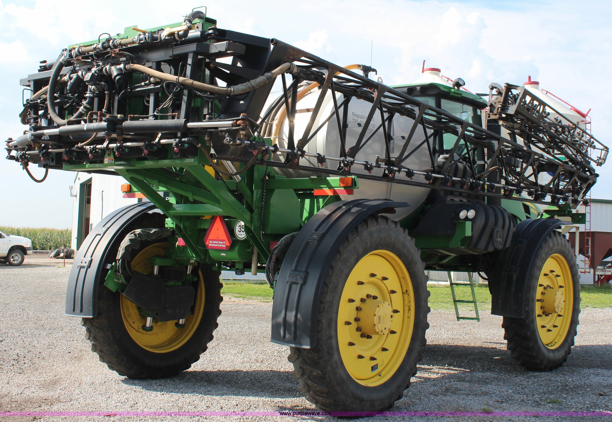 Purple Wave is selling a used Applicator Self Propelled in Kansas. This item is a 2010 John Deere 4930 self-propelled sprayer with the following: 2,436 hours on meter, John Deere 6090HN001 9.0L six cylinder diesel engine, 325 HP, Hydrostatic transmission, 4F gears, Four wheel drive, 1,200 gallon stainless steel tank, Rinse tank, Stainless steel induction tank, John Deere spray control system, 100'W boom, (7) boom sections, 15" nozzle spacing, Five-way nozzle bodies, Hydraulic height adjust, Hydraulic boom fold, Foam marker, Rear camera, Fence row nozzles, AC and heat, Delphi AM/FM/CD, Air suspension seat, John Deere Greenstar GPS, Work lights, Manuals, Fenders, Lincoln autolube system, Air suspension, Hydraulic axle width adjust, 380/405R5 tires, Serial N04930X008582