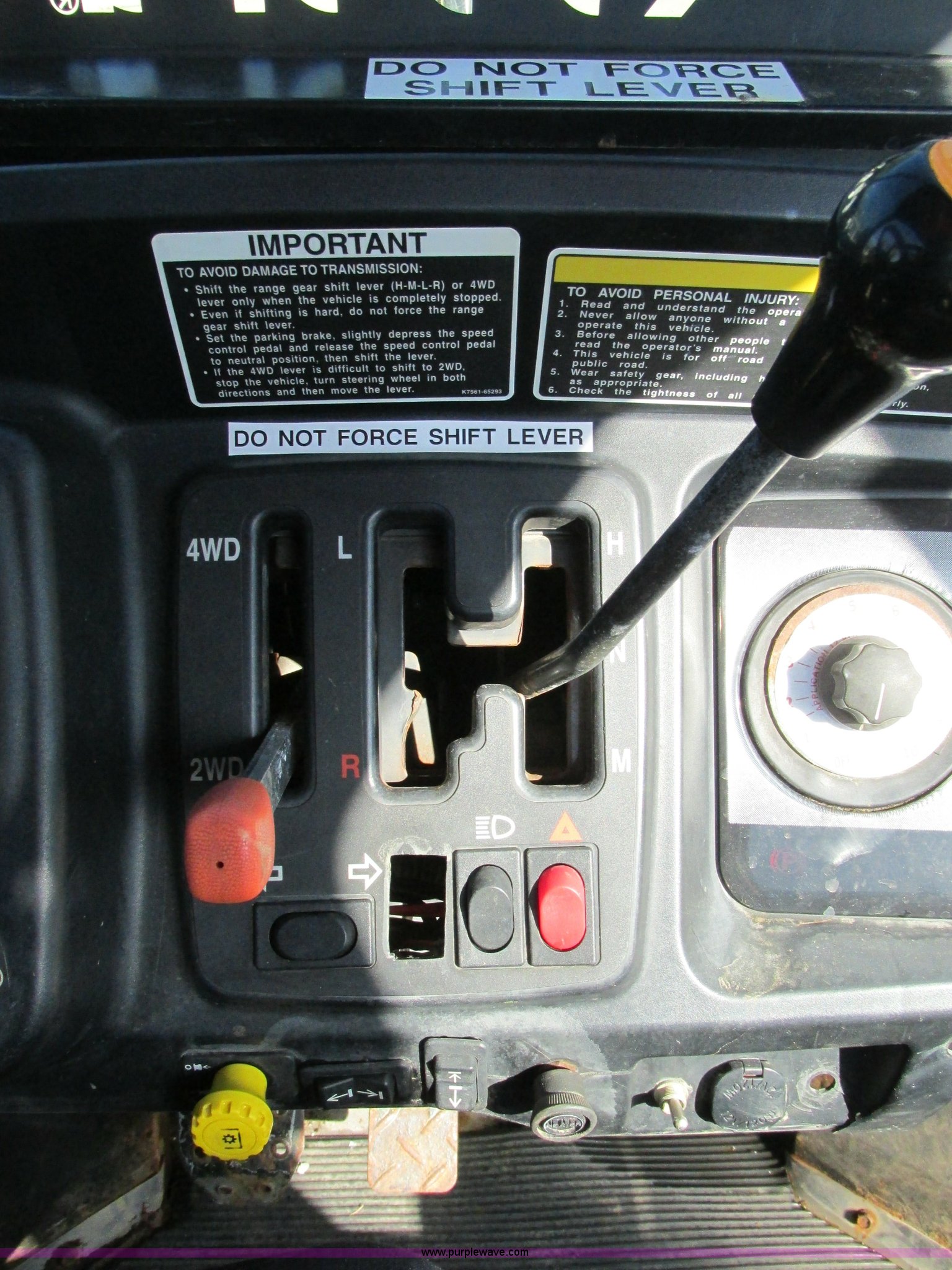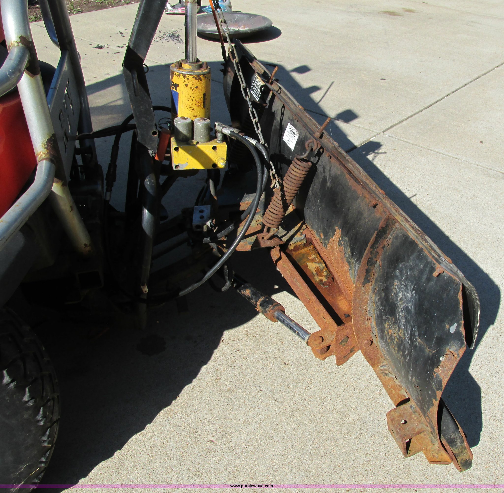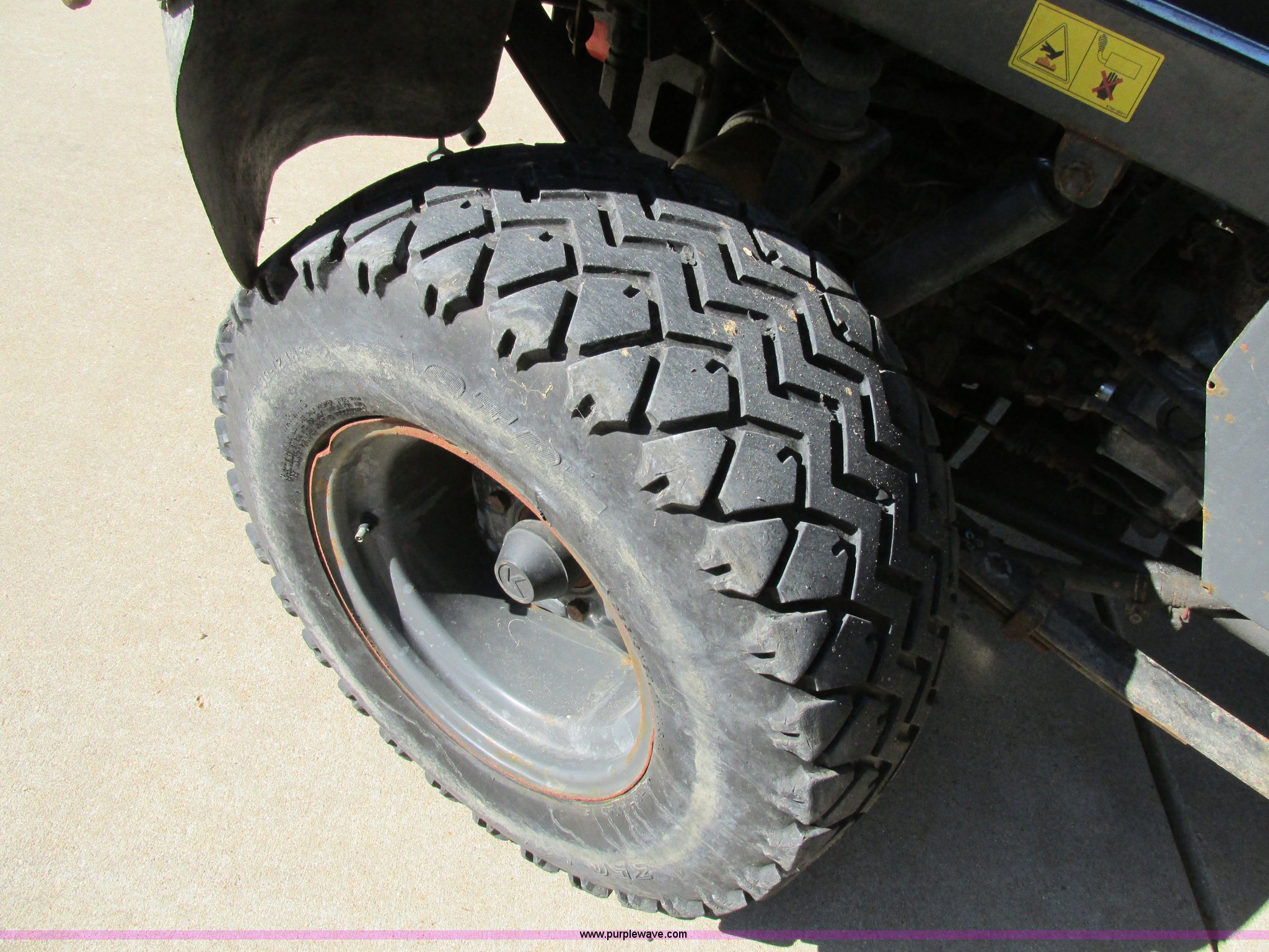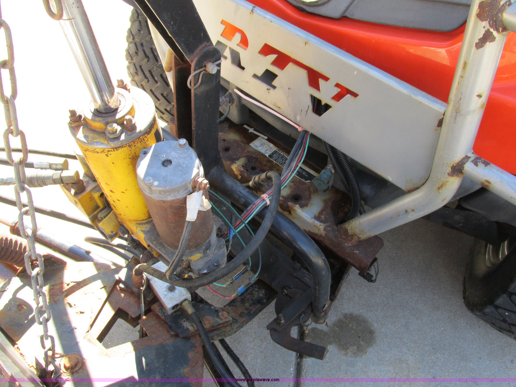 Purple Wave is selling a used Utility Vehicle in Missouri. This item is a 2004 Kubota RTU900 UTV with the following: 1,971 hours on meter, Kubota D982 three cylinder diesel engine, Serial RRTV900A41026695, Hi-Lo transmission, Four wheel drive, Enclosed cab, Heat, AM/FM/CD, Front work lights, Yellow strobe light, 47" x 52" hydraulic dump bed, Spray-in bed liner, 6'W snow plow, Hydraulic raise and lower, Hydraulic angle adjustment, In-cab plow controls, Spreader controls, Rear hydraulic remotes plumbed for spreader, 12V auxiliary outlet, Hazard lights, 1.5" x 1.5" hitch, Spring suspension, 350 Mag tires, Serial 26695