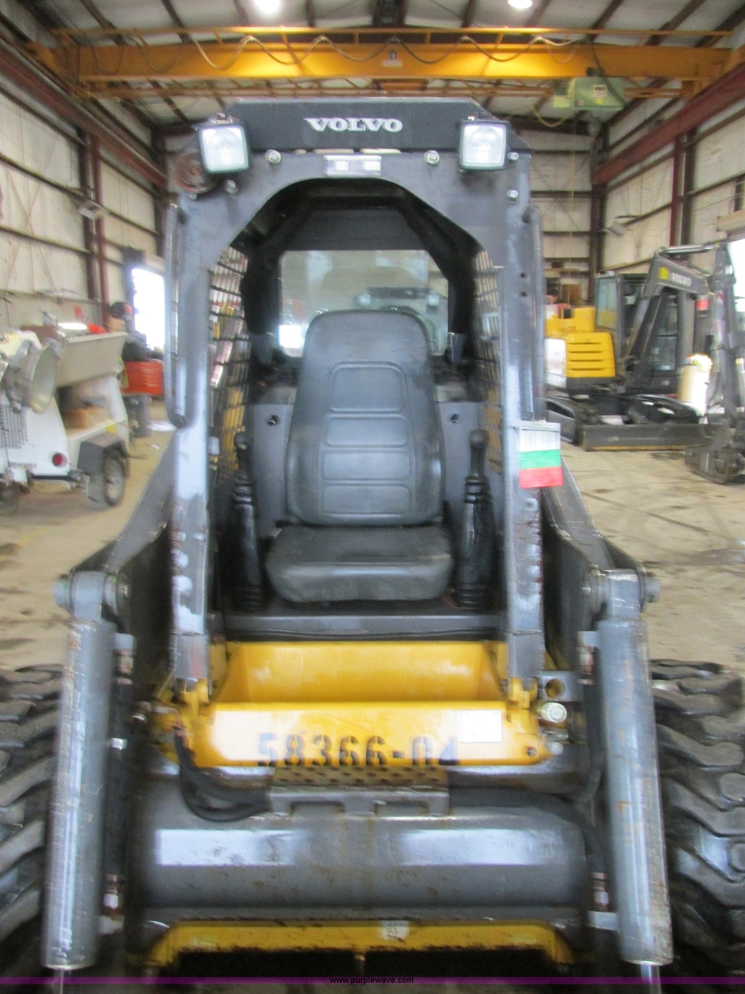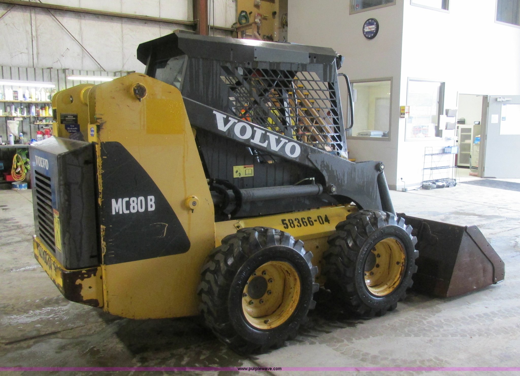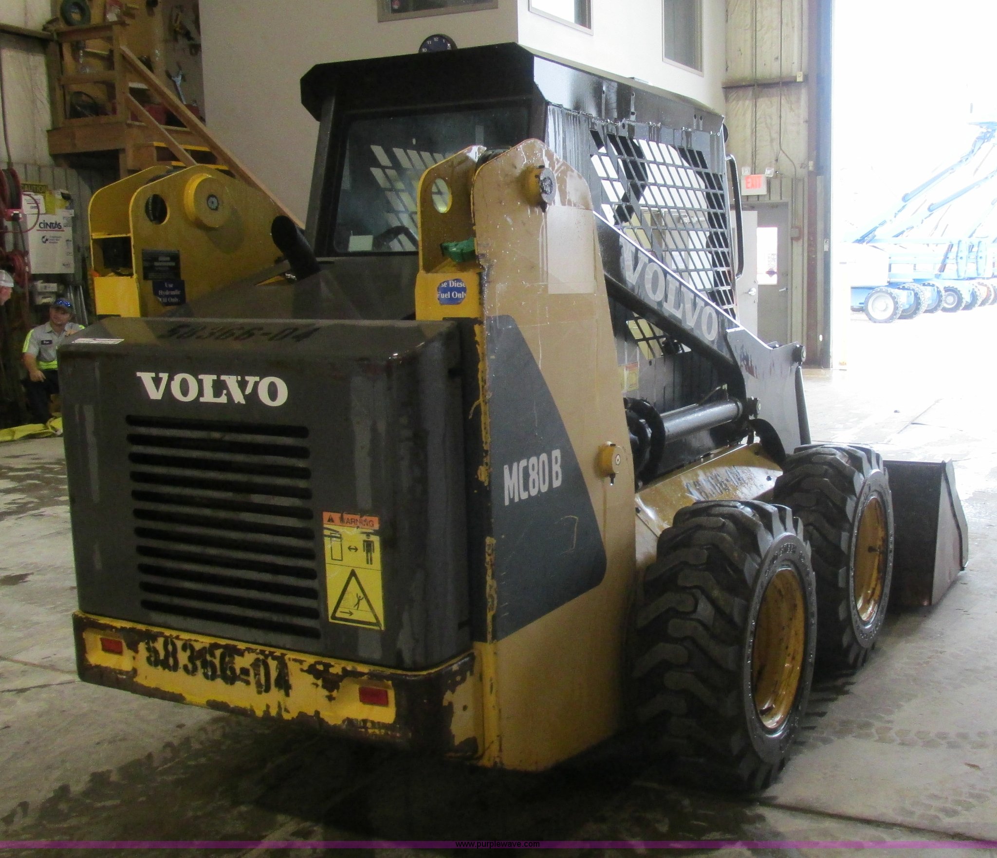 Purple Wave is selling a used Skid Steer Loader in Missouri. This item is a 2006 Volvo MC80B skid steer with the following: 748 hours on meter, Volvo 3.319L four cylinder 16V diesel engine, Serial 5YDXL32K4N, Hydrostatic transmission, Rear glass, Hand and foot controls, Spring suspension seat, Auxiliary hydraulics, Manual quick coupler, Front and rear work lights, 79"W bucket, Weld-on cutting edge, Bolt-on teeth, 12-16.5 NHS tires, Cutting edge piece missing, Serial VCEMC80B806111700