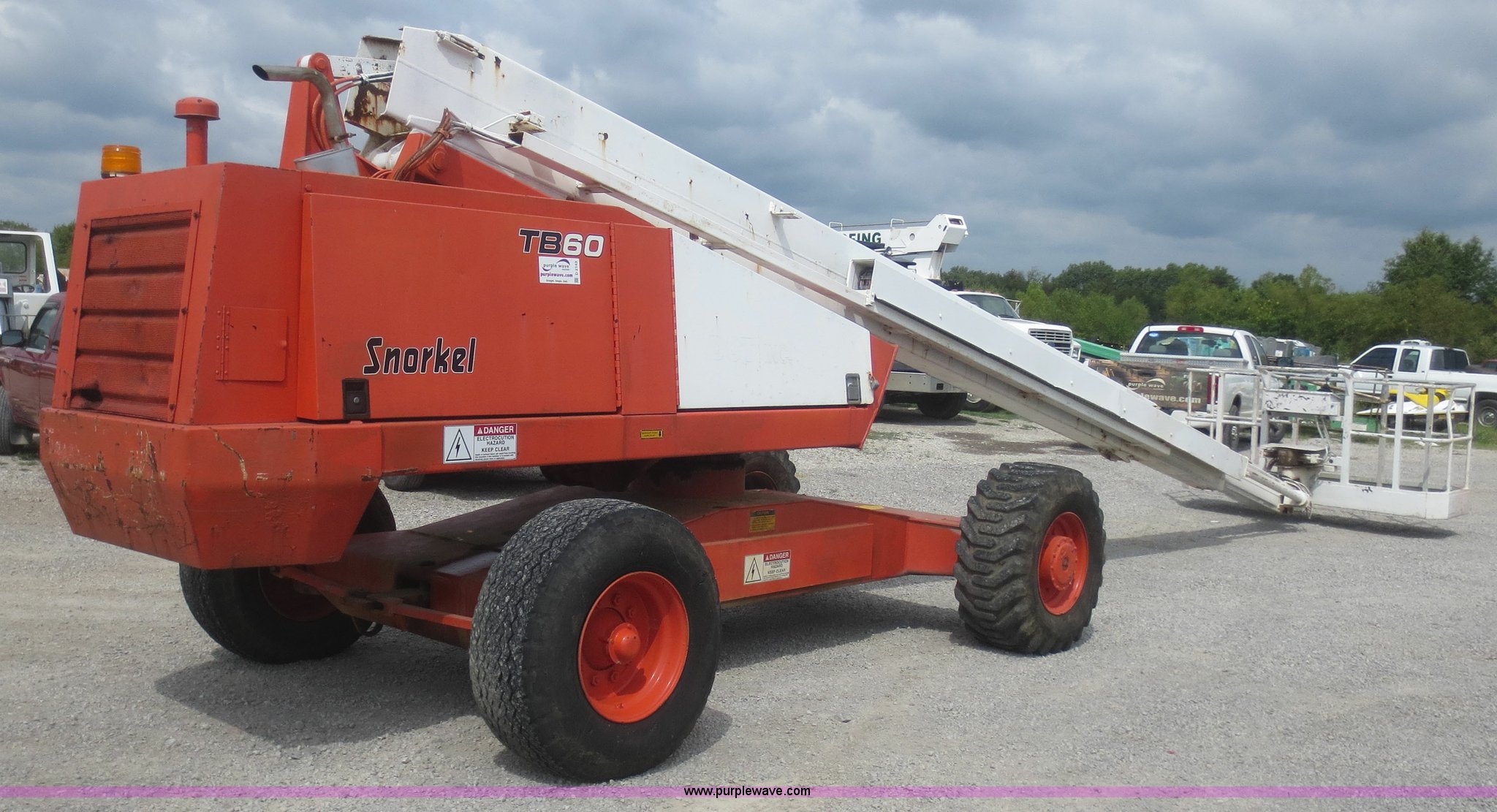 Snorkel TB60 boom lift has sold in Frontenac, Kansas for $3850. Item D2143 sold on September 25th, 2014.