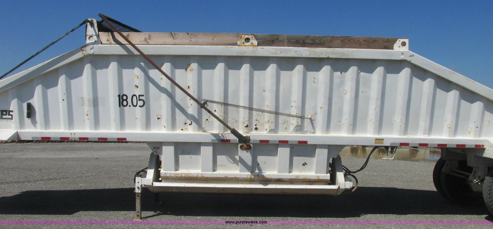 Purple Wave is selling a used Bottom Dump Trailer in Oklahoma. This item is a 2007 CPS SBD-240 bottom dump trailer with the following: Approximately 40'L x 8'W, Air dump cylinders, Electric over air dump valve, Tip-top boards, Manual rollover tarp, Oil bath hubs, Spring suspension, Air brakes, 11R24.5 tires, GVWR 68,000 lbs, GAWR 22,500 lbs, FMCSA annual inspection February 2014, Some hopper damage, Patched, Unit# 18.05