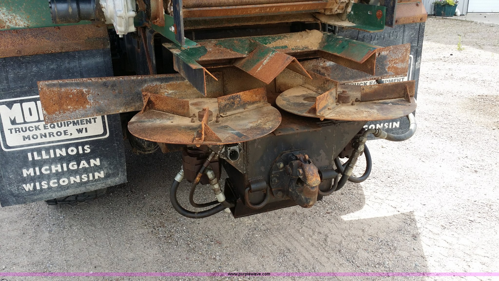 Purple Wave is selling a used Applicator Truck in Wisconsin. This item is a 1996 Peterbilt 357 spreader truck with the following: 266,408 miles on odometer, Caterpillar 3306 10.5L L6 diesel engine, Eaton Fuller 8LL speed manual transmission, Twin screw, Six wheel drive, Heat, Passenger daylight door, Air suspension seat, Wet kit, Metaris PTO, Monroe 16'L spreader box, 32"W walking floor, Manual end gate, Dual spreaders, Rear electrical connector, Pintle hitch, 445/65R22.5 tires, GVWR 68,000 lbs, FAWR 20,000 lbs, IAWR 23,000 lbs, RAWR 23,000 lbs